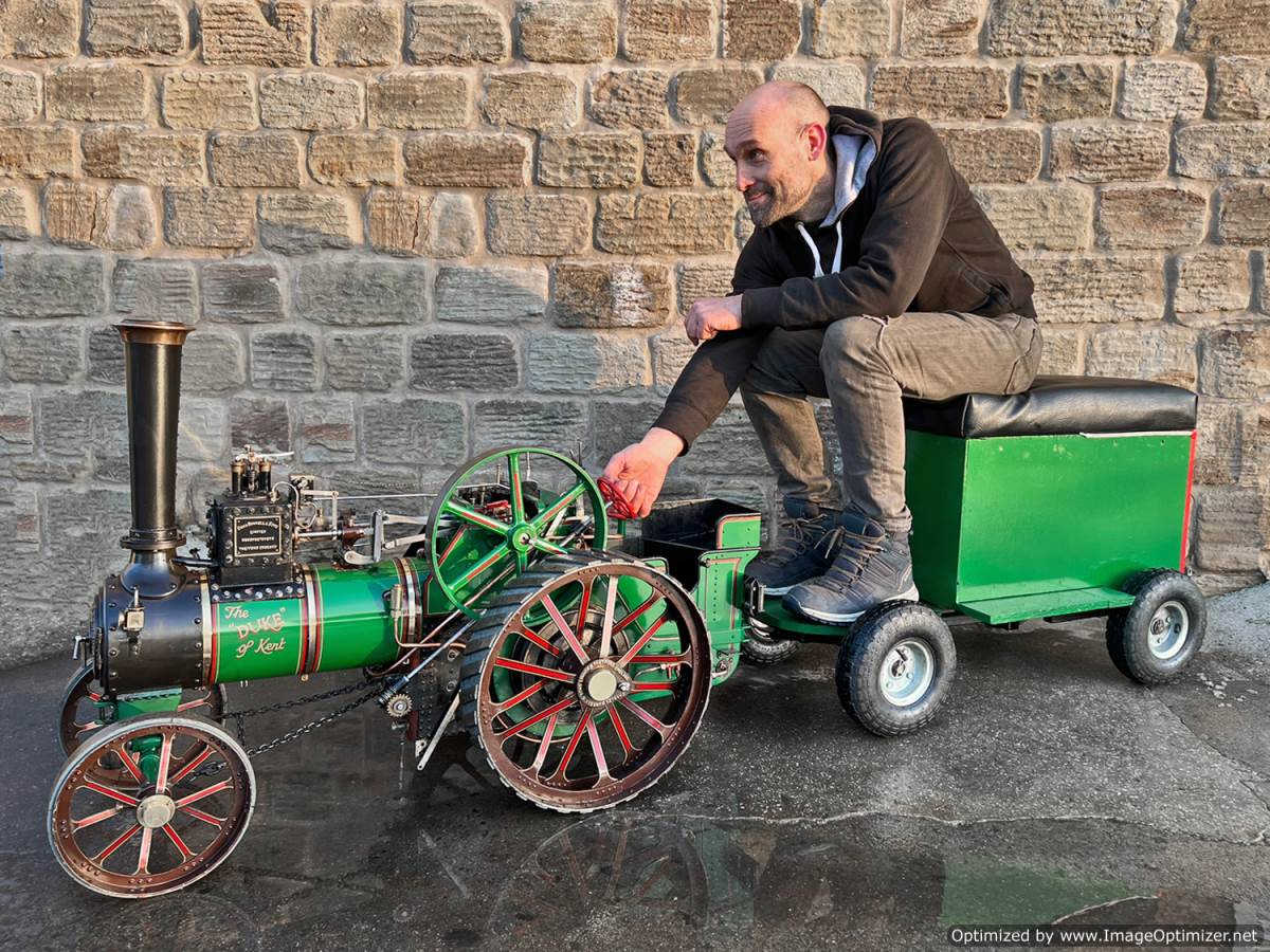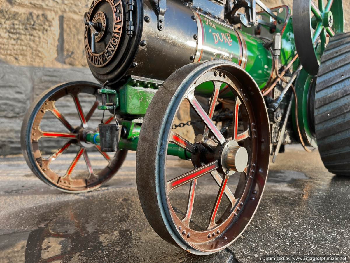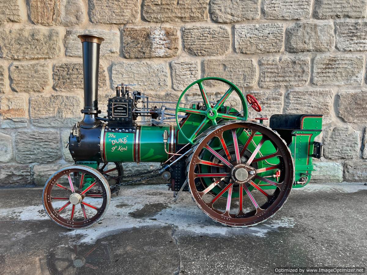 Here we have a returning old friend. This 3" scale Plastow Burrell was in fact Steam Workshop's very first traction engine full rebuild, and only the second steam engine we ever restored! It even has it's own page in our projects galleries. SW Rebuild Number 2. We finished it to the customer's specification, hand lining everything even signwriting of the chosen name 'Duke of Kent' in paint on the barrel as the customer requested.