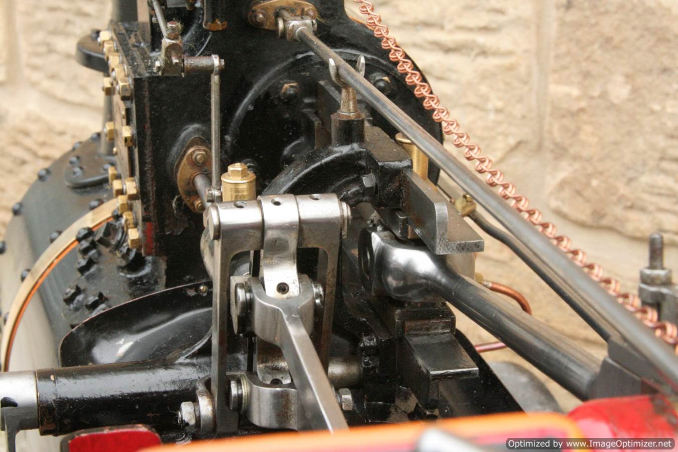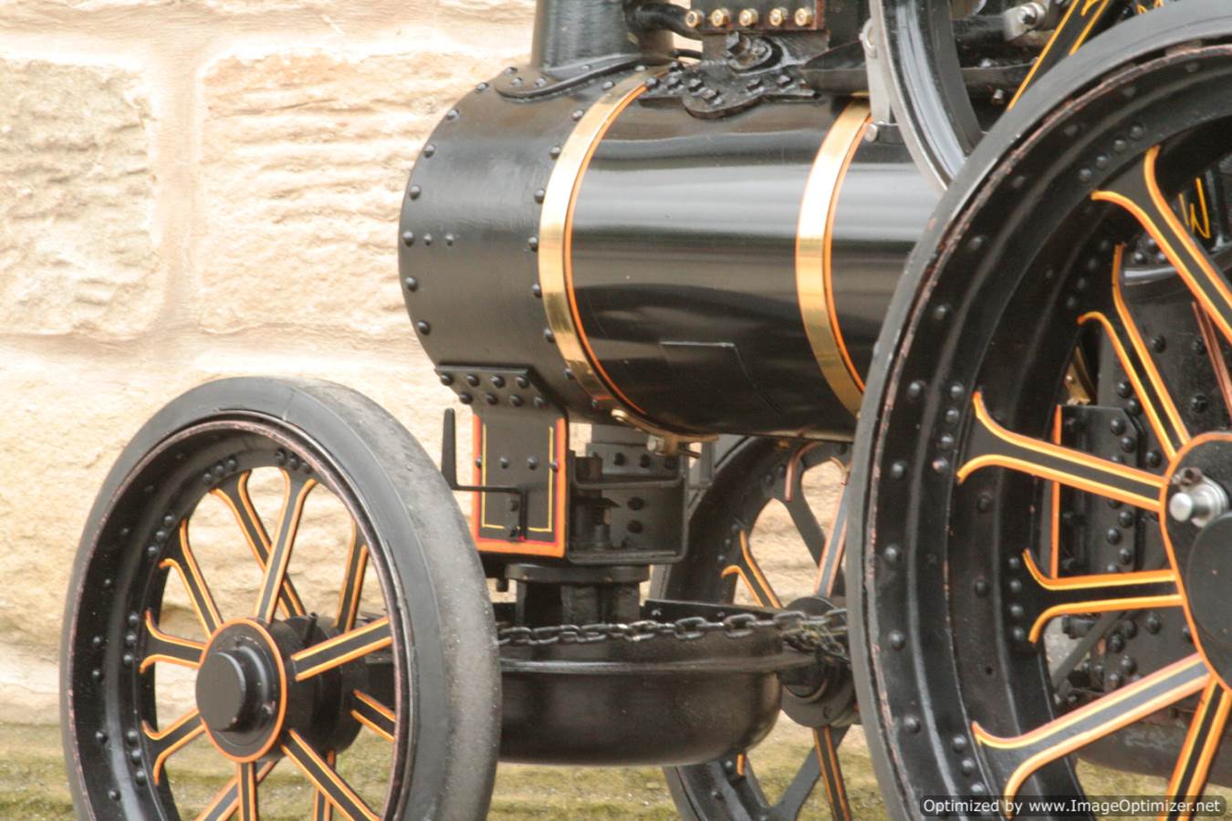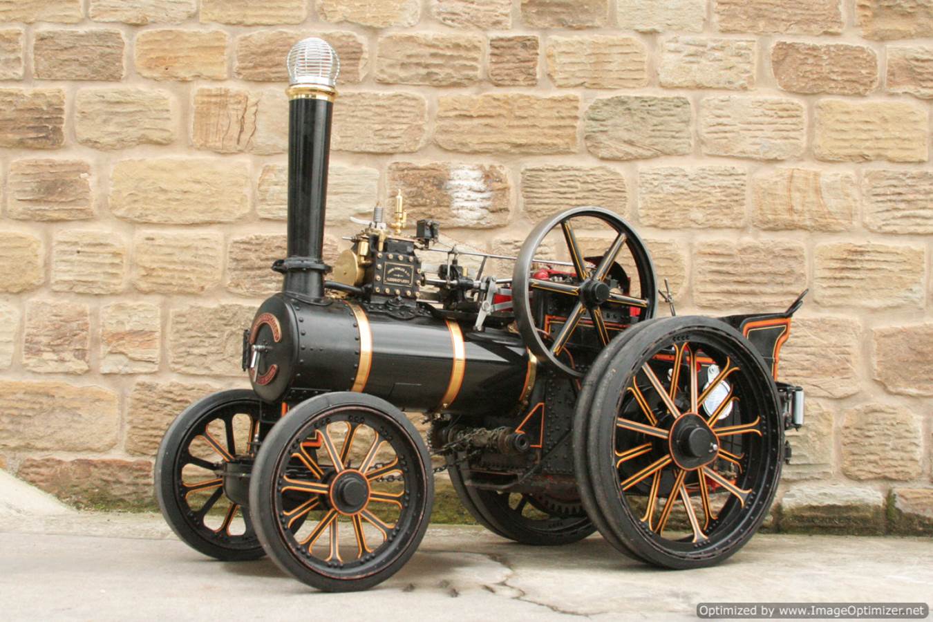 Here we have a particularly nicely made 3" scale Fowler A7 traction engine. Made to the MJ Engineering drawings, this is the rarer 'large' version of the model, most being build in 2" scale. Everything is there on this one, it's a lovely and well detailed design, and the model has been built faithfully to the plan. The paintwork is also very neatly done, and the hand painted lining is finished with considerable skill. The boiler is silver soldered copper, and she is fitted with all the usual bits. An injector and a crank shaft driven water pump. The water lifter works well too. Lubrication is mechanical as always and fitted above the cylinder block.