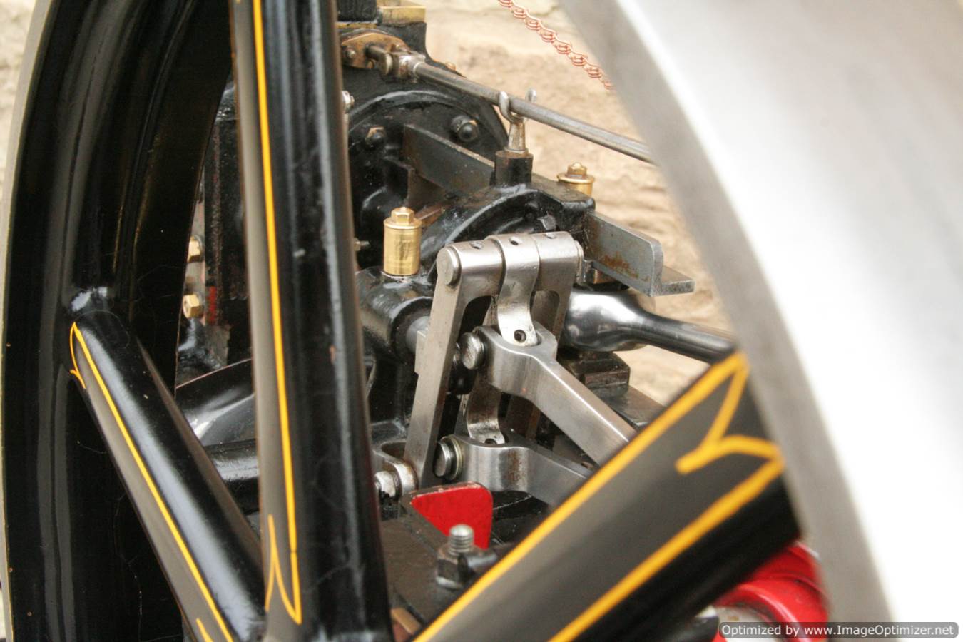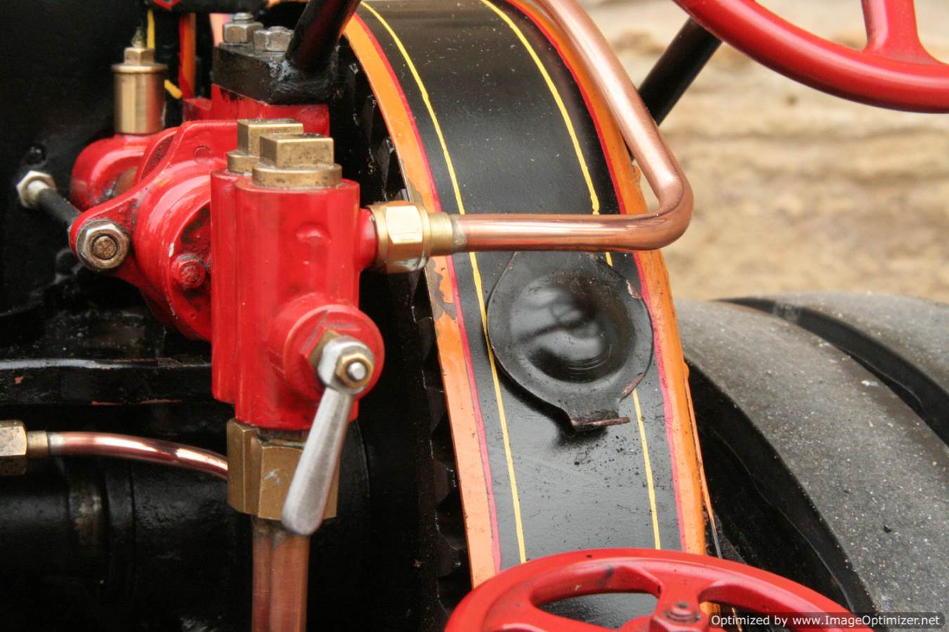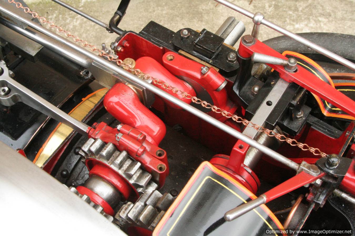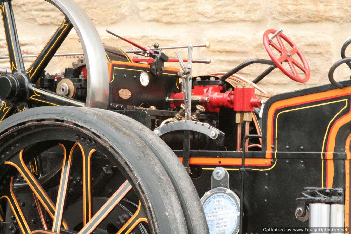 Here we have a particularly nicely made 3" scale Fowler A7 traction engine. Made to the MJ Engineering drawings, this is the rarer 'large' version of the model, most being build in 2" scale. Everything is there on this one, it's a lovely and well detailed design, and the model has been built faithfully to the plan. The paintwork is also very neatly done, and the hand painted lining is finished with considerable skill. The boiler is silver soldered copper, and she is fitted with all the usual bits. An injector and a crank shaft driven water pump. The water lifter works well too. Lubrication is mechanical as always and fitted above the cylinder block.