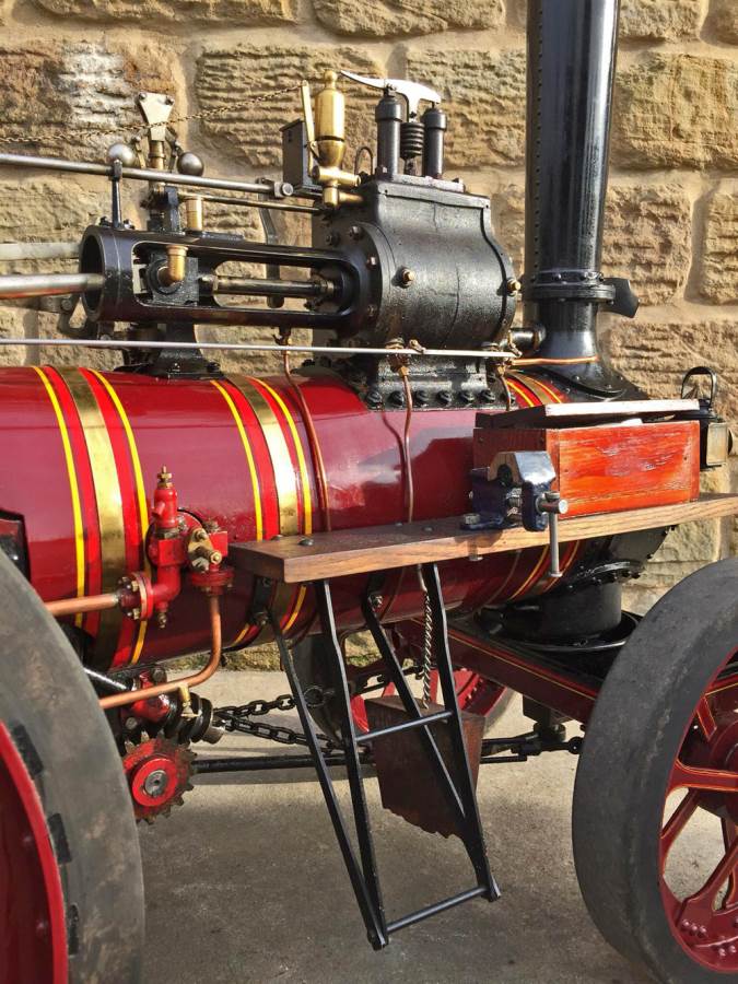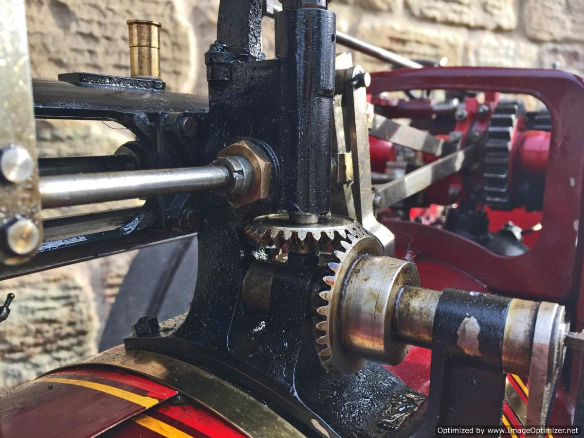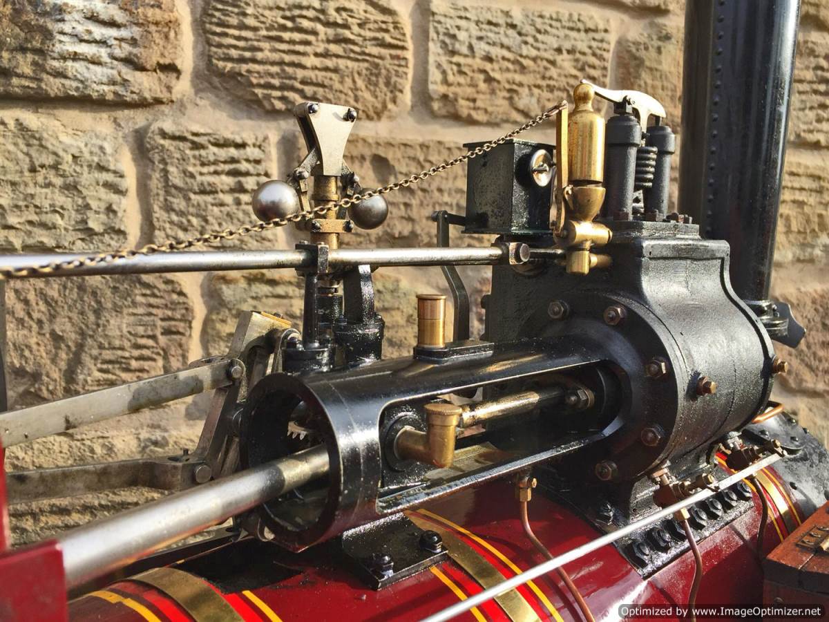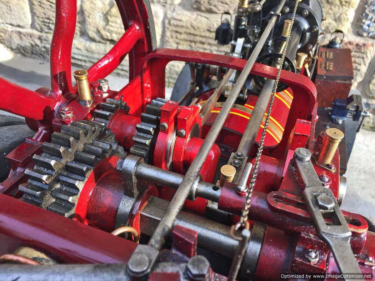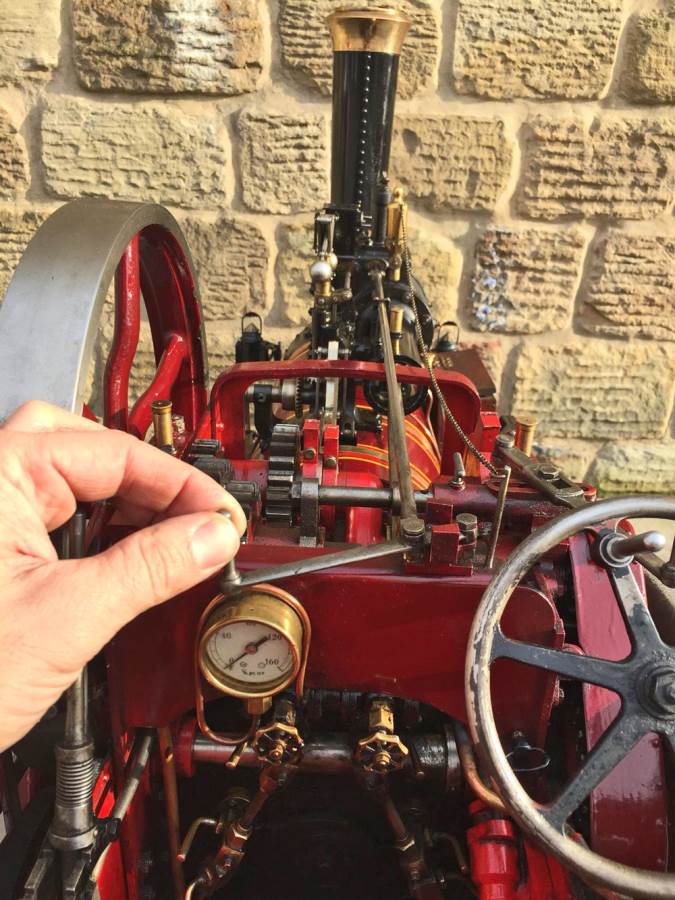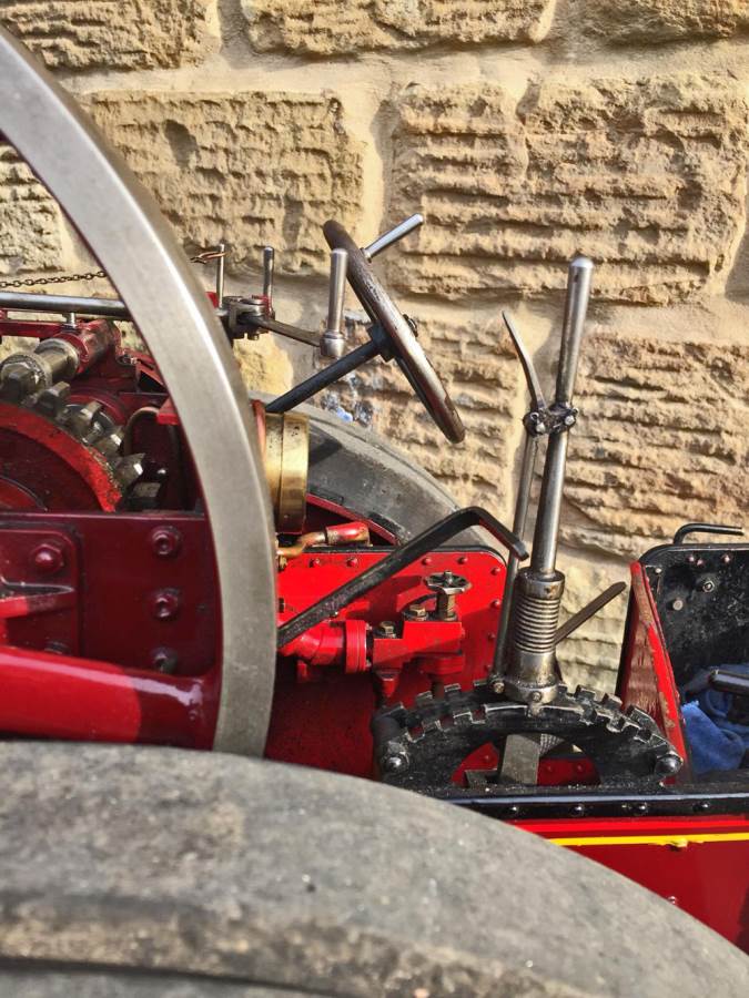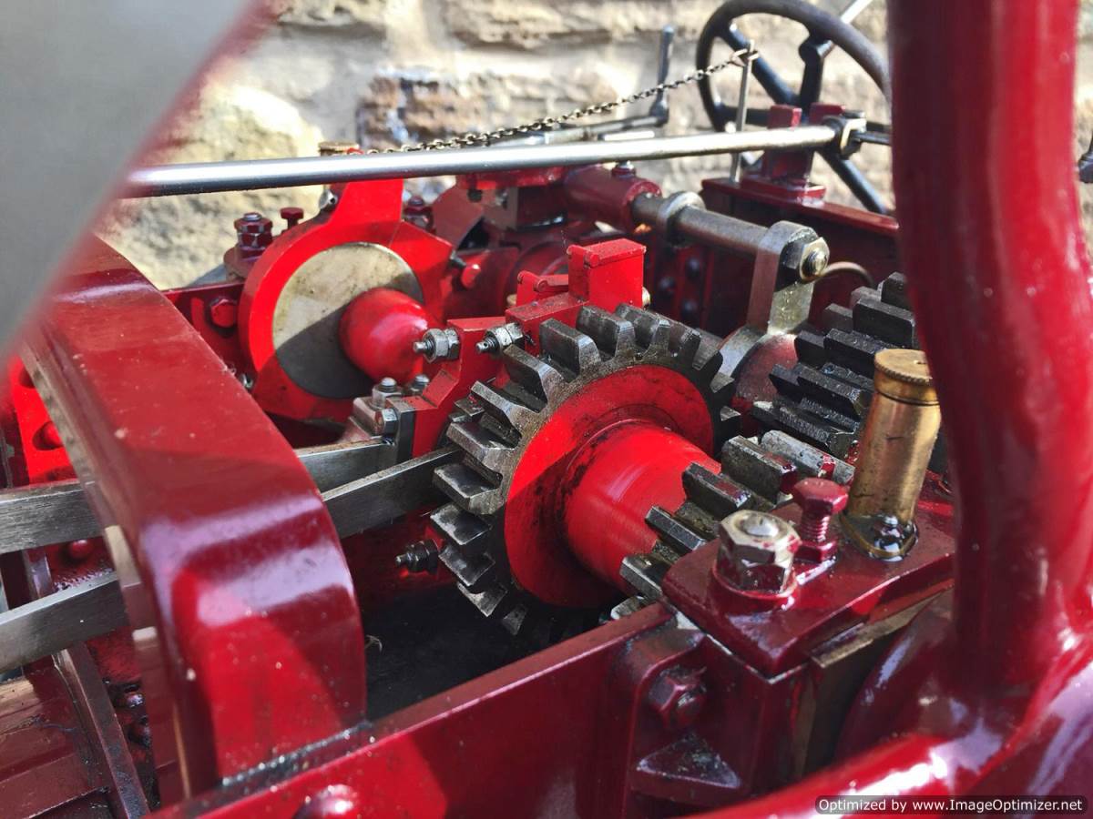 It is a Four Shaft Tractor with the usual agricultural two speeds and stephenson's link motion. She is fitted with a working water lifter, eccentric water pump, injector and the cylinders are oiled from the usual cylinder top mounted mechanical lubricator. The governor isn’t plumbed in at the moment, the port for the valve is there, and the governor it’s self is made to work, so it wouldn’t take much of a fiddle to extend the drive to actually work as it should.
