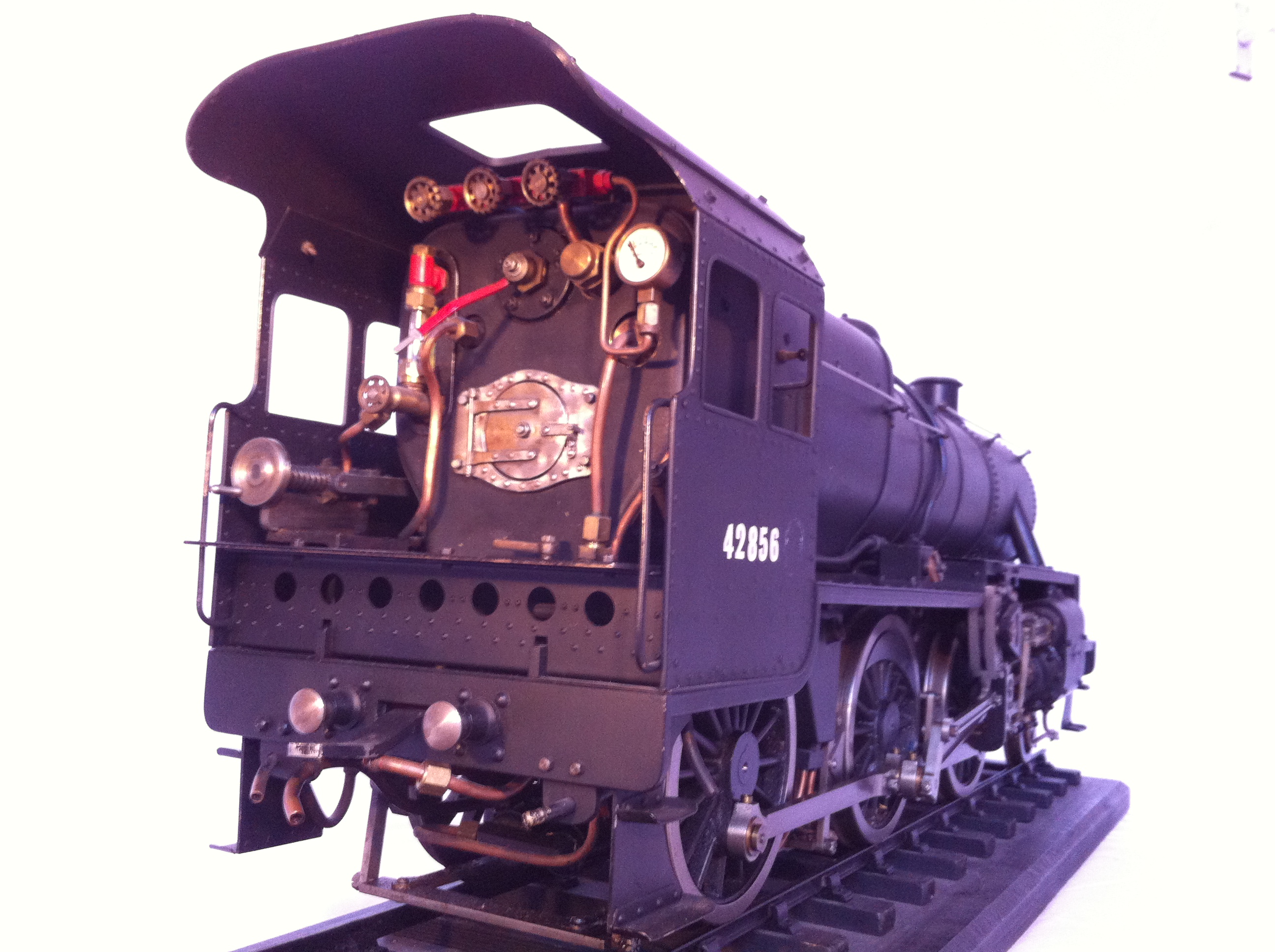 However,..... along with the 5 Crabs fitted with experimental Lentz rotary-poppet valvegear, number 2856, nearing the end of it's original boiler life, and having been involved in a hydraulic lock wheel spin that resulted in a cracked cylinder returned to Crewe works for rebuild and the decision was taken to trial and develope the new boiler and cylinder combination in the original Crab chassis. Sadly, no such thing actually happened in the real world,.... Stanier just went for it with the first 'new' Mogul 13245 emerging in 1933, controversial GWR top feed cover n all,..... but if he had indeed decided to rebuild an original crab as a test bed for his new boiler and cylinders, this model is a pretty good representation of that Hughes/Stanier love-child!