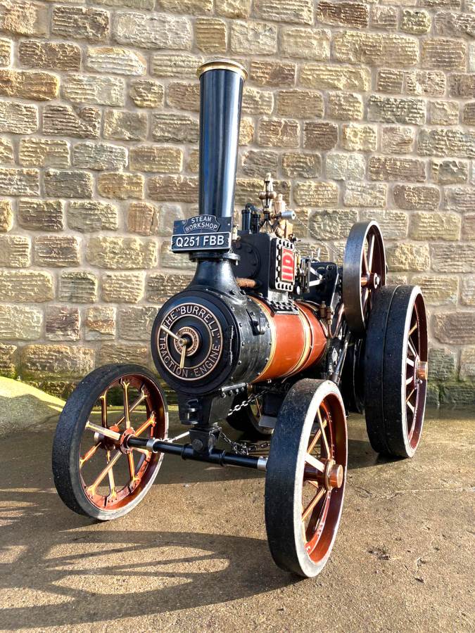 Here we have a nicely done 4 1/2" Burrell Agricultural Traction Engine. Made to the Plastow design, she is fully tested, sorted, certificated and ready to rally. The boiler is both interesting and rare in this scale being a professionally made silver soldered copper one! Originally manufactured in Germany the boiler comes with it's original plate stamps and paperwork and is still as you would expect in great condition.