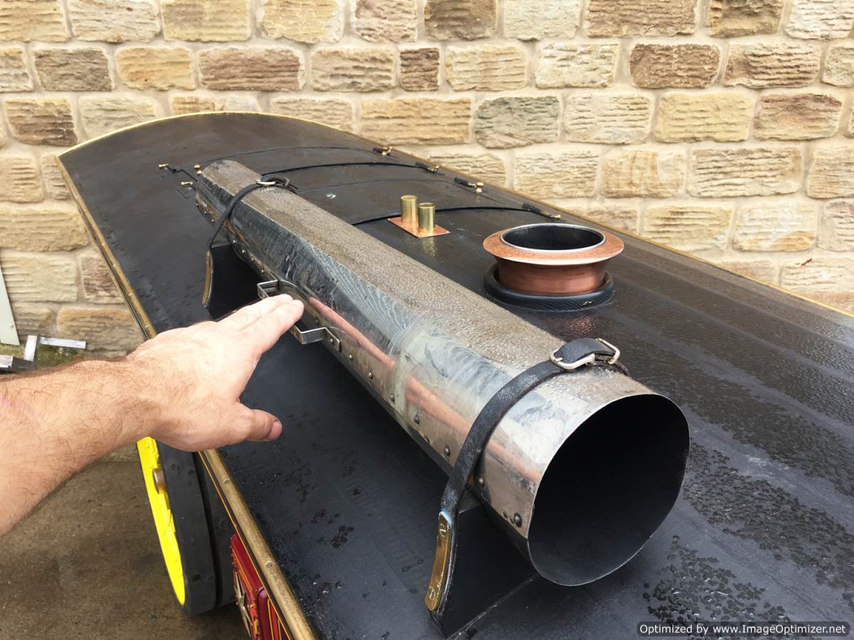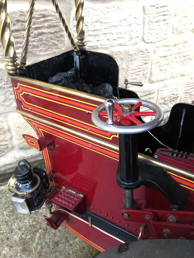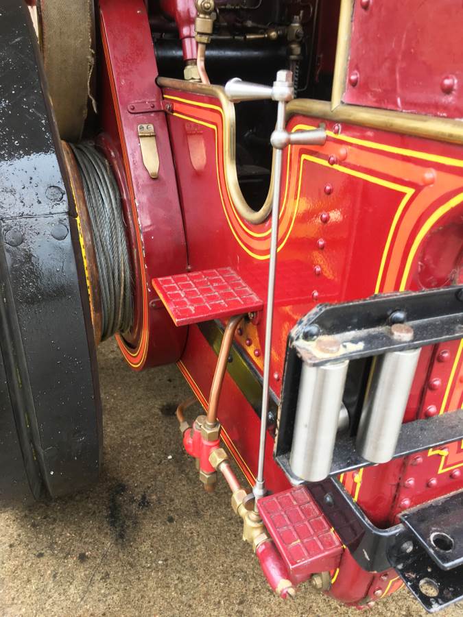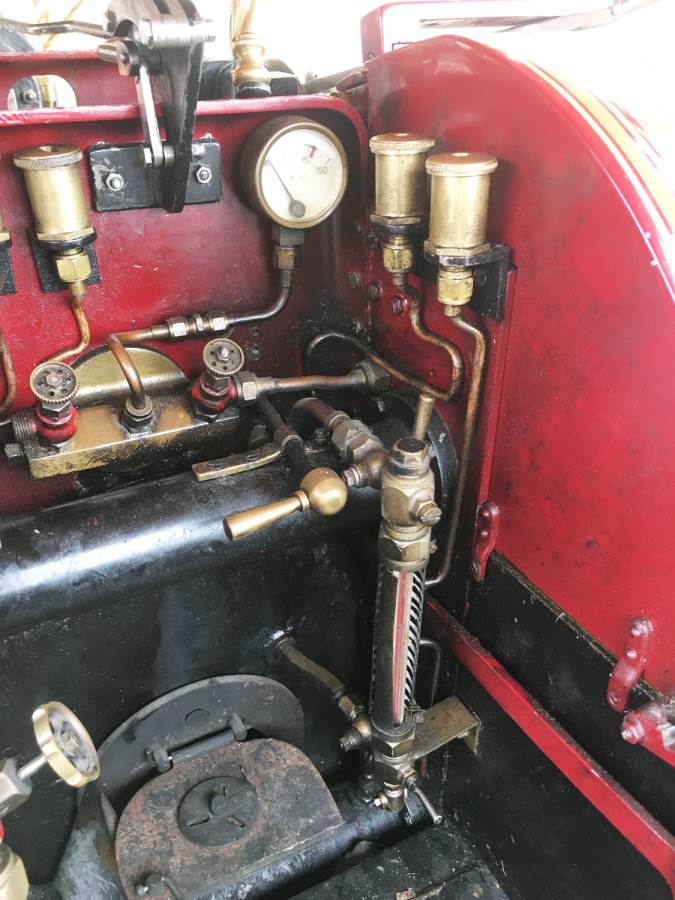 Interestingly the boiler is a solidly built copper, silver soldered one (which we will obviously supply with a full 4 year fresh hydraulic certificate and a fresh annual steam test so she's ready to play). Copper is rare on a model this large, not least because of the sheer cost of such a lot of copper and silver solder, but also because when you get up as big as 4" scale models, the weights involved are so much that Steel is often necessary to take the forces. This engine however has been successfully rallied and enjoyed for a good number of years without any detrimental effects. Indeed, with a copper boiler, once the model has run for a season and the copper has had the chance to work harden, there is no reason why copper boilers shouldn't be as strong as Steel,..... leaving purely the benefits of copper boilers over the rust prone steel ones to be self evident! In short,.... the boiler is a good un!