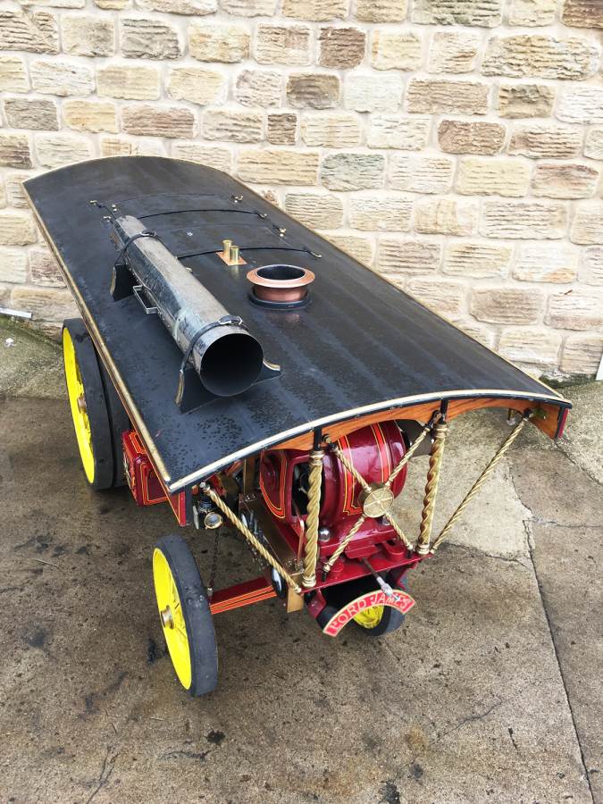 Here we have a rather impressively sized, and indeed generally impressive looking 4 1/2" scale Burrell Showman's engine. You may know this engine from Keith Appleton's YouTube channel, as Keith has owned and worked on this one for the past few years. The more eagle eyed of you will of course spot that she is based upon a 4 1/2"" Plastow Burrell SC agricultural tractor, and dressed rather convincingly in full on Showman's clothing! Not therefore the full on real deal complex double crank compound engine that authenticity would direct,..... but certainly an extremely well executed balance between the image of the real deal without the complexity and cost!