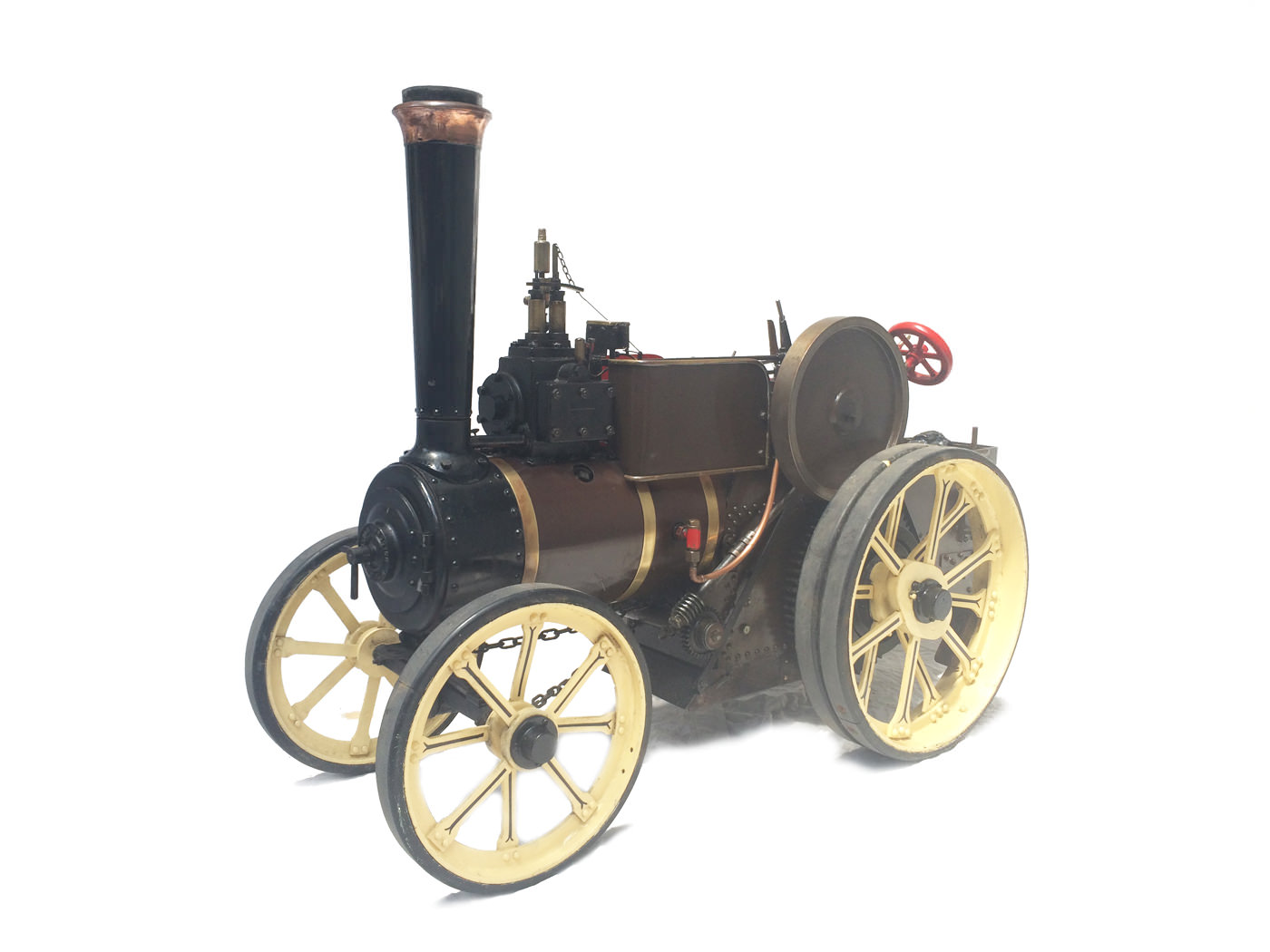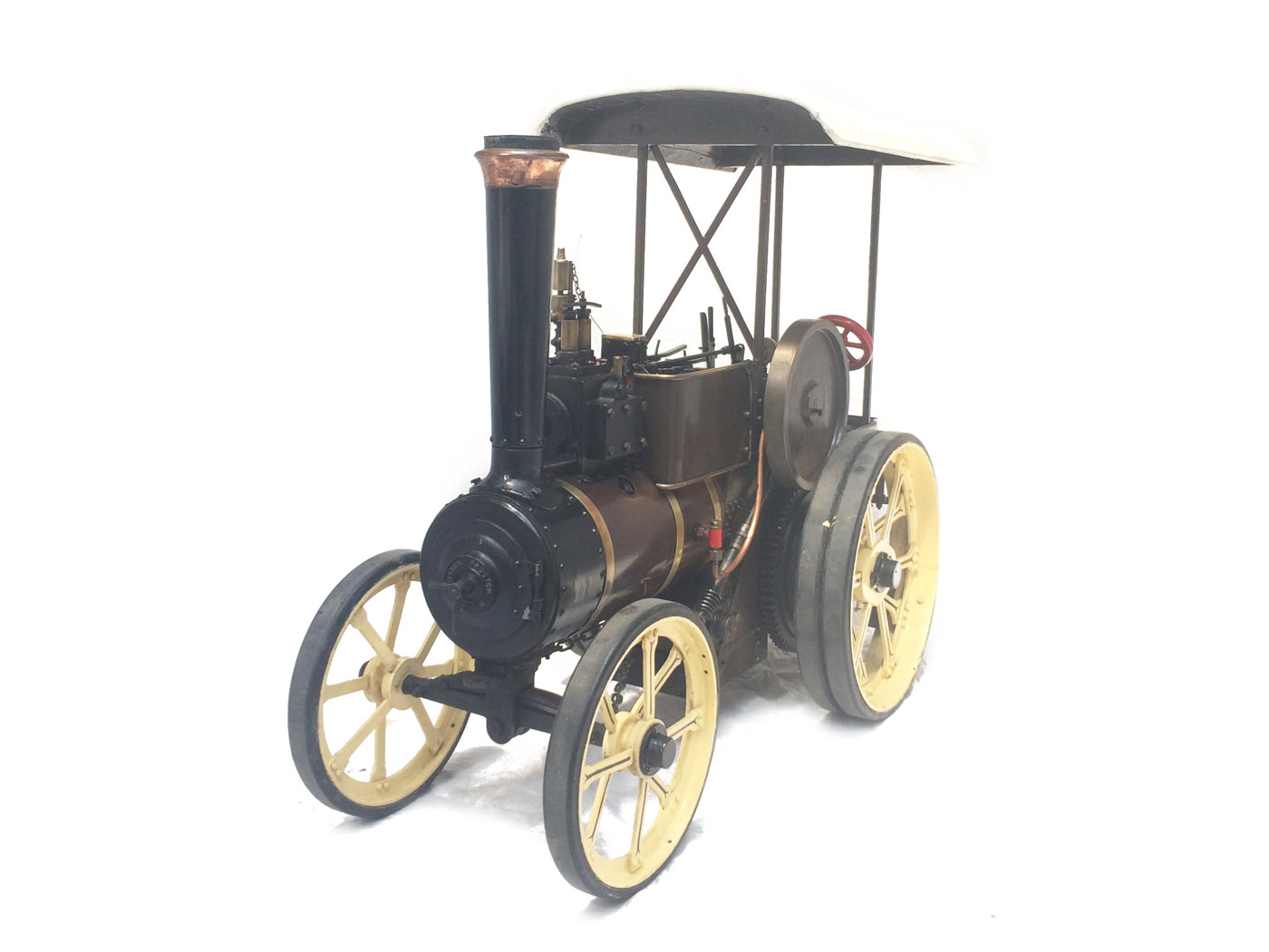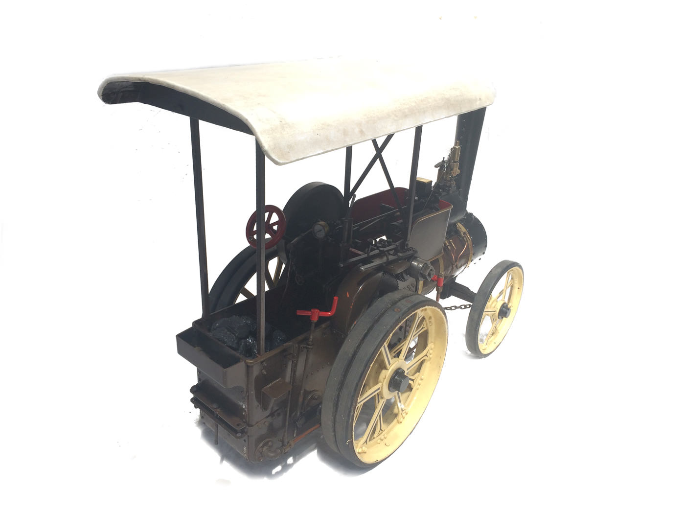 Here we have a 4" scale Ruston Proctor SD tractor. She is made to the LSM published design, and makes a nice sized model. On the small side for a 4", but bigger than the largest 3" engine, it's a manageable thing, but of a good enough size to comfortably drive around the rally field.