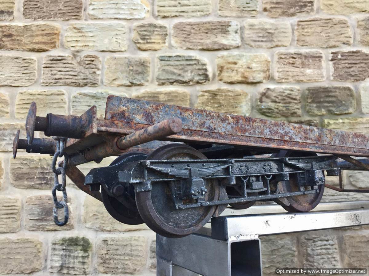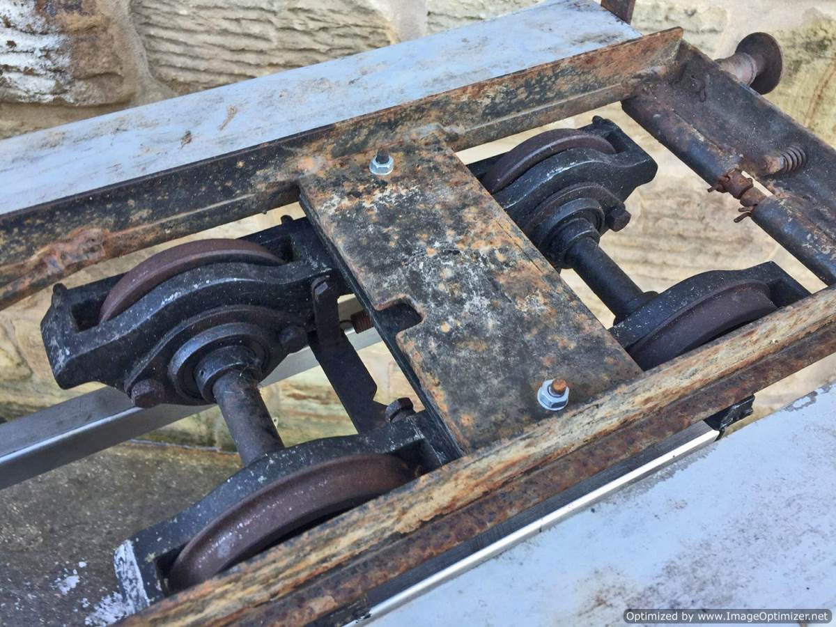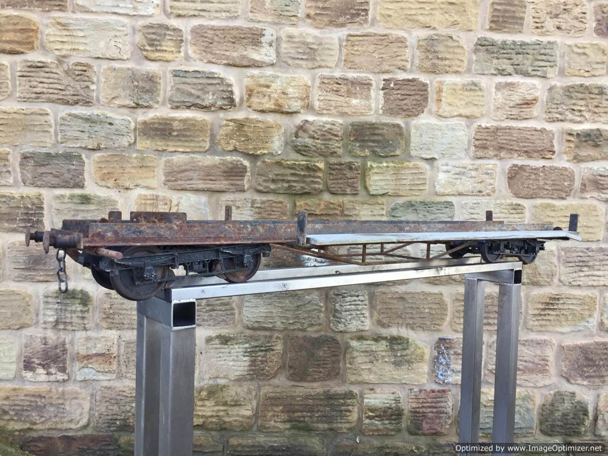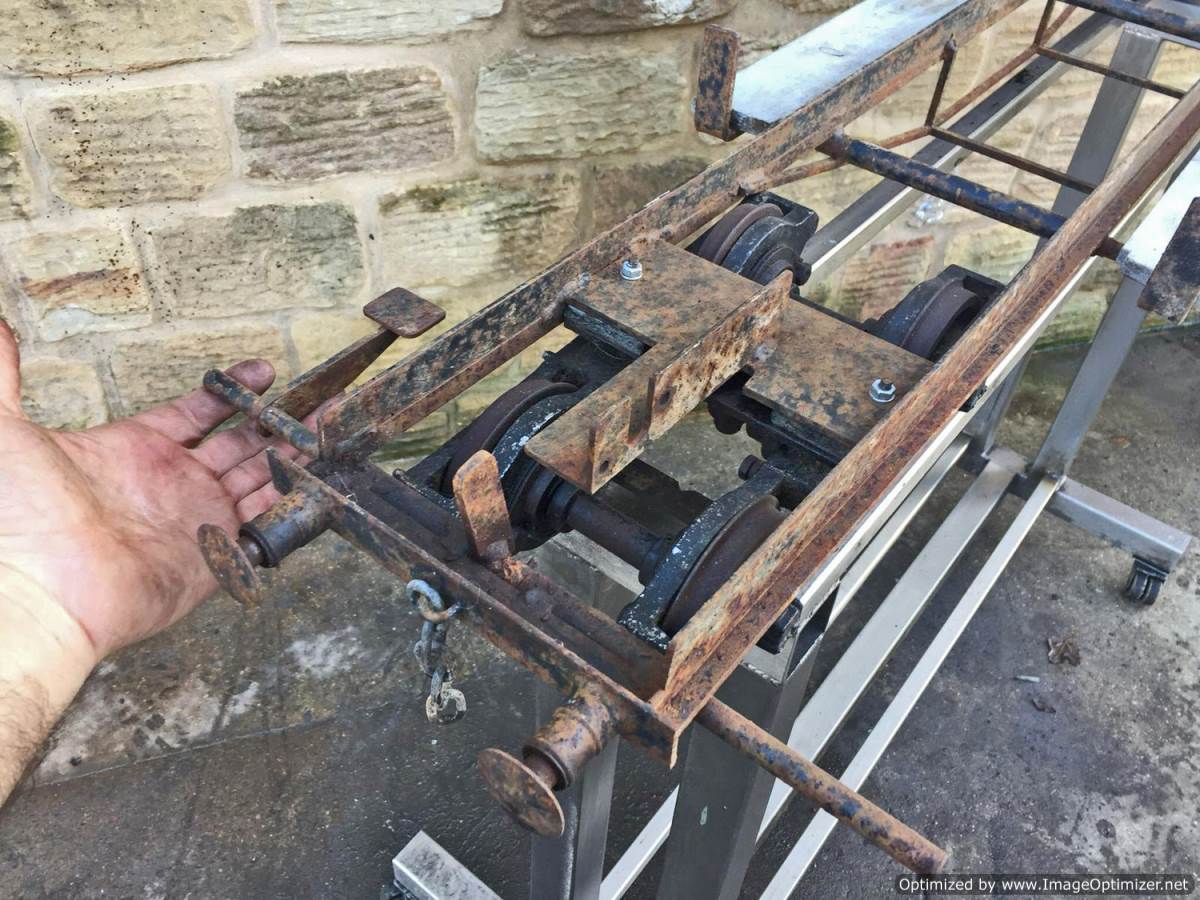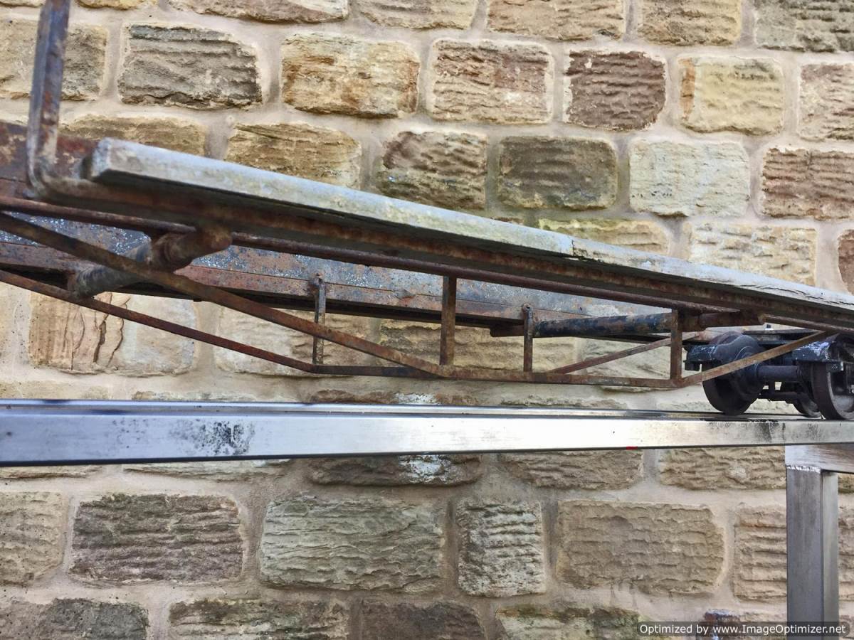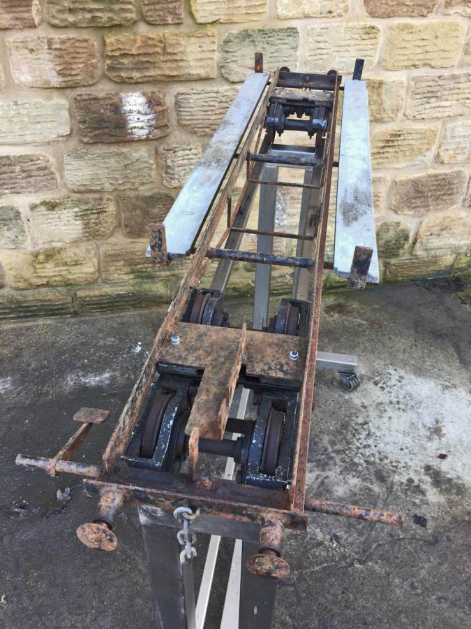 Here we have a rather scruffy and rusty looking 5" gauge Aristocraft carriage chassis. These are excellent carriages, and the bogie design is superb and smooth riding. The bogies are free rolling on self aligning sealed roller bearings, they are braked too from the foot brake, so if you're prepared to spend a few hours cleaning off the rust and giving it a fresh lick of paint, there is a very good scale carriage chassis here.
