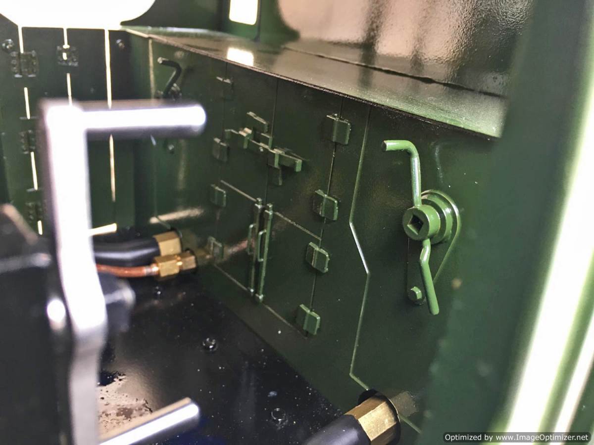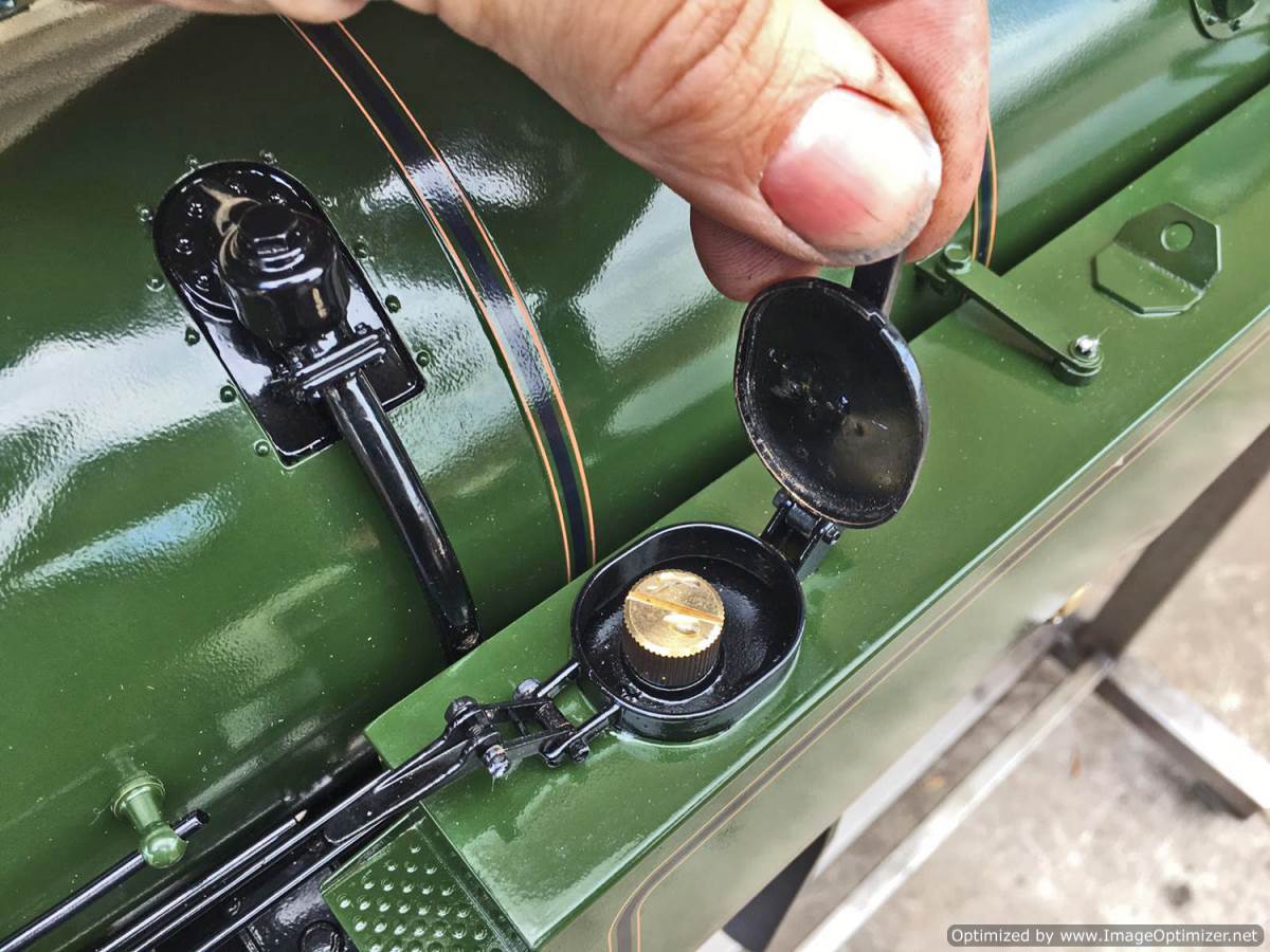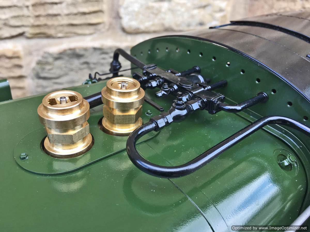 The model has a silver soldered copper boiler, CE marked and hydraulically tested to twice working pressure. Included are the full compliant of certificates and paperwork including an EU Declaration of Conformity. The loco was inspected by Mike Pavie before initial delivery including a 1.5 x hydraulic boiler test to ensure there was no leakage from the boiler fittings. The model was also run on air as part of that inspection.