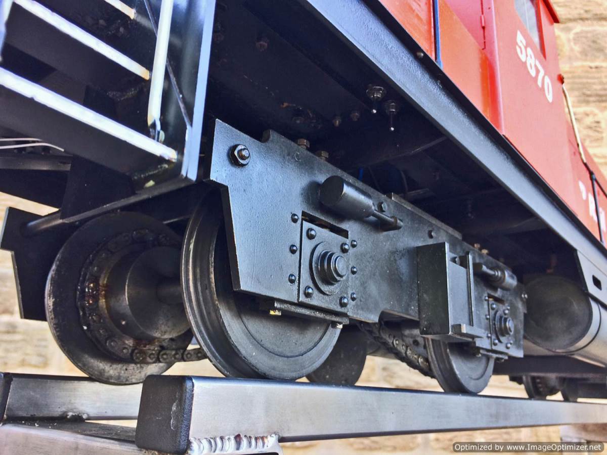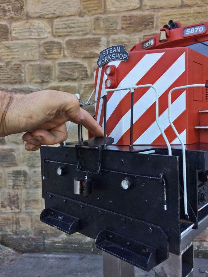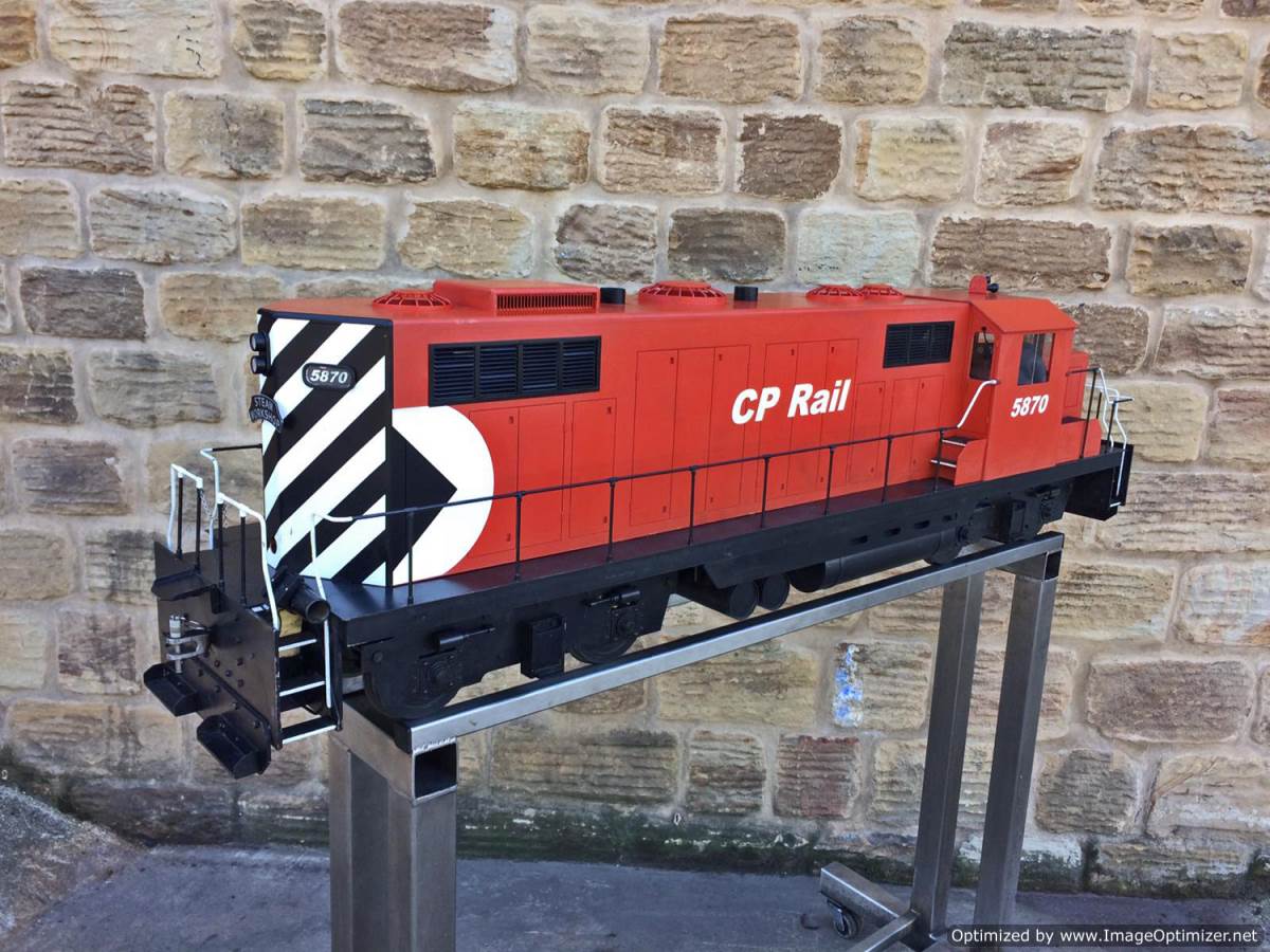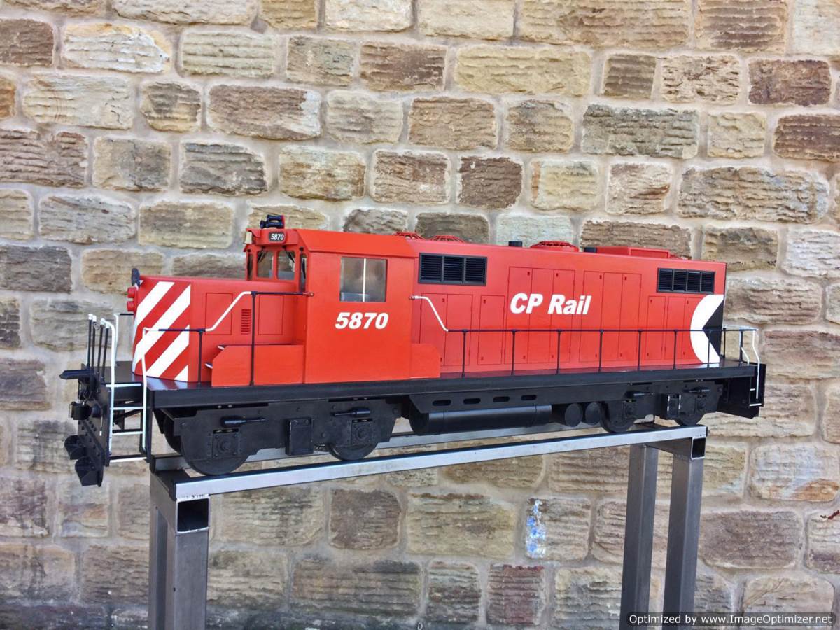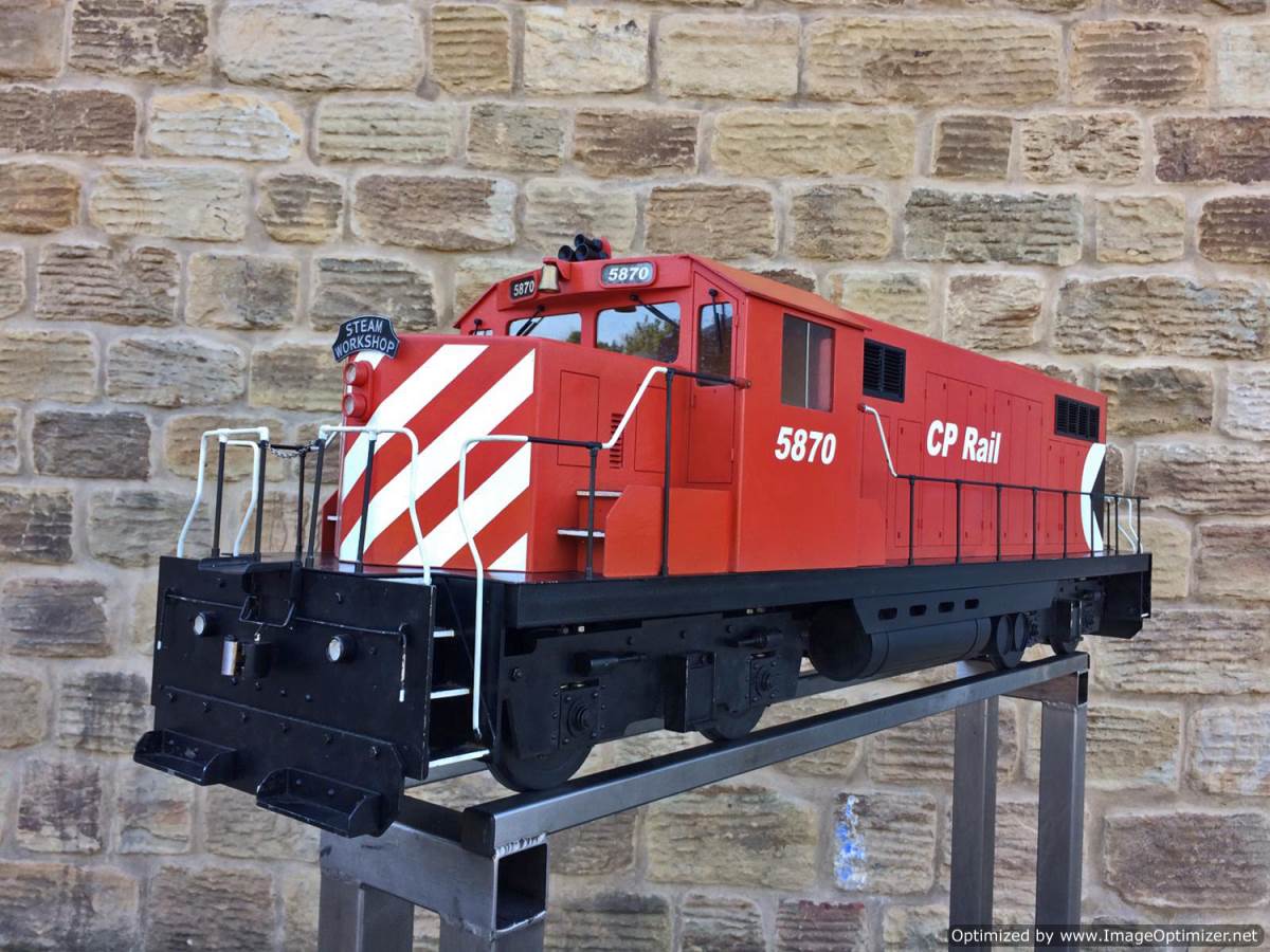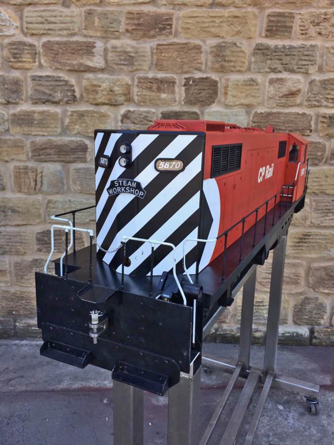 Here we have a really nicely made, scratch built 5" gauge CP Rail GP19.  We are steam folk here at TSW, so if any Diesel experts out there would like to help us out with any info on the prototype we would be grateful,...... but from a model perspective she's a nicely executed thing.  Made by a skilled and well respected model engineer, the body is made from wood, and strongly built.  The chassis being steel and extremely robust.  There's a sound card fitted and speaker, as well as a remote handset and a chunky battery charger to keep the two batteries fully charged.  For the asking price she will be supplied with two fresh new batteries so ready to play.