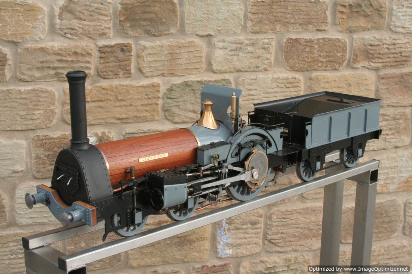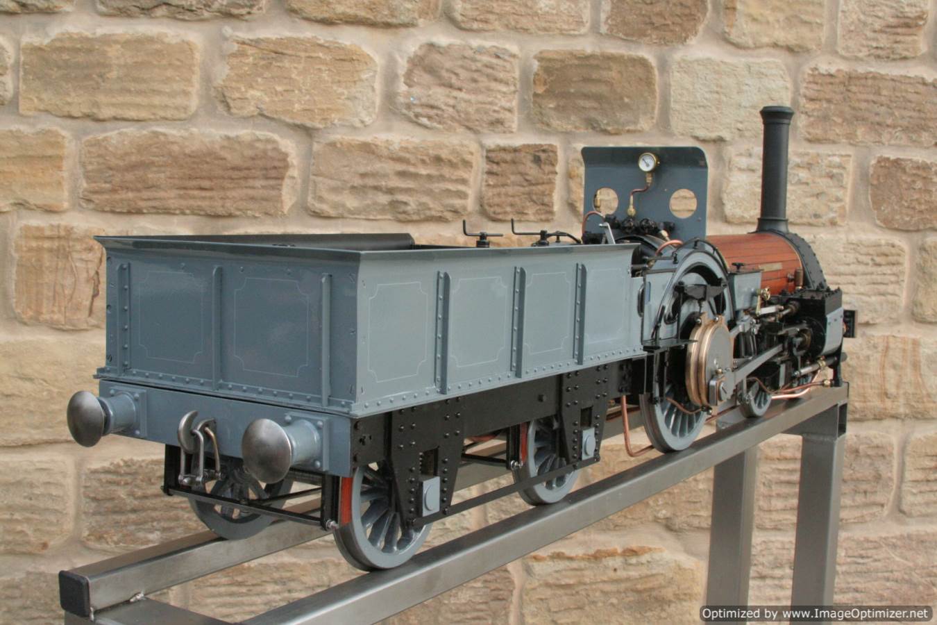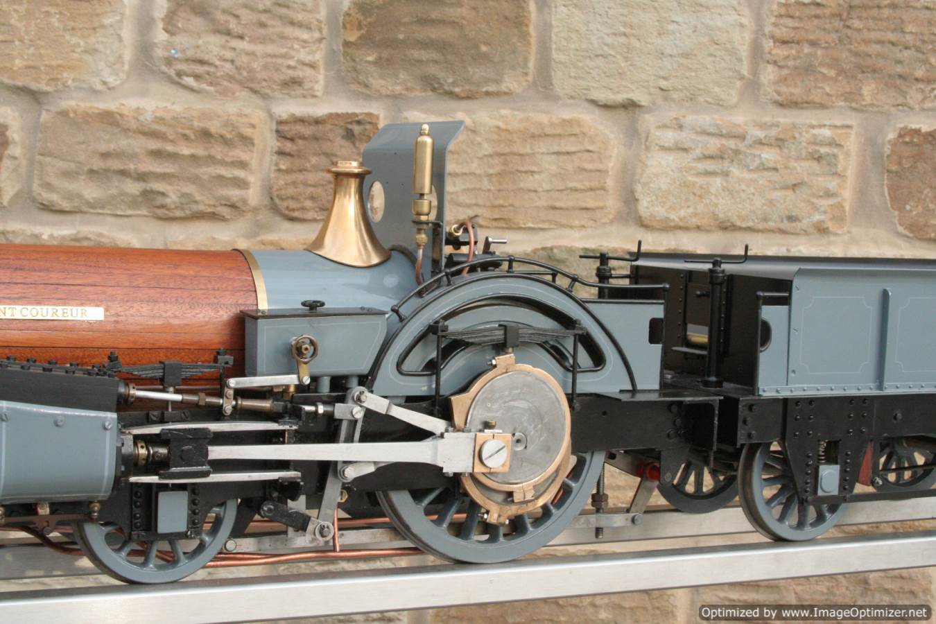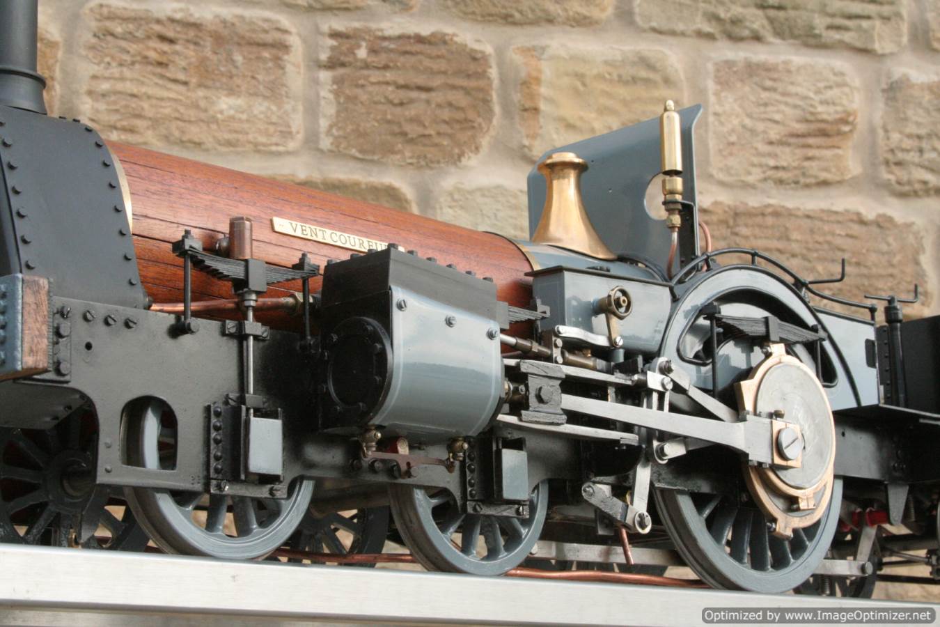 To the model!  This is one that we have had a little hand in.  When it cam in it was missing a few little bits and bobs and in a particularly odeous shade for insipid green!  So we took the decision to give it a quick strip down, re-paint and re-build, as we reckon there's not enough Cramptons out there with a decent finish on em!  For some reason they always seem to be a clumsy green colour, instead of something a little more Victorian and inspiring.  We've been waiting for the right loco to go into grey for some time now, and this one has become it!  So, mechanically she's had brand new pistons and rods, and a general strip down and re-build.  The injector set up is all brand new, and the water pump has been overhauled.  The boiler was tested outside the frames and unclad and comes with a full fresh 4 year hydraulic cert, and a fresh steam cert can be sorted as soon as she leaves.