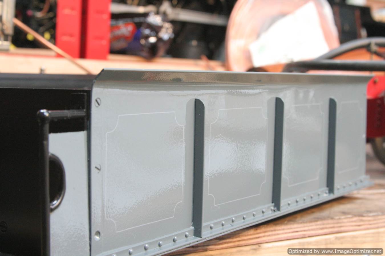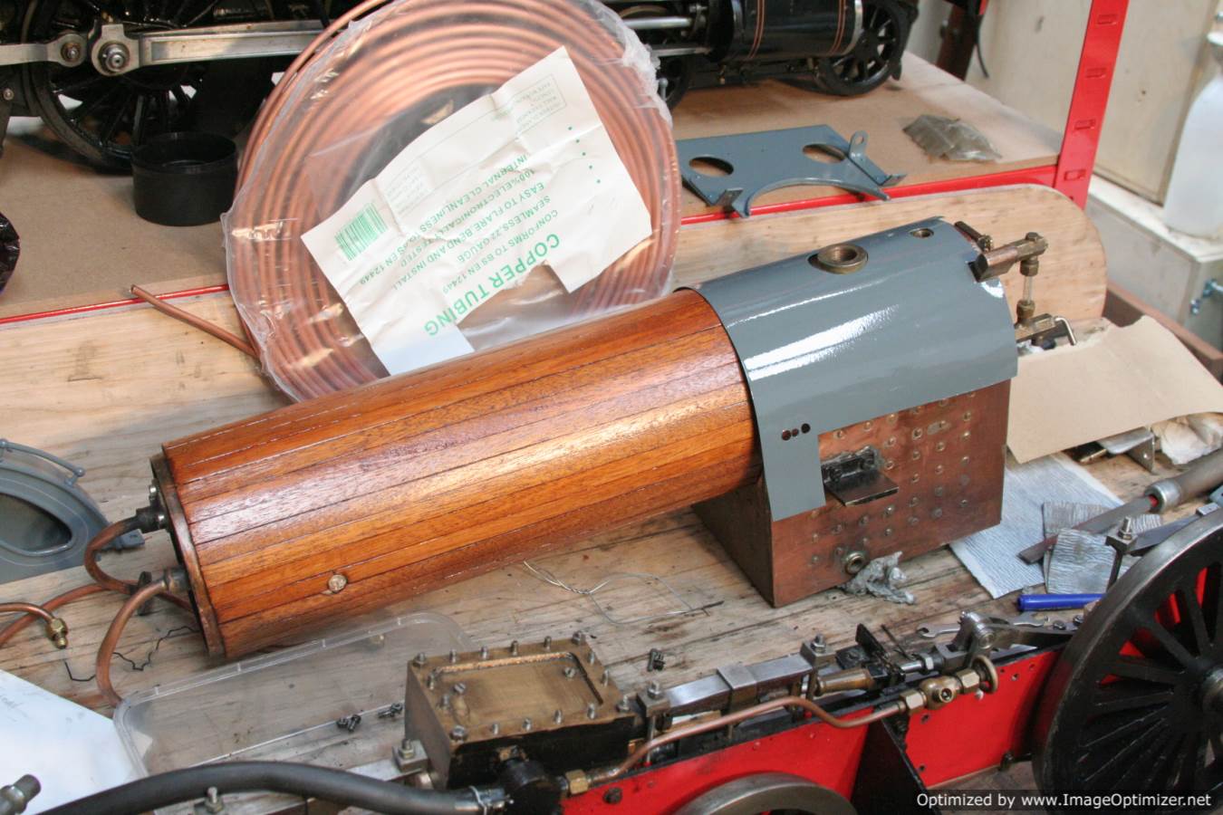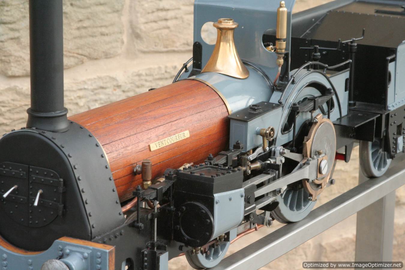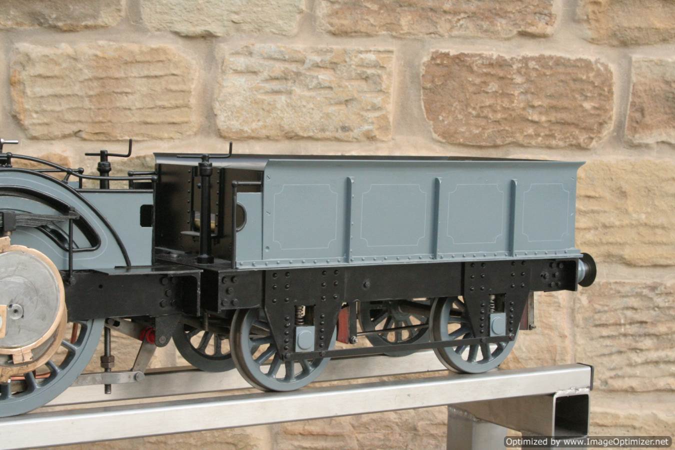 To the model!  This is one that we have had a little hand in.  When it cam in it was missing a few little bits and bobs and in a particularly odeous shade for insipid green!  So we took the decision to give it a quick strip down, re-paint and re-build, as we reckon there's not enough Cramptons out there with a decent finish on em!  For some reason they always seem to be a clumsy green colour, instead of something a little more Victorian and inspiring.  We've been waiting for the right loco to go into grey for some time now, and this one has become it!  So, mechanically she's had brand new pistons and rods, and a general strip down and re-build.  The injector set up is all brand new, and the water pump has been overhauled.  The boiler was tested outside the frames and unclad and comes with a full fresh 4 year hydraulic cert, and a fresh steam cert can be sorted as soon as she leaves.