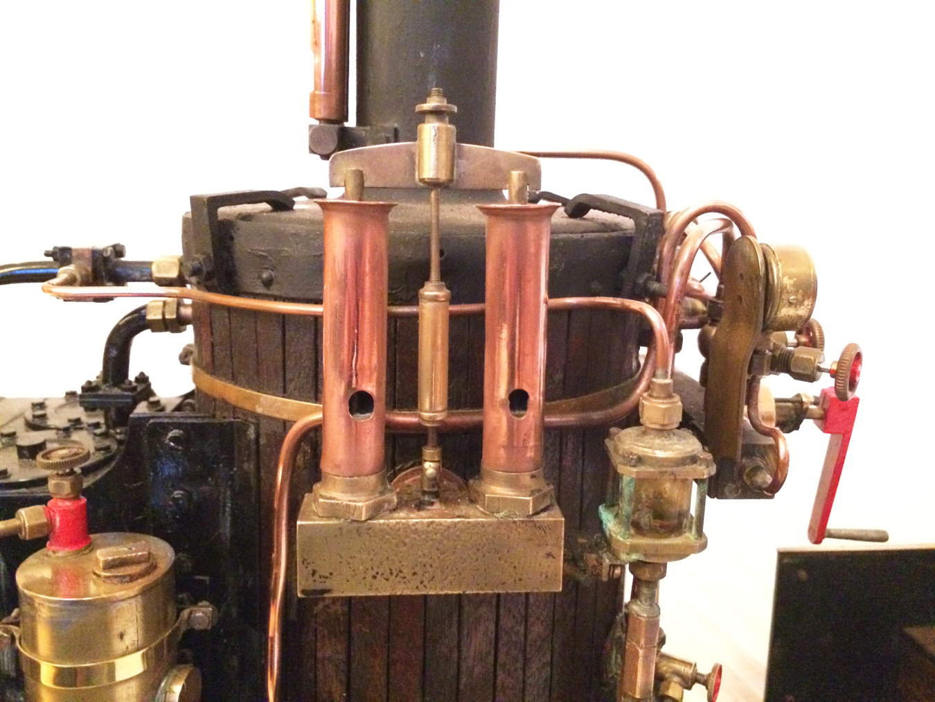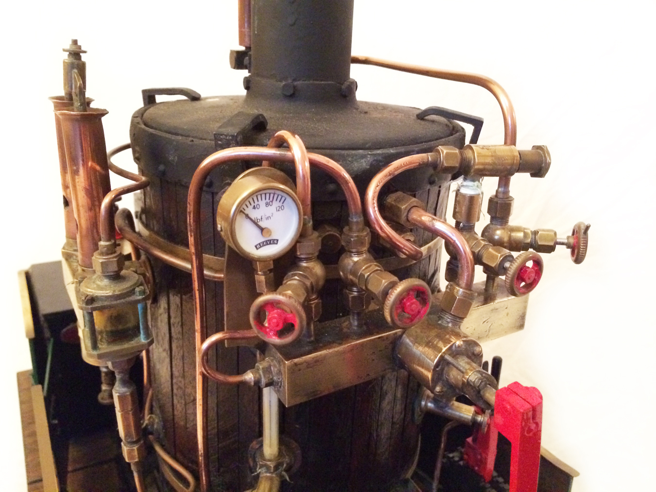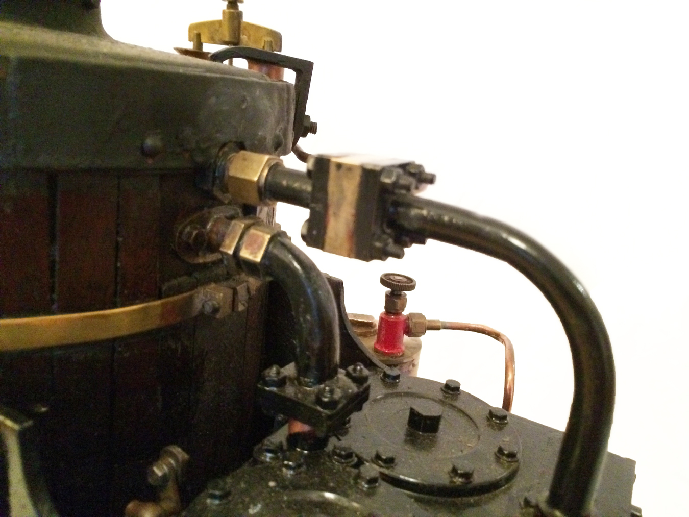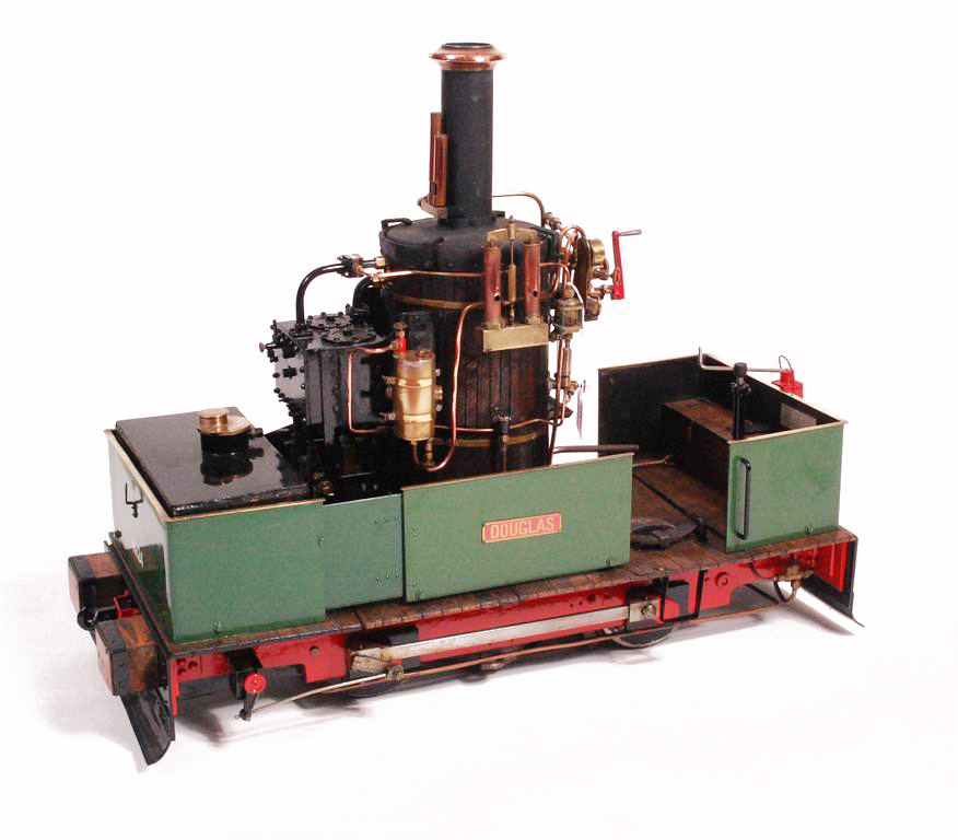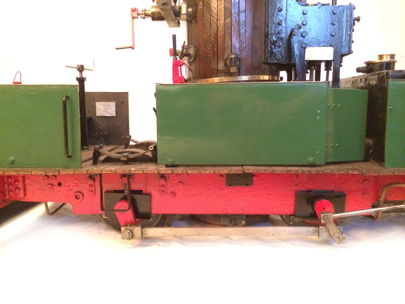 Here we have a rather nicely made and detailed 5" gauge De Winton vertical boiler 0-4-0T.  It has a model engineer scratch built vertical twin cylinder, fully reversing engine, fed by a displacement lubricator with a finely controllable drip sight feed.  Often narrow gauge De Winton models seem for some reason to be crudely machined and very simply assembled things, but not so here.  It runs beautifully on air, notching back nicely, and is just generally a very lovely, and nice sized 5 inch loco that will give hours of free steaming pleasure in your back garden or at the club.