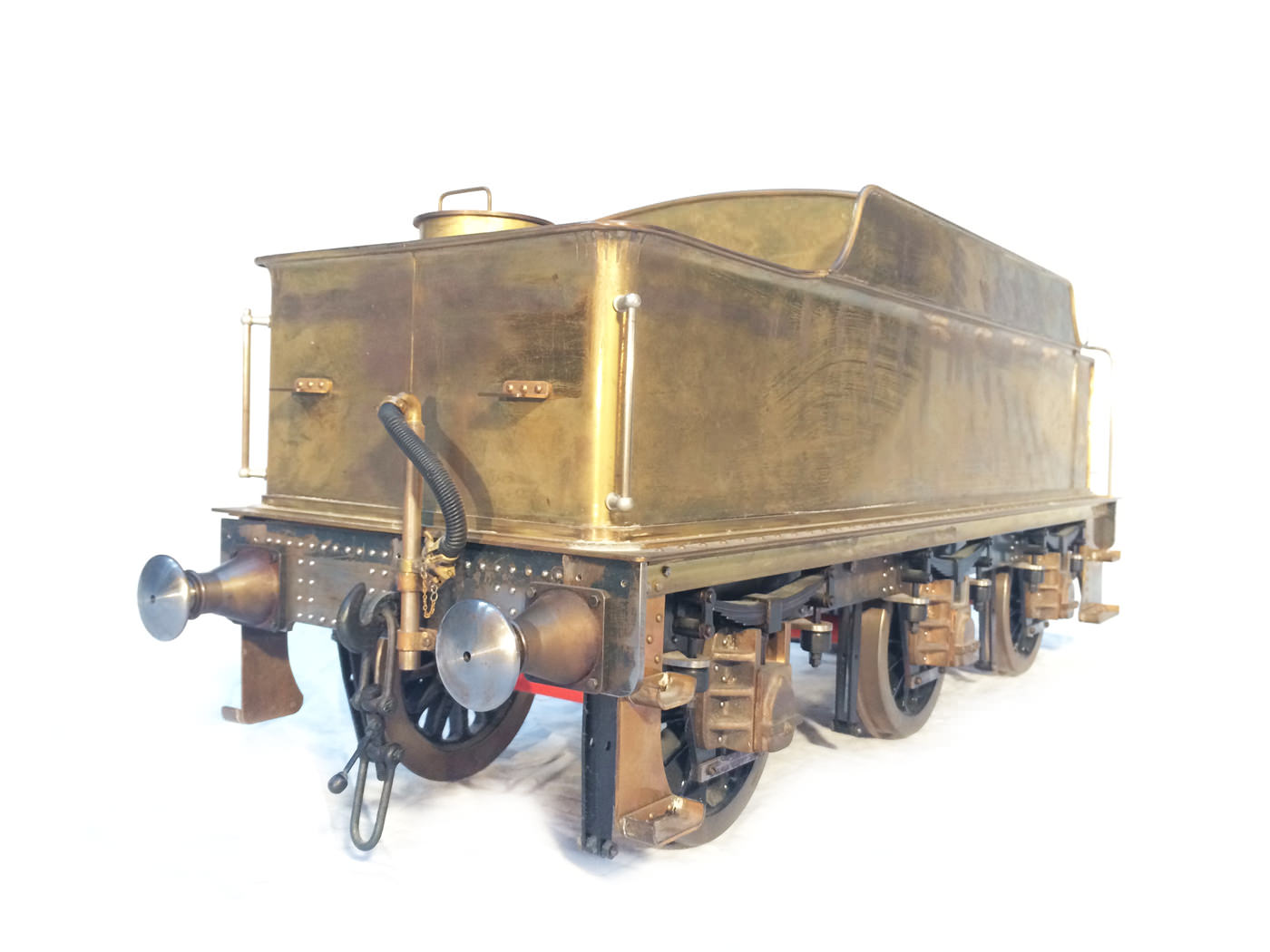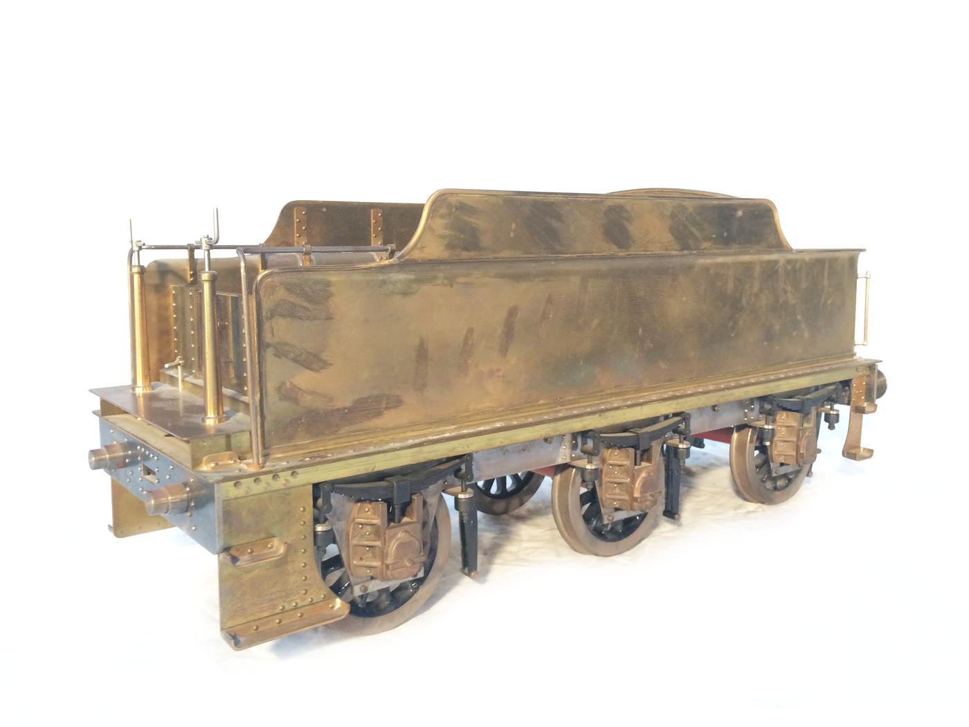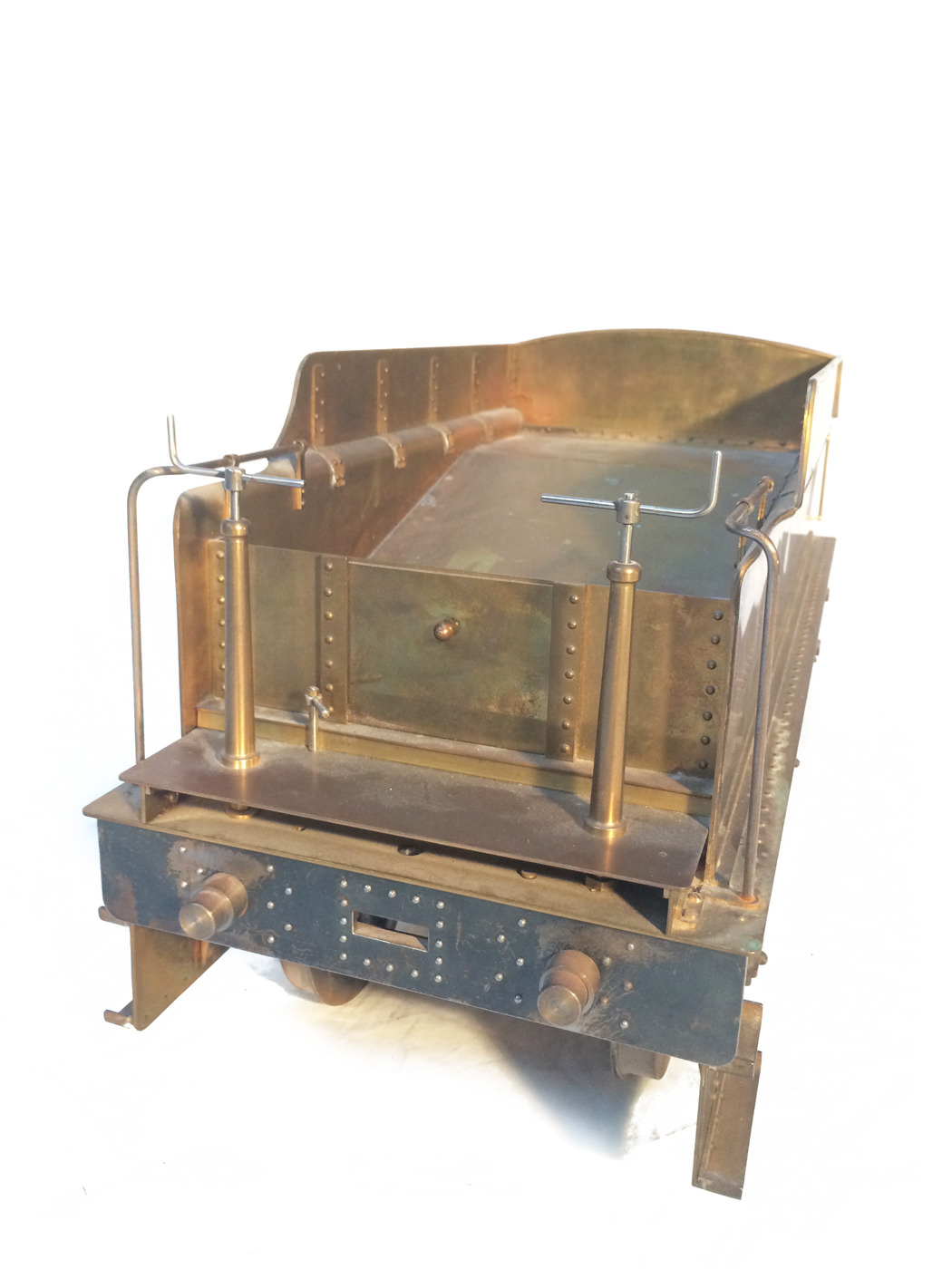 The photographs will obviously tell the story better than it is possible to do here in words, but essentially this one is very nearly there! The backhead needs plumbing up, although all the front end, superheaters, blast pipe, blower ring etc is already sorted. The tender front would benefit from the last few bits of detailing adding, tool boxes etc, and the brake blocks are there but not fitted,.... and the front of the firebox cladding is still to be made. Beyond that it's pretty much there, and very nicely made at that!