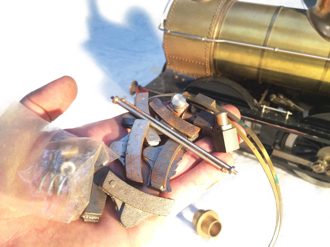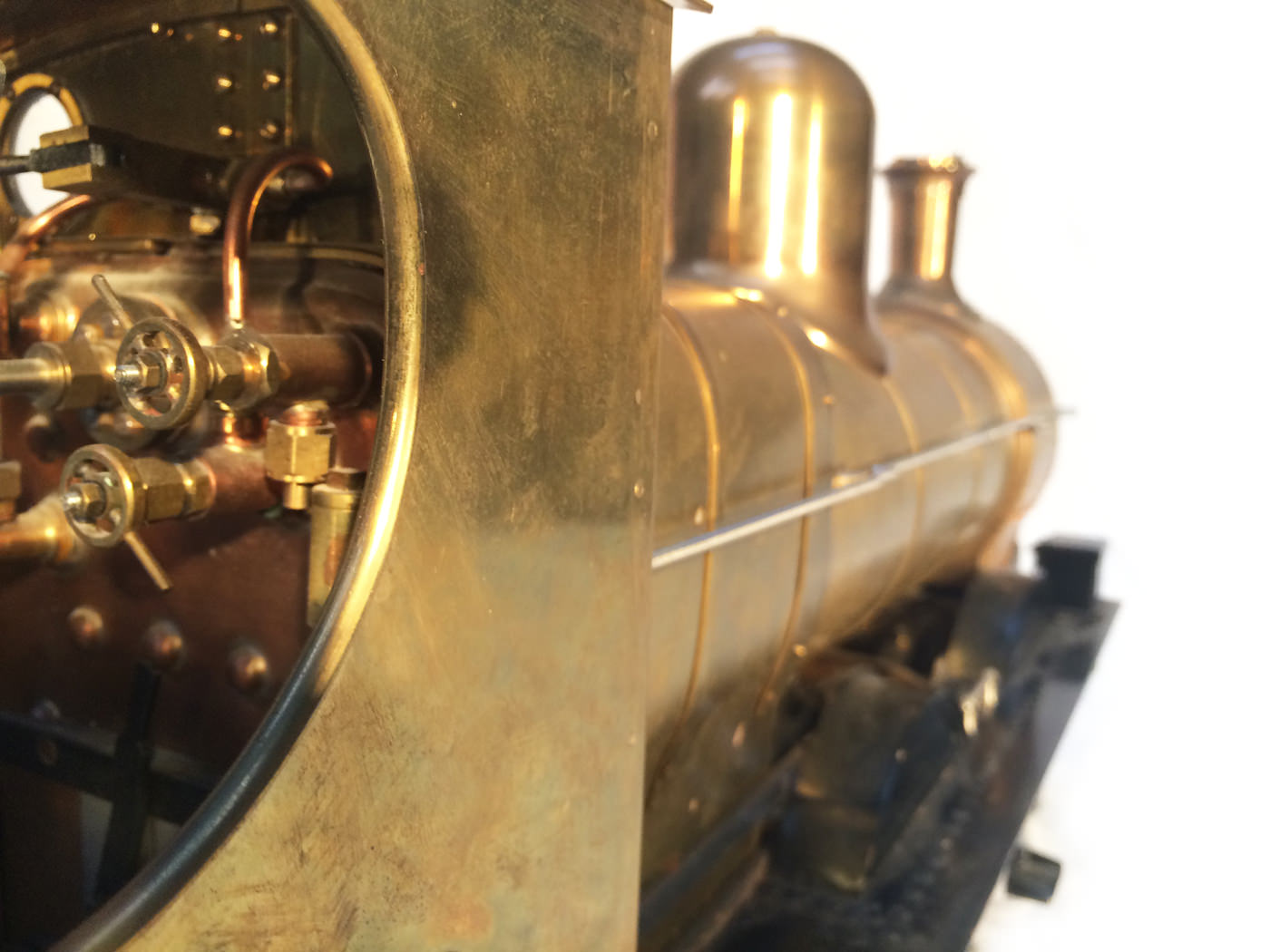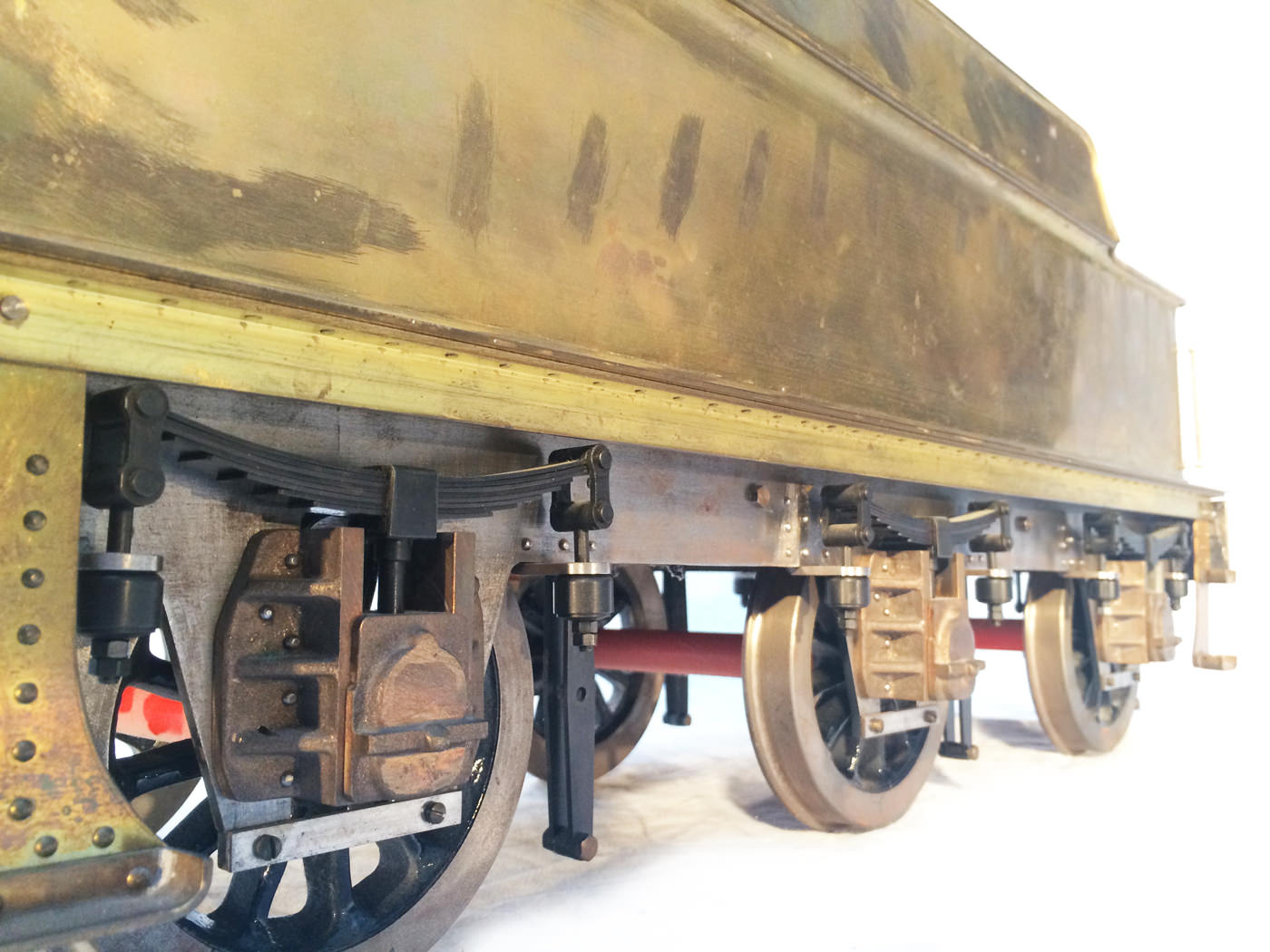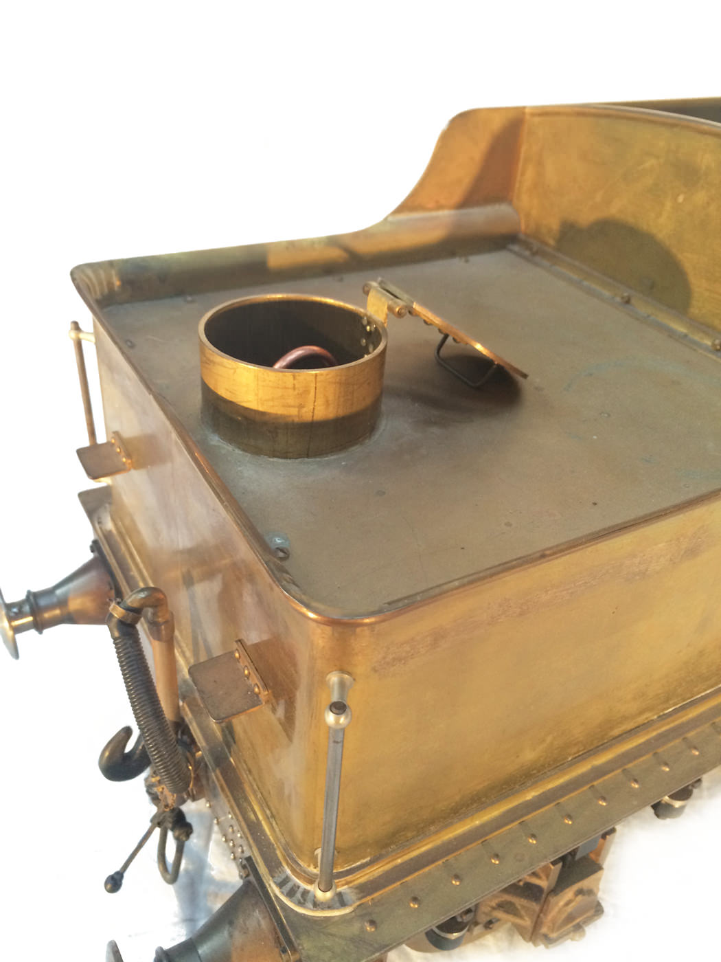 The photographs will obviously tell the story better than it is possible to do here in words, but essentially this one is very nearly there! The backhead needs plumbing up, although all the front end, superheaters, blast pipe, blower ring etc is already sorted. The tender front would benefit from the last few bits of detailing adding, tool boxes etc, and the brake blocks are there but not fitted,.... and the front of the firebox cladding is still to be made. Beyond that it's pretty much there, and very nicely made at that!