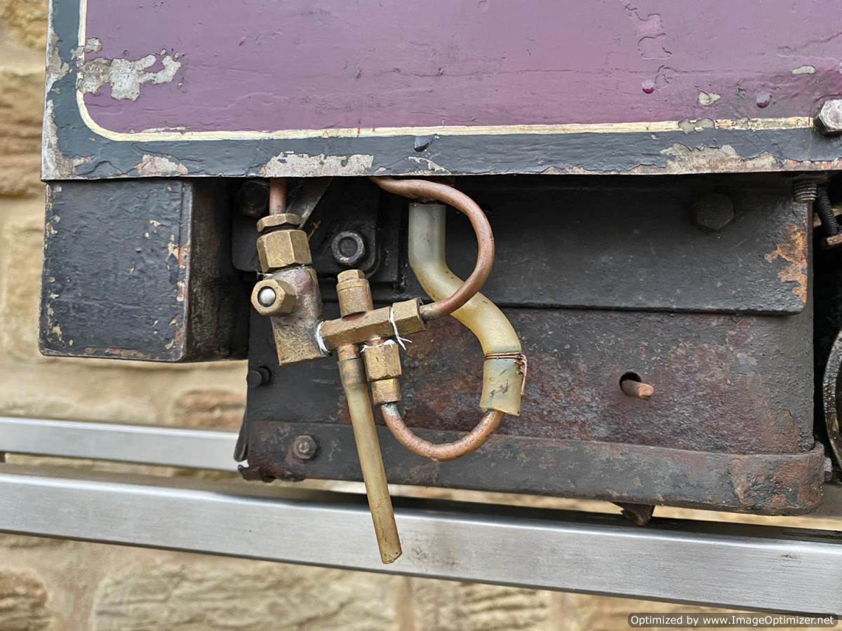 There is an injector fitted as well as a big hand pump in the cab/tank.  Lubrication is a simple displacement pot in the cab.  To sum up, this is definitely a 'project' loco, and you're going to have to do at least a little work to bring her back to life.  But crude as she is in places, judging by the obvious signs of use, we bet you could shove in a fire and it would probably just run!