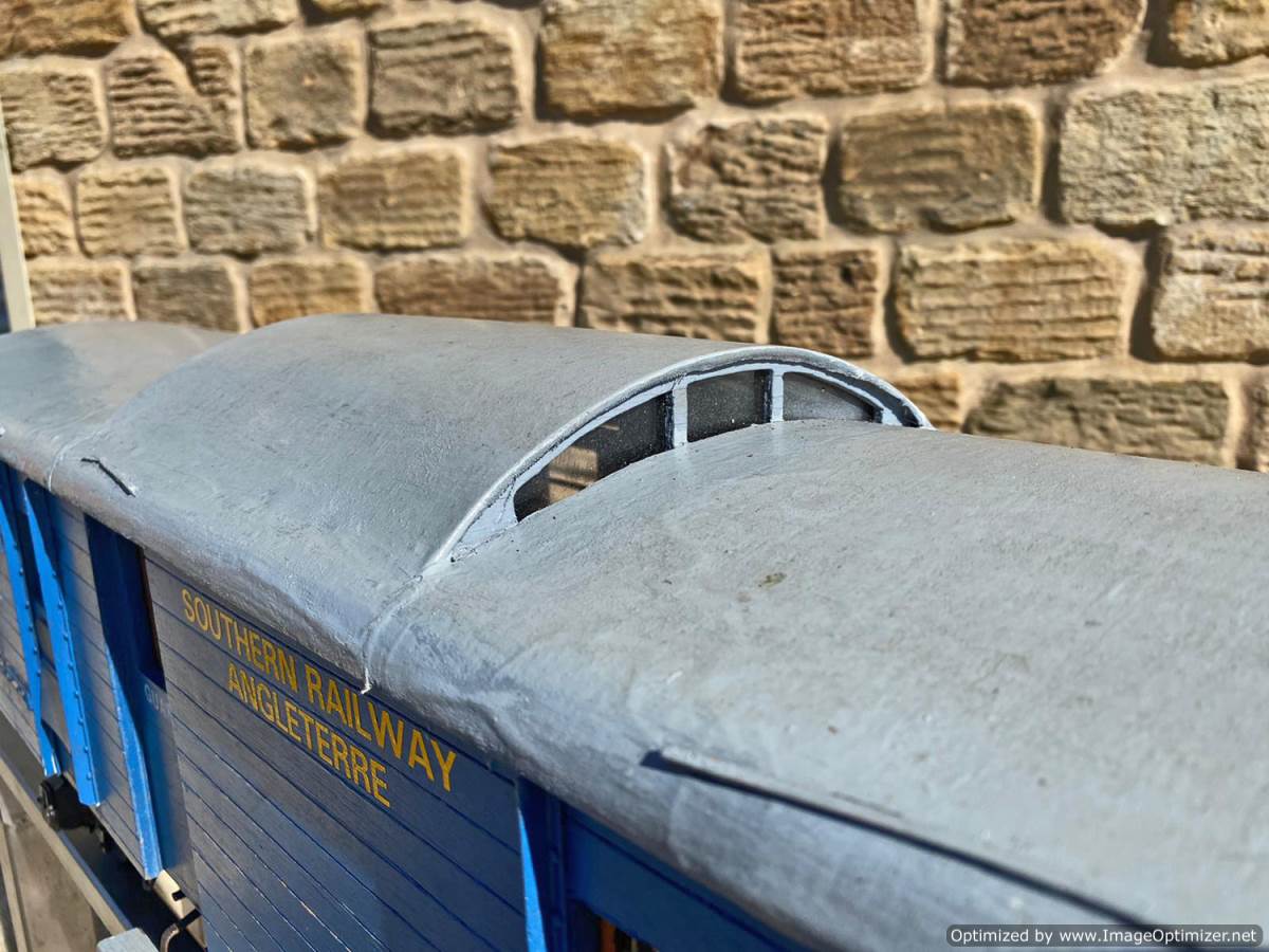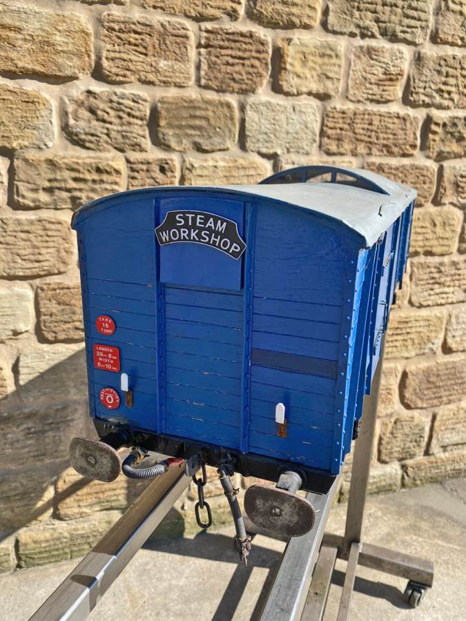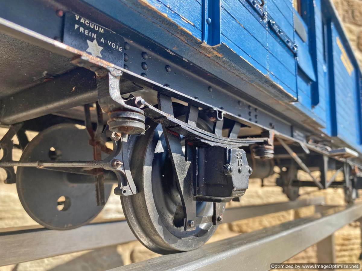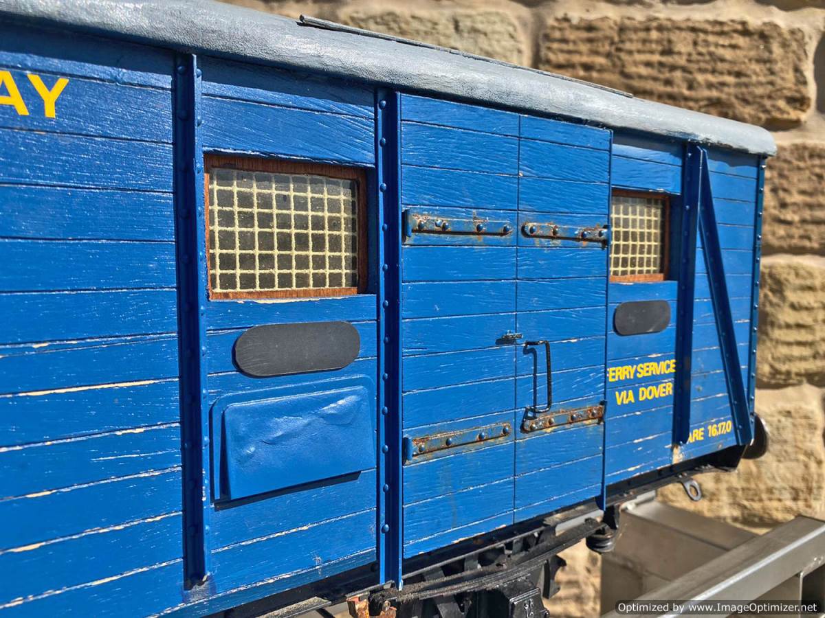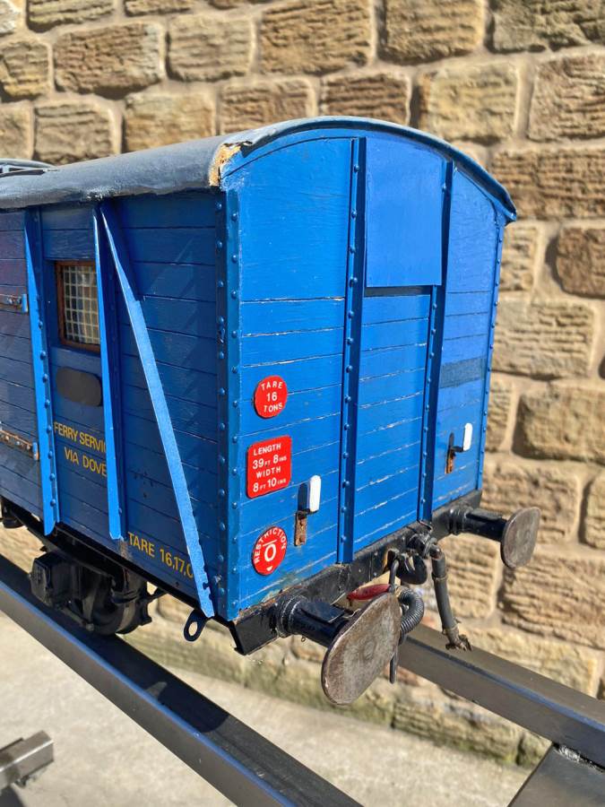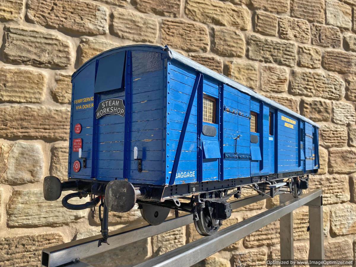 Here we have a very unusual 5" gauge Southern railway continental Wagon Lit London-Paris Guards Van. They were either painted blue or dark green and used on the Golden Arrow services and the Night ferry trains from London to Dover, and a usual train was made up of perhaps six sleeping cars with three or four special luggage vans and one of these special brake vans. It's a really nice model, with loads of scale detailing. Cosmetically it's a little on the scruffy side here n there through use at GL5 running events, and we found that it tended to bob a little on one end, which we remedied with a lump of metal inside to give it a little weight and stability. It's a unique model as far as we are aware.
