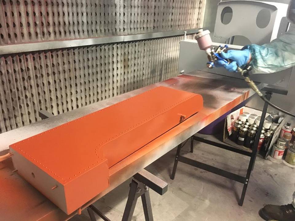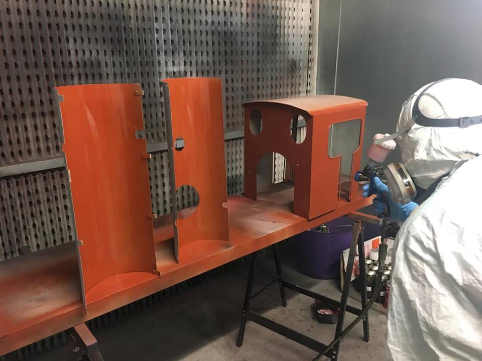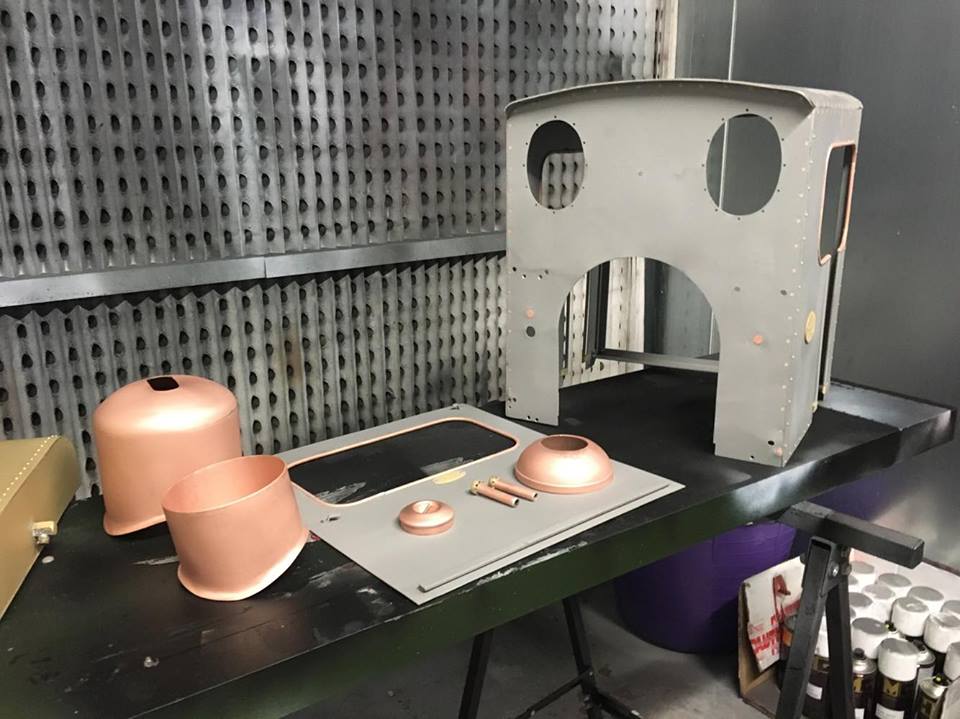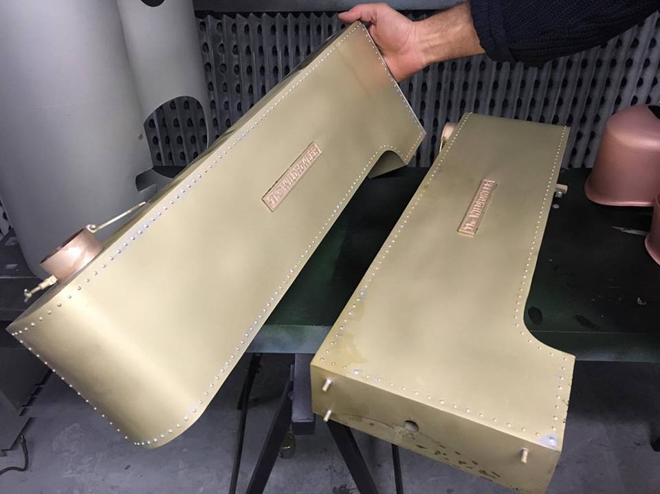 So then we sprayed up the bodywork in our own version of Fowler brown. The lining is all painted on of course, and we have been inspired on this lining by the 2' Fowler 'Saccharine' at Statfold barn.