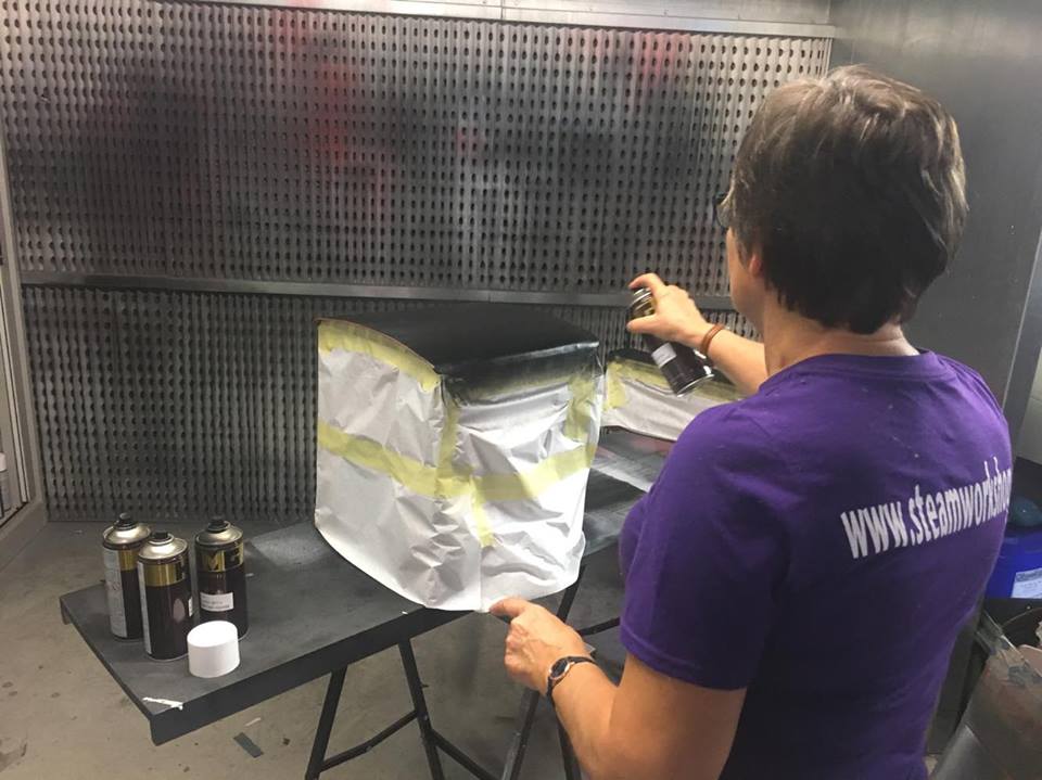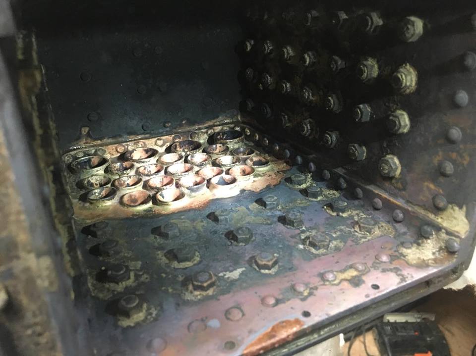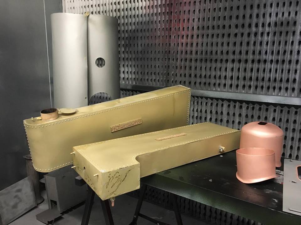 All the body work was stripped off the locomotive, and then all the paint was removed. The individual parts were then all water jet bead blasted to bring them up to a lovely finish, ready keyed for paint. Water blasting was used in preference to dry bead blasting as some of the platework is large flat sheet areas that would have been susceptible to warping if the process was done dry.