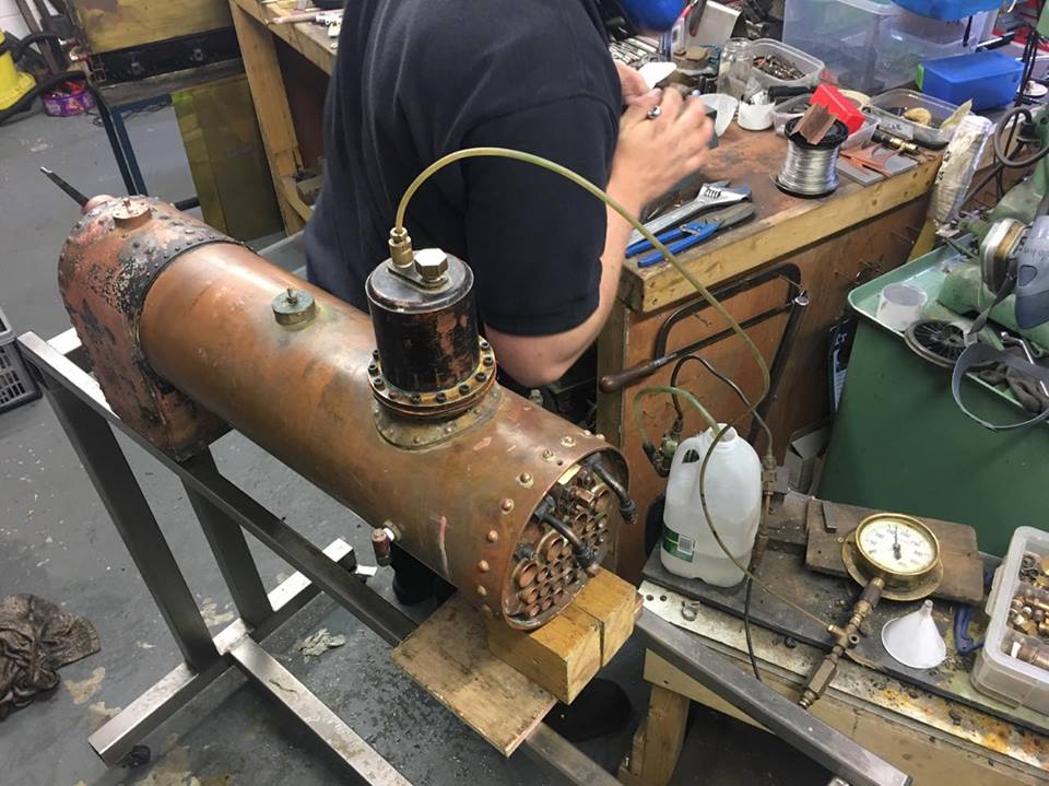The photos below show some of the stages in the process as well as the hydraulic and steam test of the finished boiler in the works.