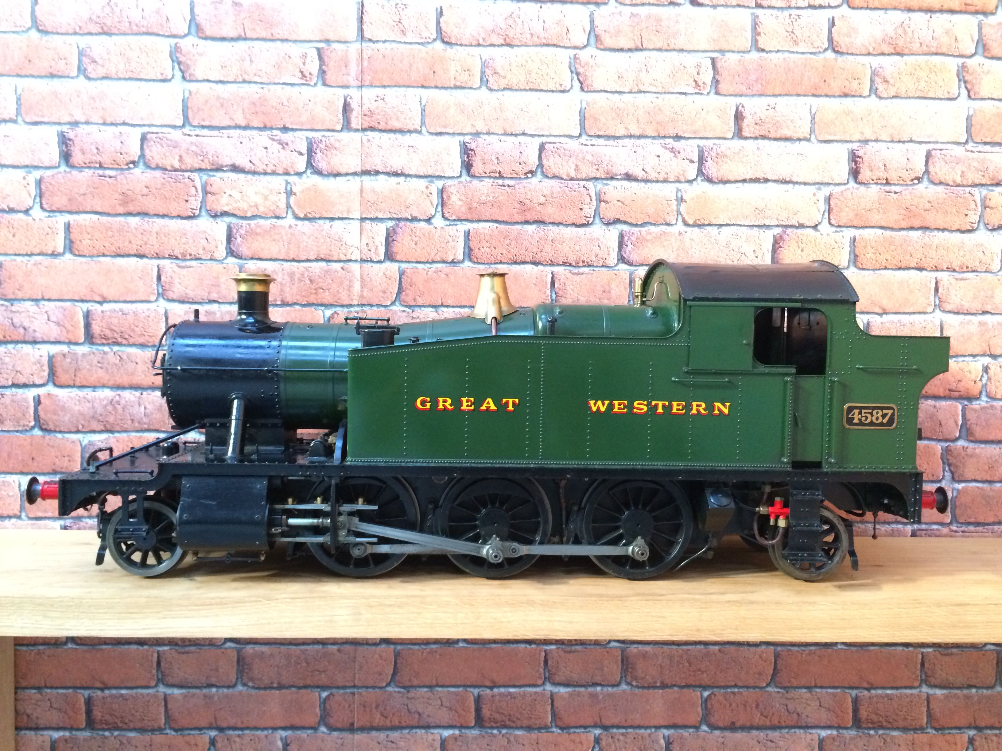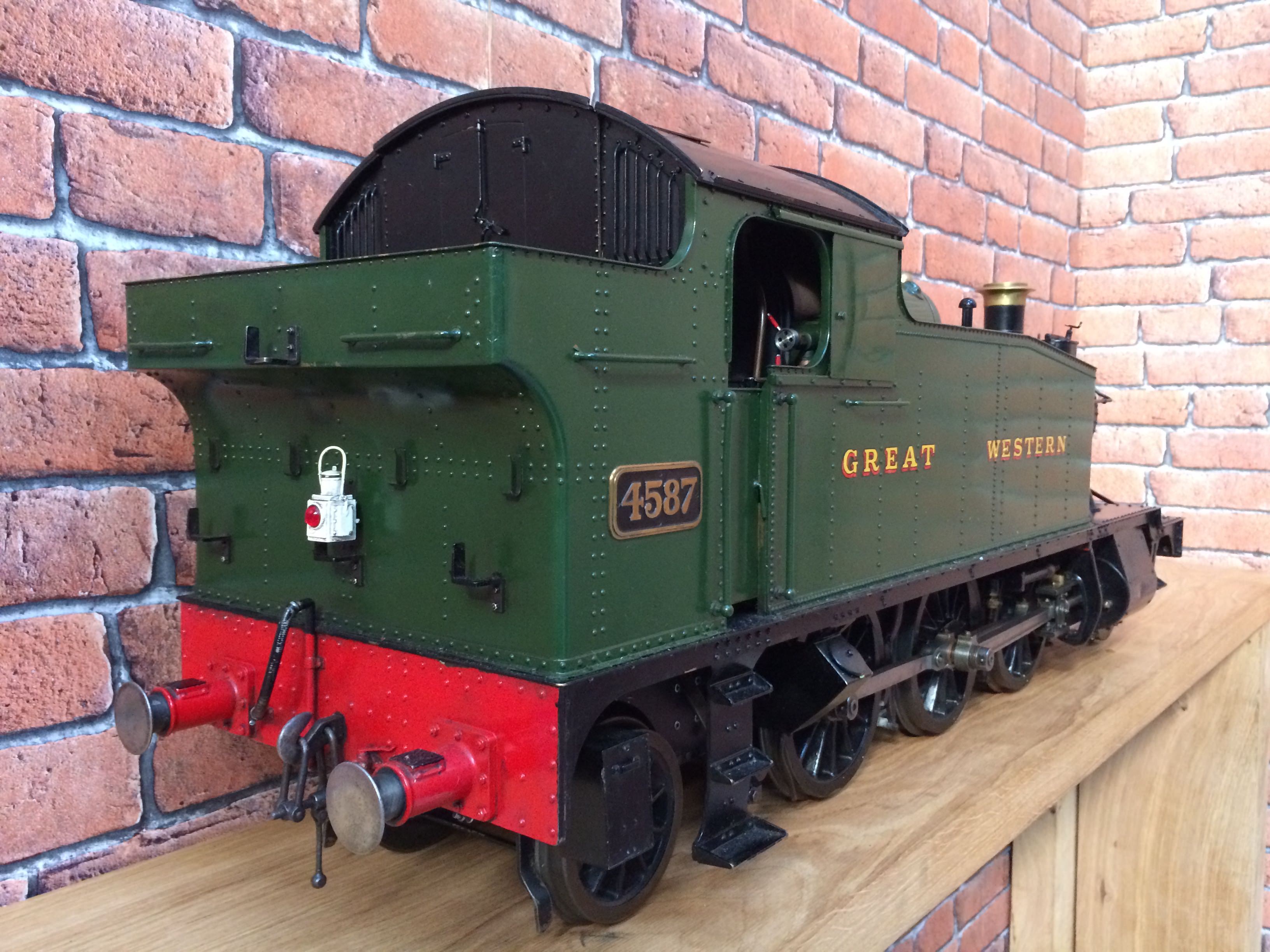 Here we have a rather lovely 5" Gauge GWR 45xx Prarie tank. This is the well known Cribbin cup and Silver medal winner from the 1972 London Model Engineering Exhibition. The paint is in pretty tidy condition, and although clearly not as 'exhibition' fresh as she was in the 70's, it has since achieved a lovely patina of age, rather than become tatty.