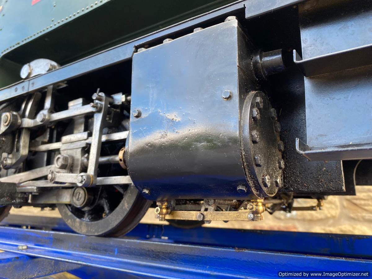 There is a pair of decent sized injectors fitted which is all you should need on a chunky loco like this. Lubrication is mechanical and fitted as you can see under the left hand side tank. All in all a great little starter loco to get you going in 7 1/4", and a convincing representation of the full size prototype at that!
