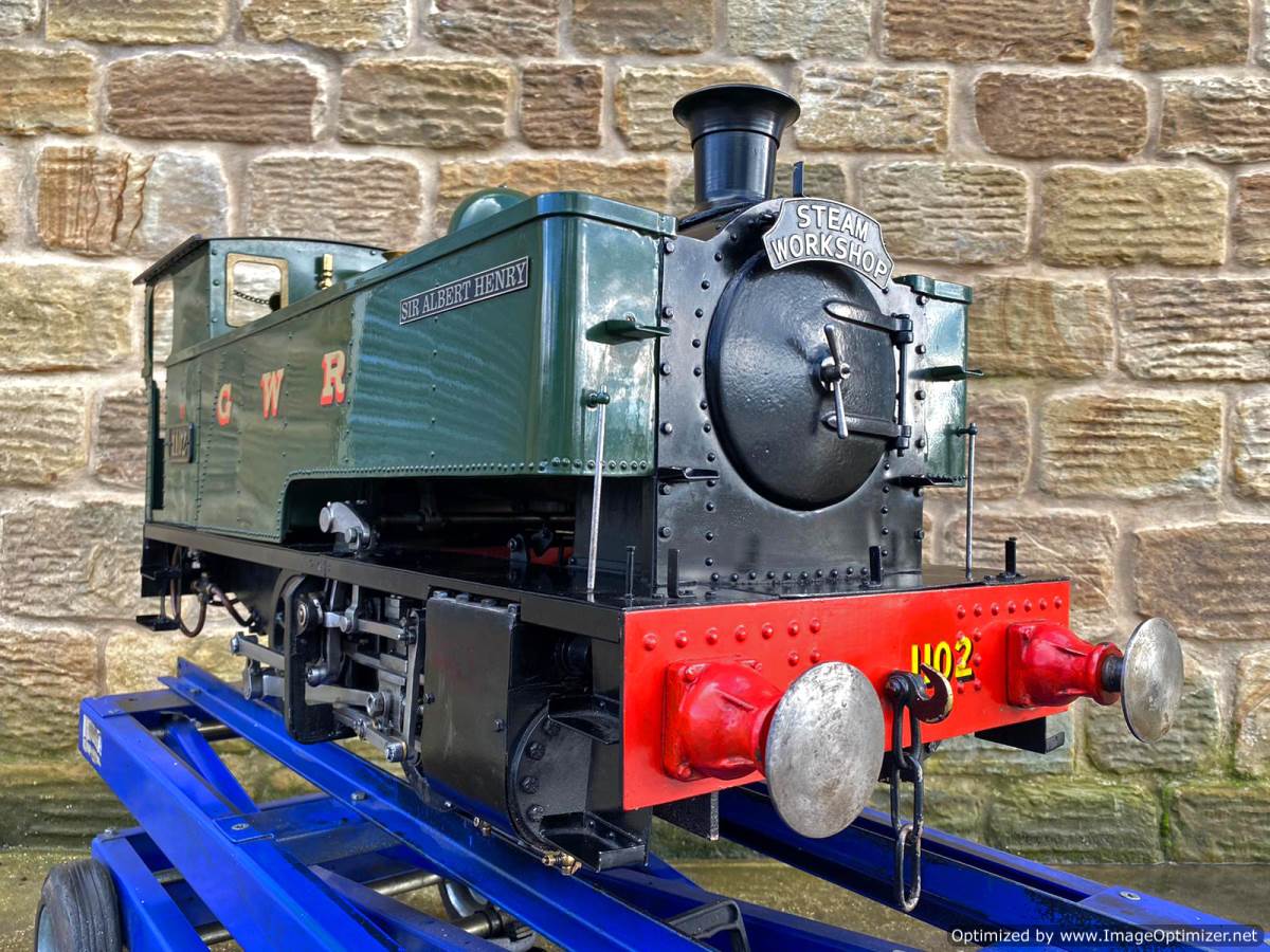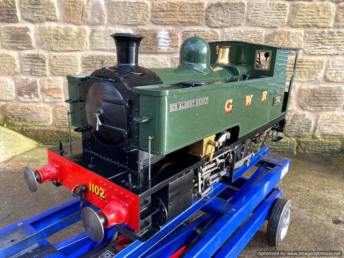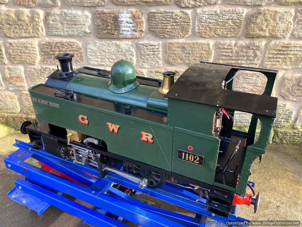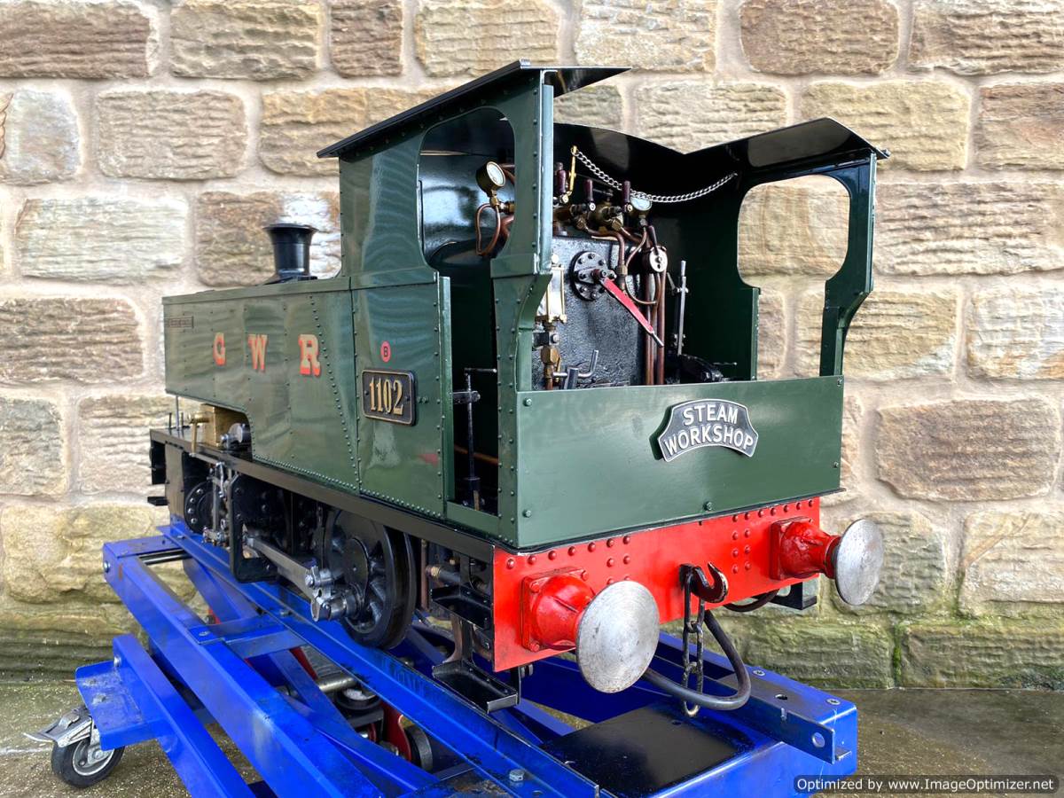 Here we have a 7 1/4" gauge GWR 11xx dock tank to the Dick Stocking's improved design based originally upon the well respected but slightly plain 'Midge' design by George Gentry. It's got the nicely shaped side tanks with all the tidy rivet detailing that Dick's improvements brought as well as all the other little aesthetic tweaks. It certainly looks like a GWR 11xx dock tank where a standard Midge looks a little 'inspired by' rather than accurate model.
