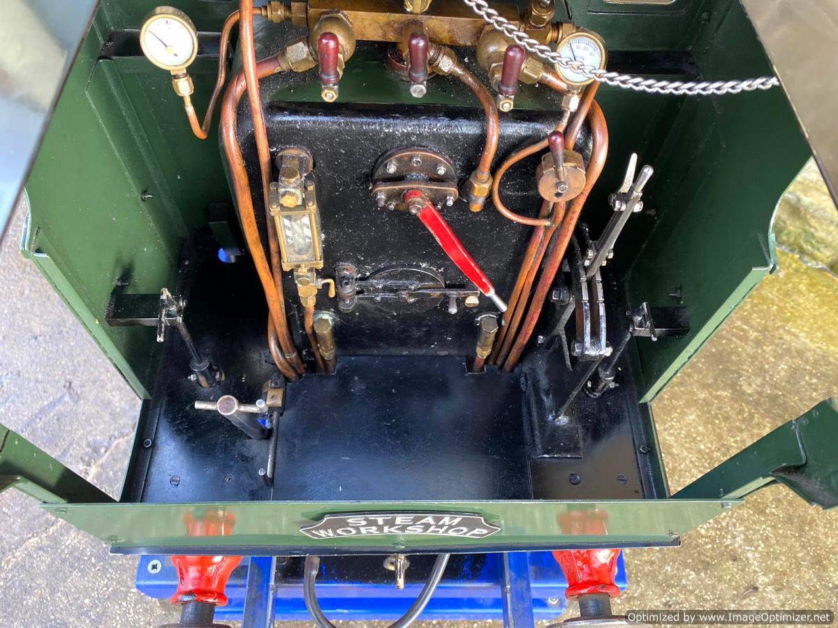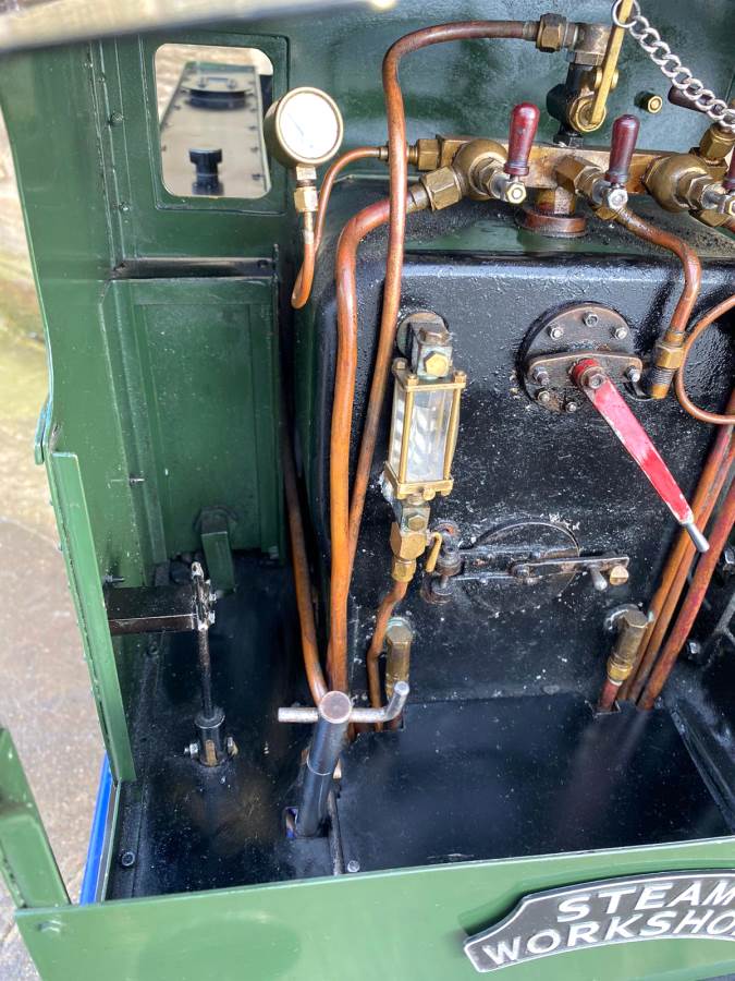 The copper boiler, which was professionally built in 2014 comes as always fully tested and certificated and the bottom end runs nicely as you'd expect. They are powerful little engines these, the cylinders are pretty large, the walschearts valve gear is a capable gear, and the 0-4-0 layout enables the weight of the big boiler and all that water to go exactly where you want it through the driving wheels.