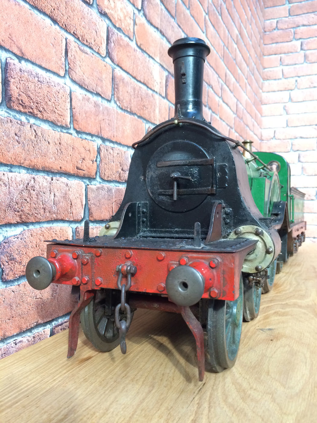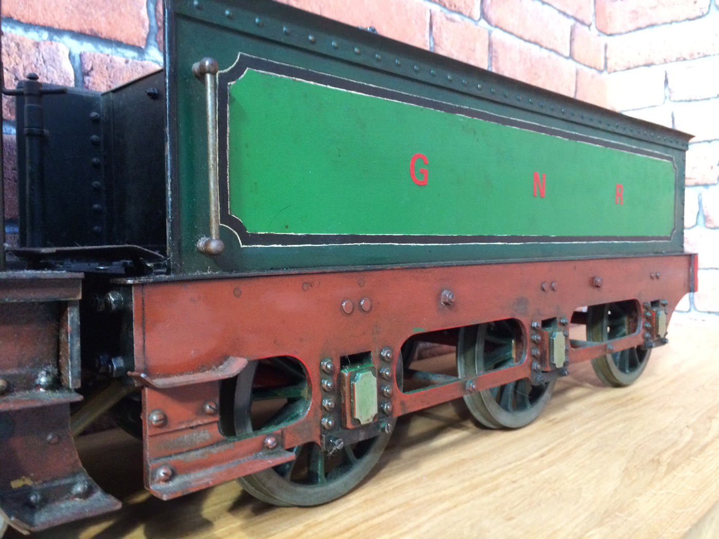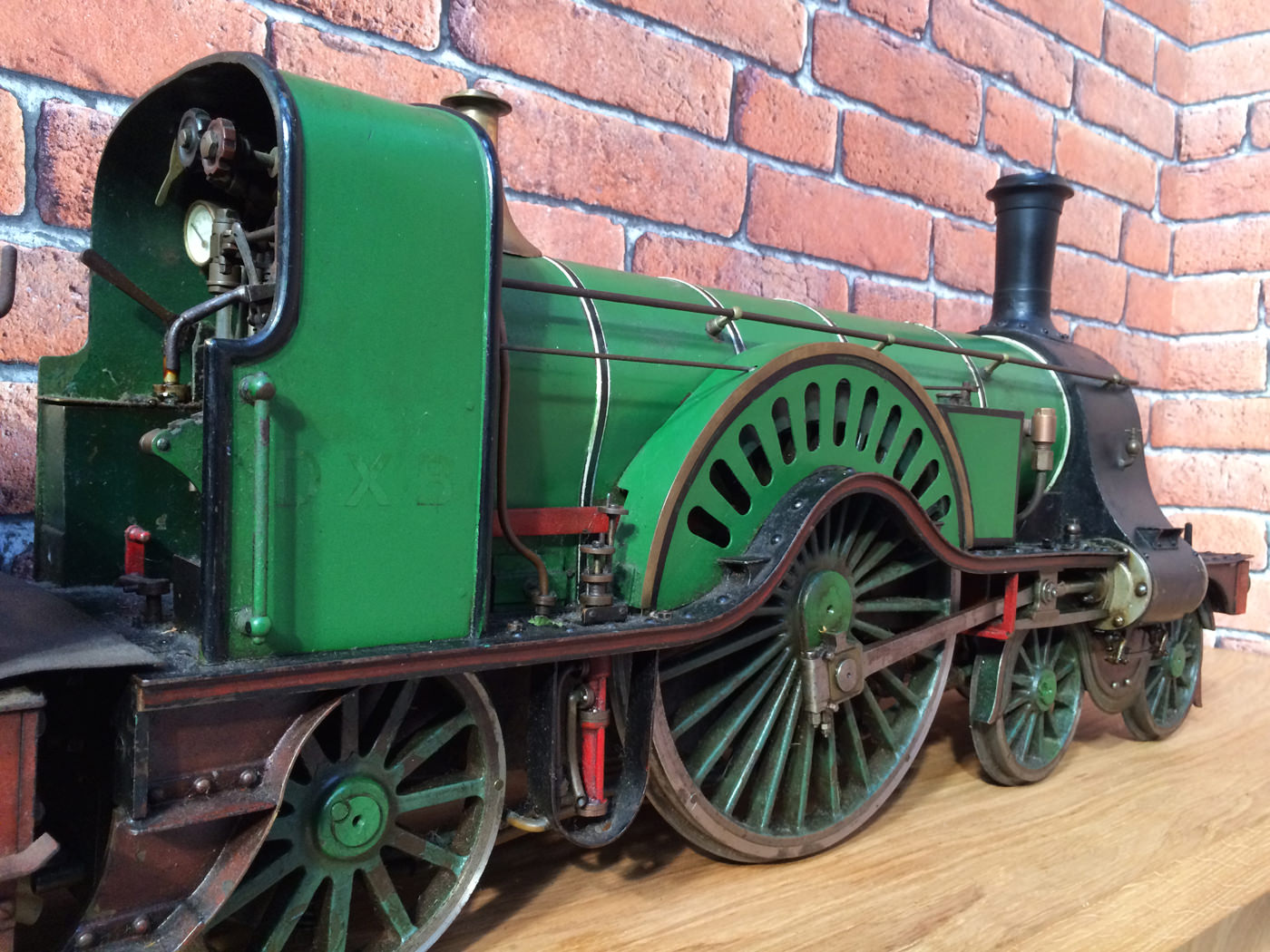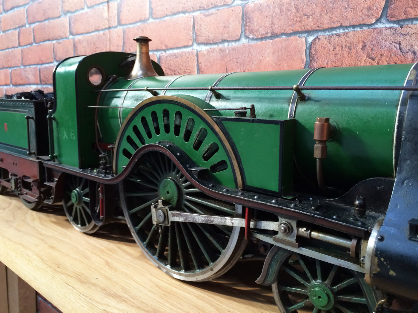 Here we have a rather nicely made and finished 5" GNR Stirling 8' Single. This is a particularly crisply machined locomotive, modeled after the first (and preserved) Stirling Single No. 1. (the only one with 11 splasher holes). It's coupled to the correct 1870 Stirling tender rather than the earlier Sturrock outside framed tender that is so often seen on models, due to the fact that the preserved loco has been paired with it since the 1930s.