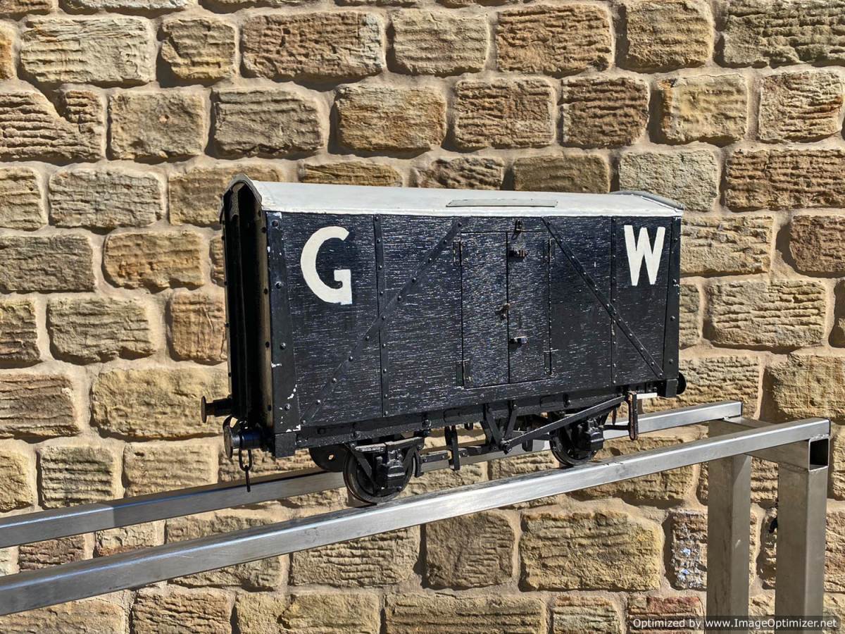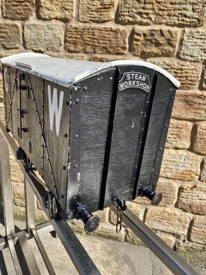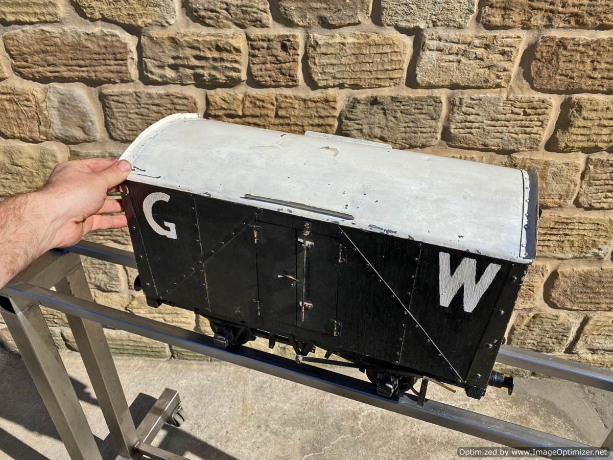 Here we have a 5" gauge Great Western parcels van. A little on the chunky side detail wise, so not quite up to the super detail level of a Doug Hewson or Dave Noble scale wagon, but certainly a nice little thing to have in your rake. As you can see the doors open up and there is a nice bit of detail in the chassis too. Steel wheels so an ideal basis for a load bearing driving truck if you fancy a little tweaking!