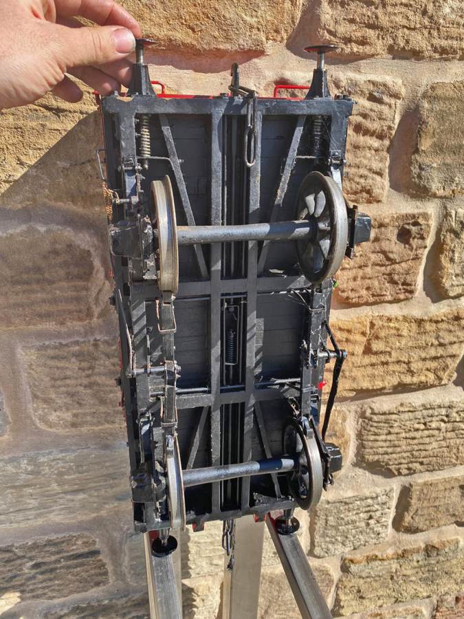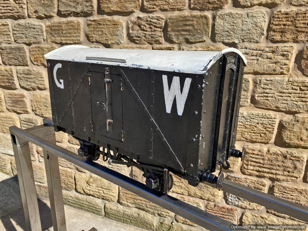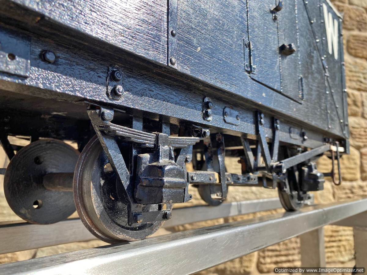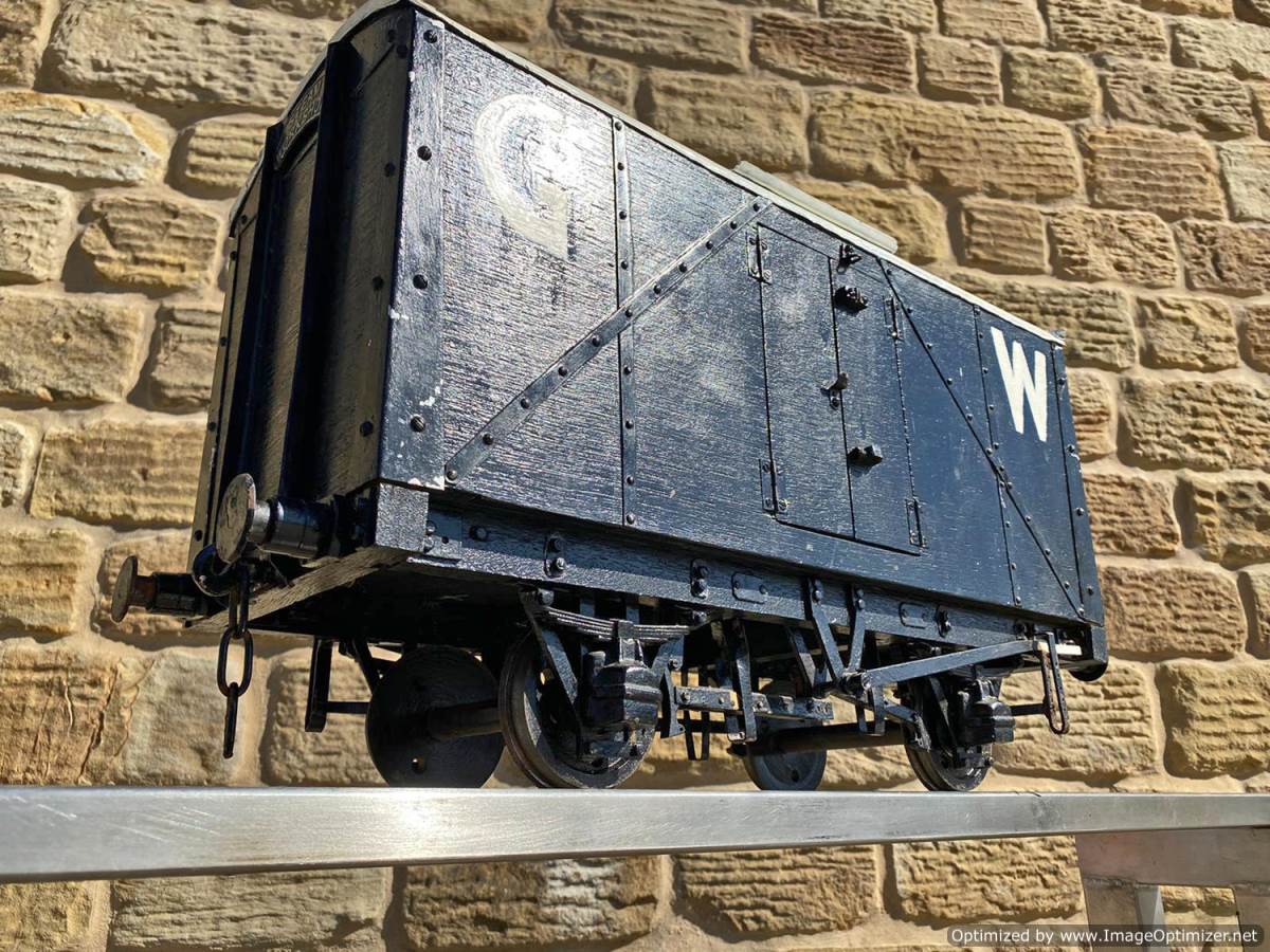 Here we have a 5" gauge Great Western parcels van. A little on the chunky side detail wise, so not quite up to the super detail level of a Doug Hewson or Dave Noble scale wagon, but certainly a nice little thing to have in your rake. As you can see the doors open up and there is a nice bit of detail in the chassis too. Steel wheels so an ideal basis for a load bearing driving truck if you fancy a little tweaking!
