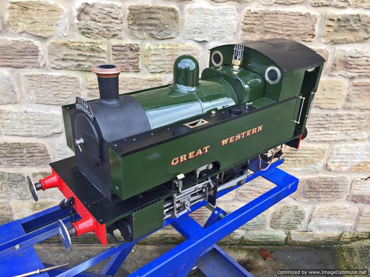 Here we have a chunky little fella!  A 7 1/4" gauge GWR 11xx dock tank made to the well proven 'Midge' design.  A tidy little loco, with crisply machined motion and a good silver soldered copper boiler.  This model has spent the last 20 odd years at a private garden railway where it was enjoyed up and down it's short straight length of track.  The engine has been out of use, greased up and stored for at lease the last 10 years as the family moved on to other hobbies.  We've given the loco a mechanical re-commission and a 'back to bare metal' fresh coat of paint on the bodywork to freshen it all up for a new lease of life.  Detail wise the engine is a little on the plain and simple side, but it's a very solidly made thing and what it lacks in detail it more than makes up for in mechanical quality.