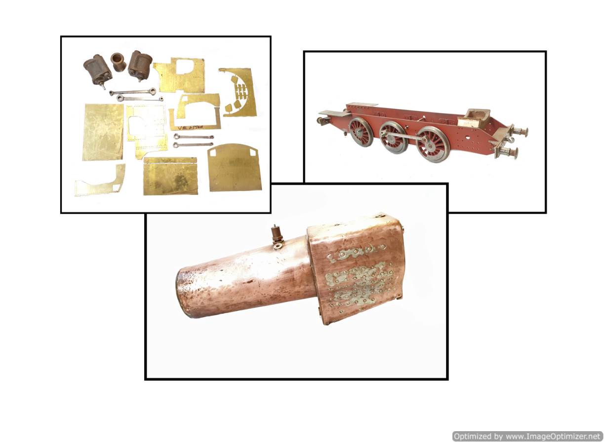 There is the rolling chassis too as you can see, the cylinder's the coupling rods and an engineer's laser cab kit. An early stage build but a clean and neatly machined start with a solidly made and viable boiler,.... which of course is where the bulk of the value lies.