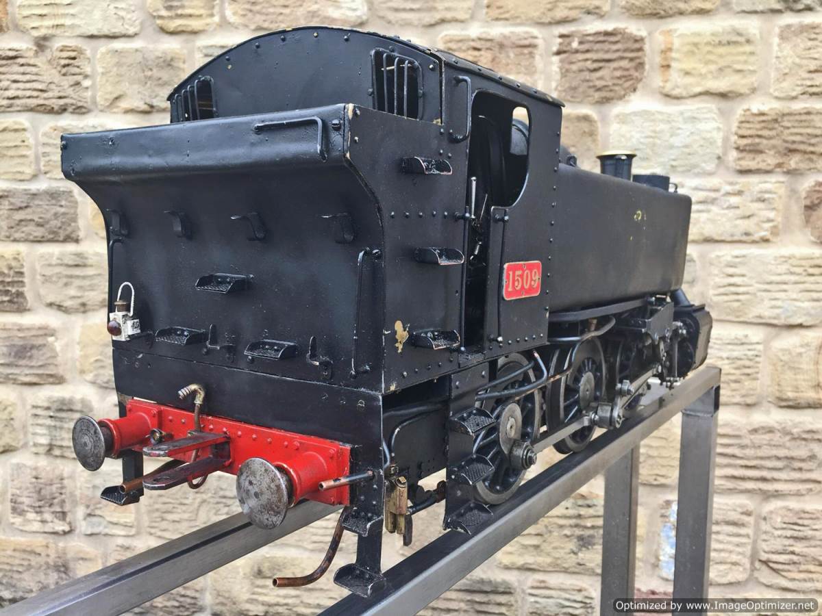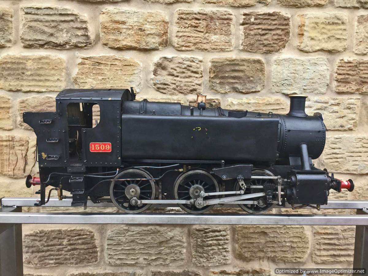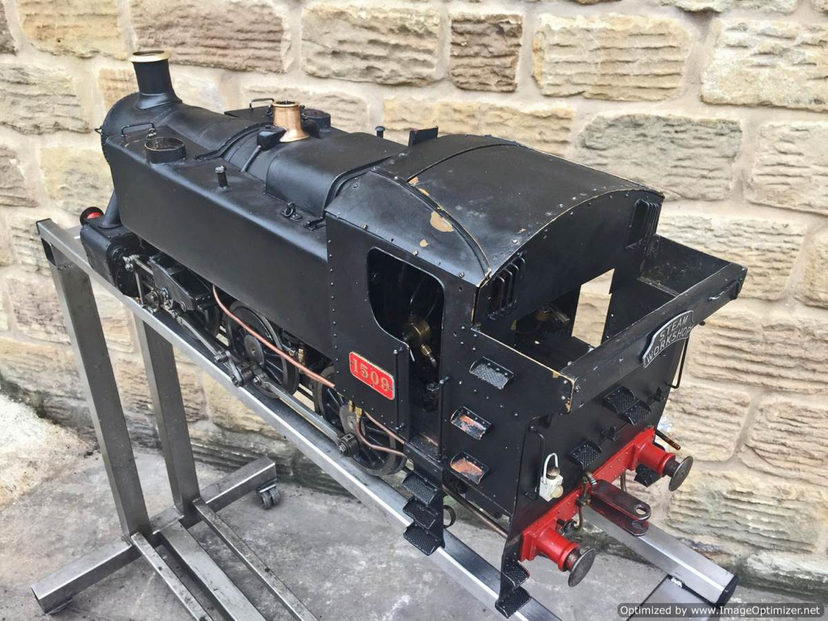 Here we have a 5" gauge GWR 15xx to the well respected and powerful Martin Evans 'Speedy' design. This is a slightly scruffy looking loco, but once you look past the tatty paint and slightly plain platework you notice that it's actually a very well detailed and nicely engineered model, particularly on the bottom end. Things like the crosshead are particularly well detailed, an area that most Speedies fall short on. The valve gear is well machined and doesn't show significant signs of excessive wear,..... she runs nicely on air as well.