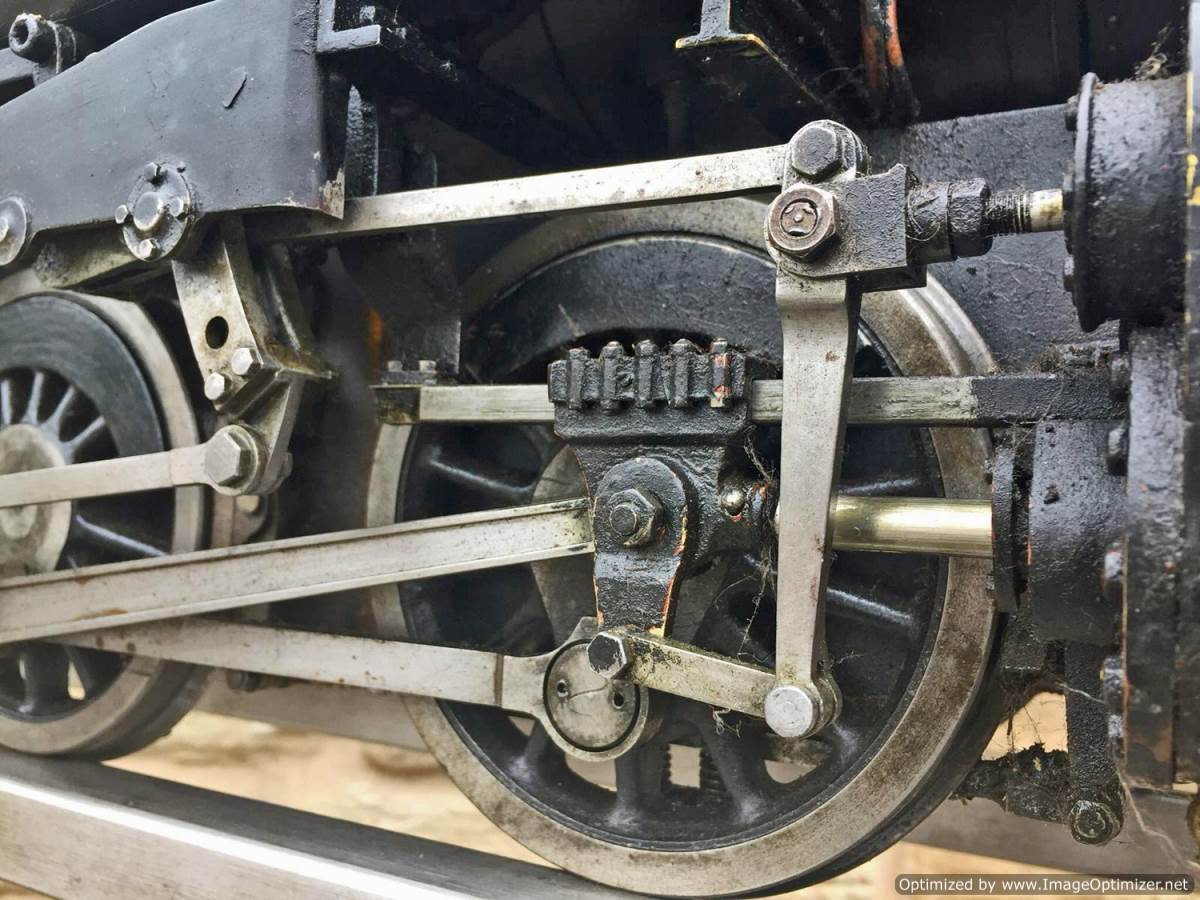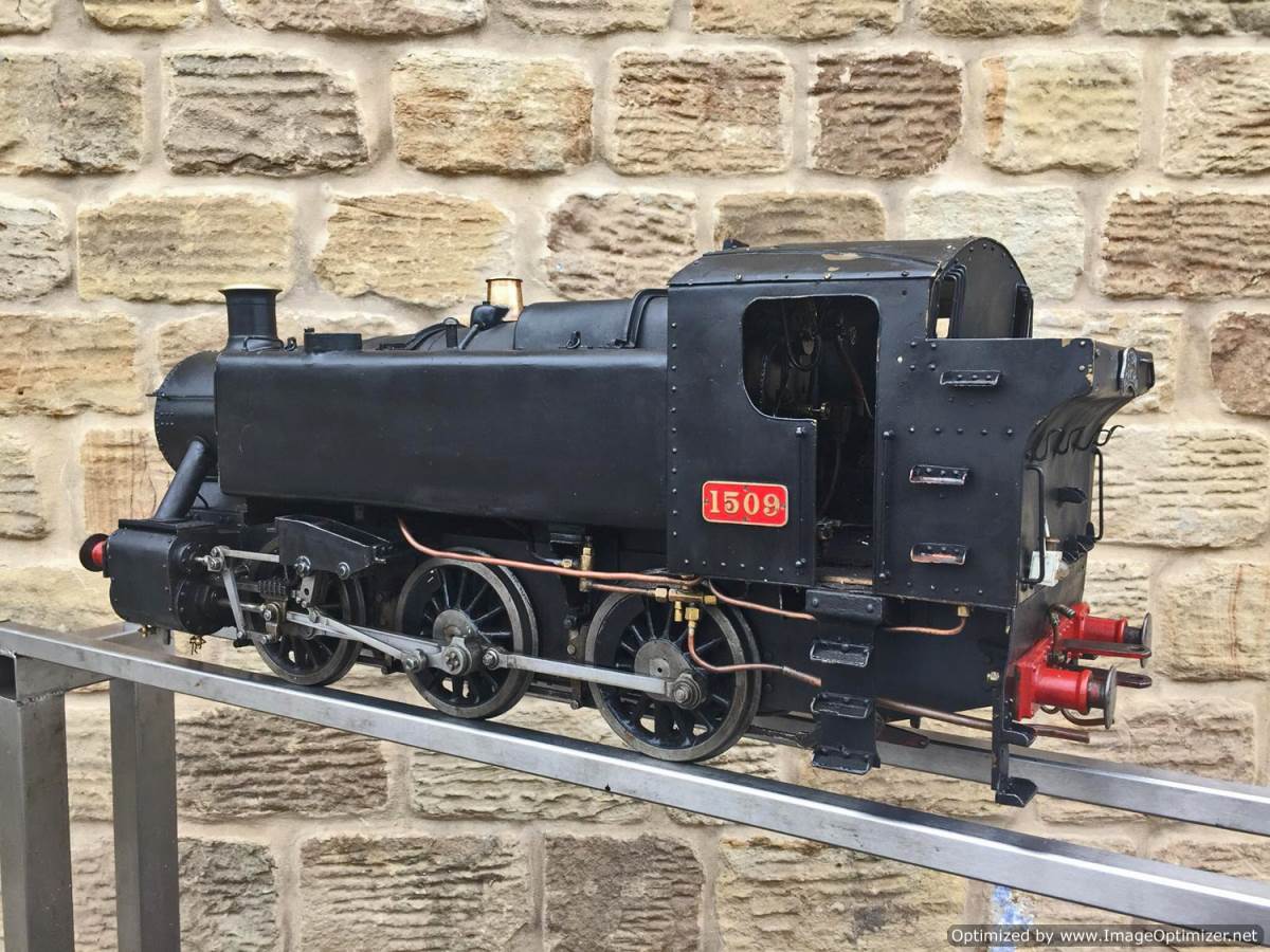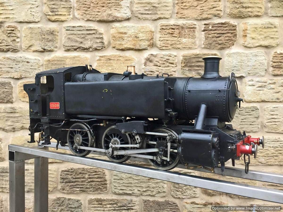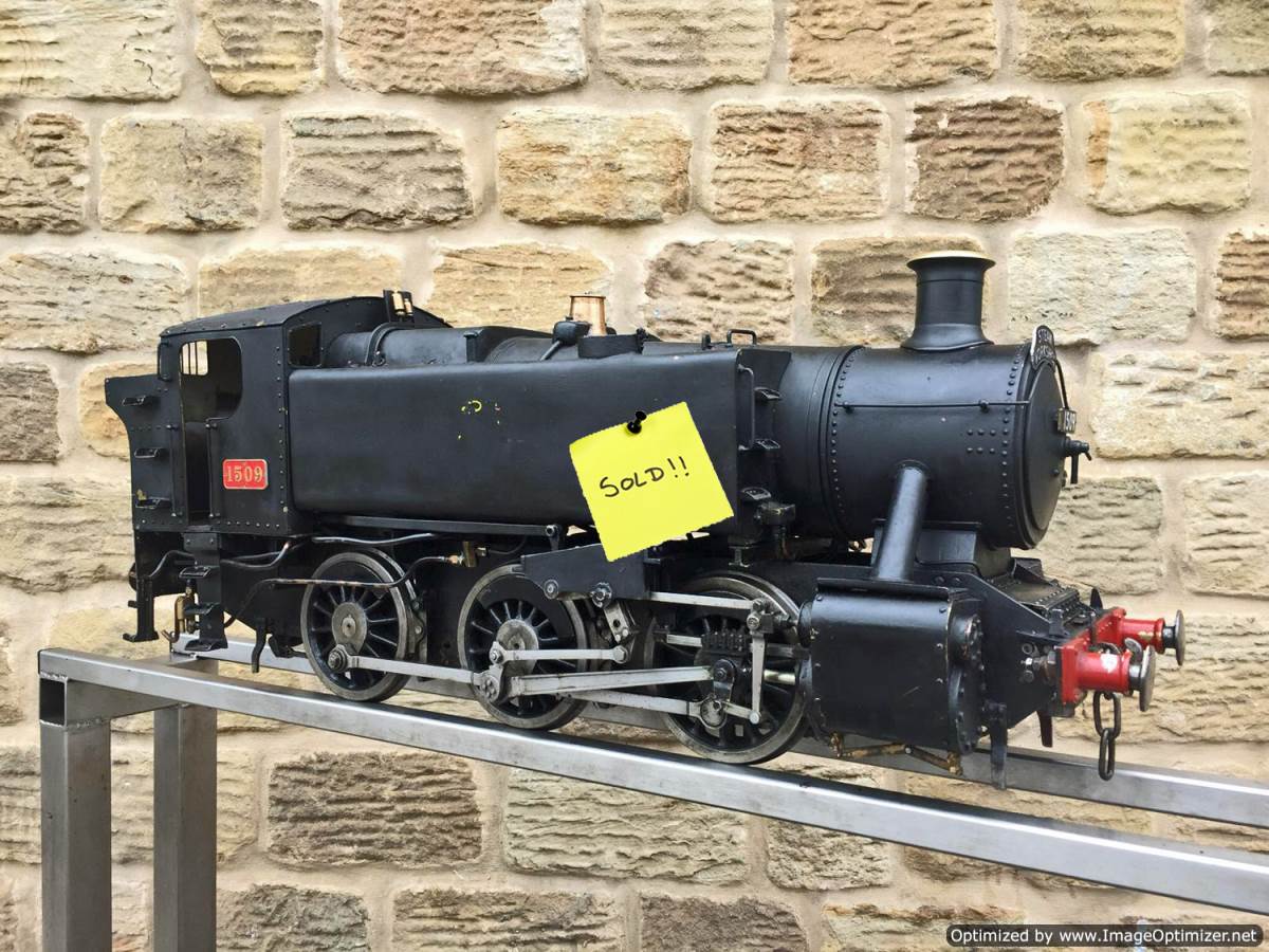 Here we have a 5" gauge GWR 15xx to the well respected and powerful Martin Evans 'Speedy' design. This is a slightly scruffy looking loco, but once you look past the tatty paint and slightly plain platework you notice that it's actually a very well detailed and nicely engineered model, particularly on the bottom end. Things like the crosshead are particularly well detailed, an area that most Speedies fall short on. The valve gear is well machined and doesn't show significant signs of excessive wear,..... she runs nicely on air as well.