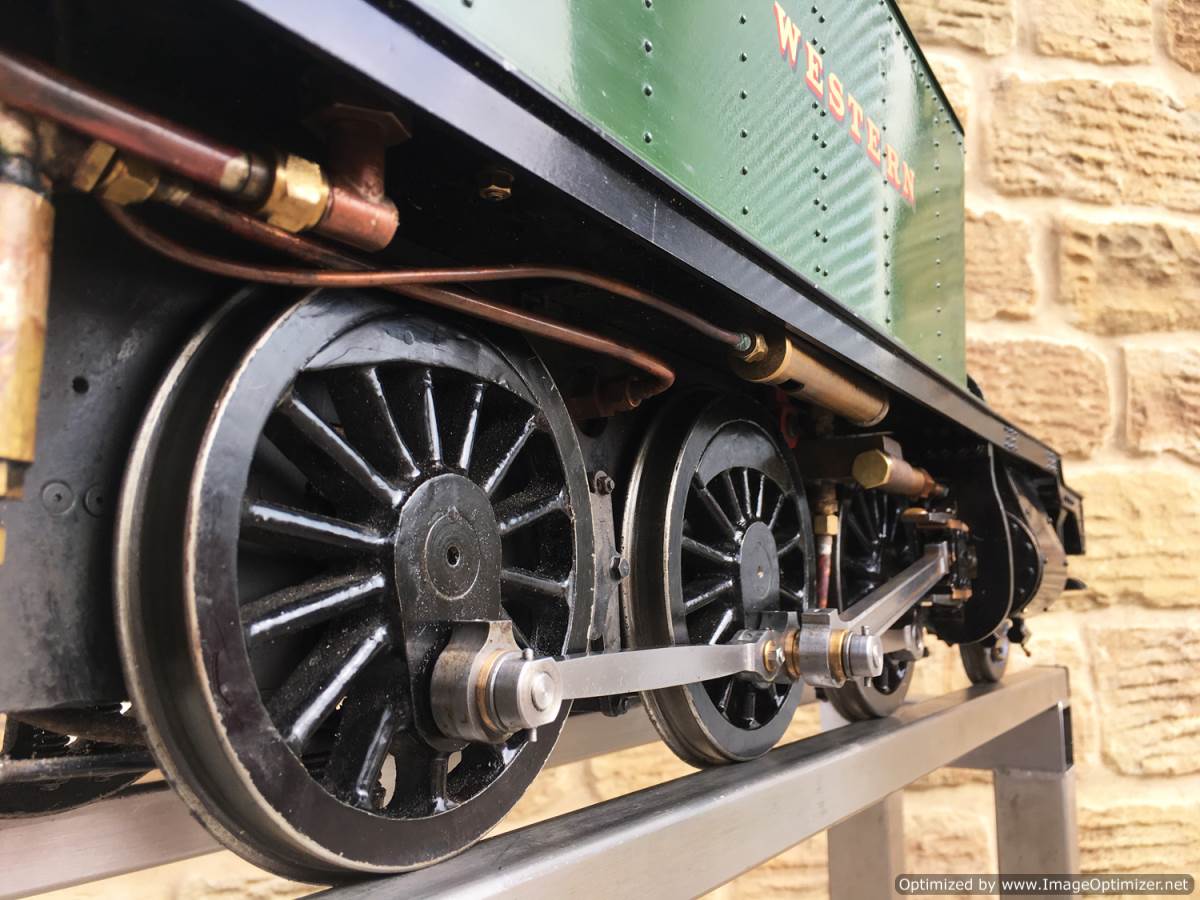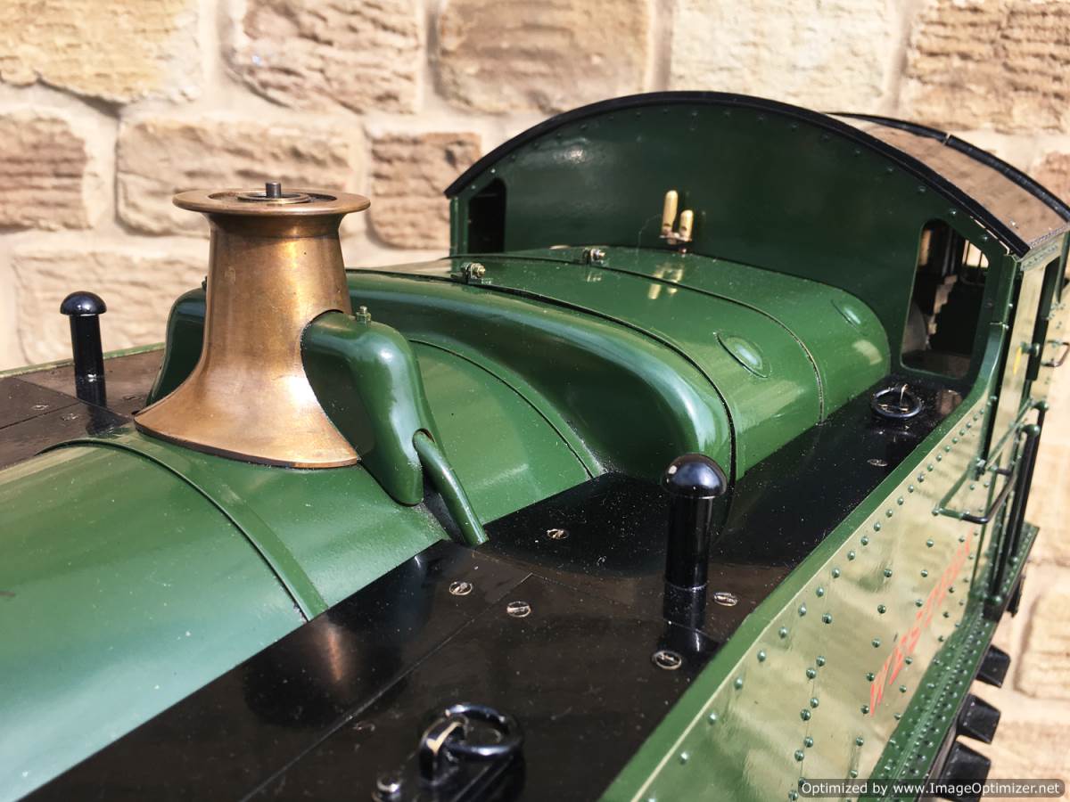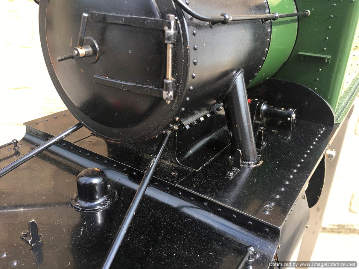 There is an injector fitted of course, as well as a crosshead pump in typical GWR fashion with footplate controlled bypass valve. A hand pump has also been tucked behind the cab footstep for ease of use. It's brass and therefore visible in the photos, but I suspect that we will treat it to a touch of satin black before the loco leaves us so that you can't see it as much. Lubrication is displacement, with a reservoir under the cab footplate and a sight feed with control valve on the footplate. The boiler is as nicely made as the model, copper and silver soldered, and as with all our models can come with a fresh 4 year hydraulic test as well as a fresh annual steam test so she is read to hit the track and run. It's a lovely model this, in pretty much as new condition. She comes with a neat carry cradle too.