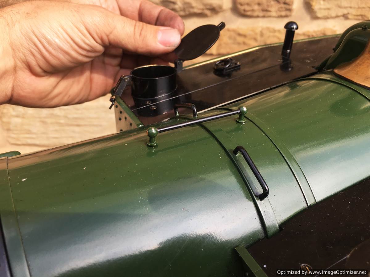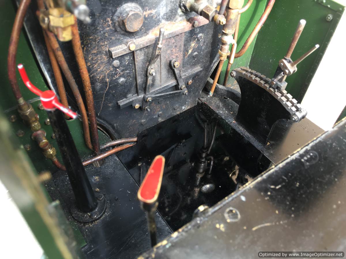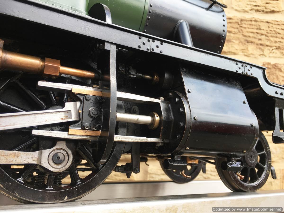 There is an injector fitted of course, as well as a crosshead pump in typical GWR fashion with footplate controlled bypass valve. A hand pump has also been tucked behind the cab footstep for ease of use. It's brass and therefore visible in the photos, but I suspect that we will treat it to a touch of satin black before the loco leaves us so that you can't see it as much. Lubrication is displacement, with a reservoir under the cab footplate and a sight feed with control valve on the footplate. The boiler is as nicely made as the model, copper and silver soldered, and as with all our models can come with a fresh 4 year hydraulic test as well as a fresh annual steam test so she is read to hit the track and run. It's a lovely model this, in pretty much as new condition. She comes with a neat carry cradle too.