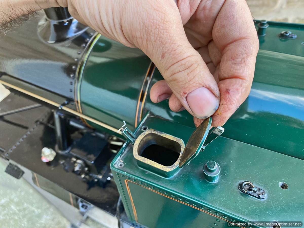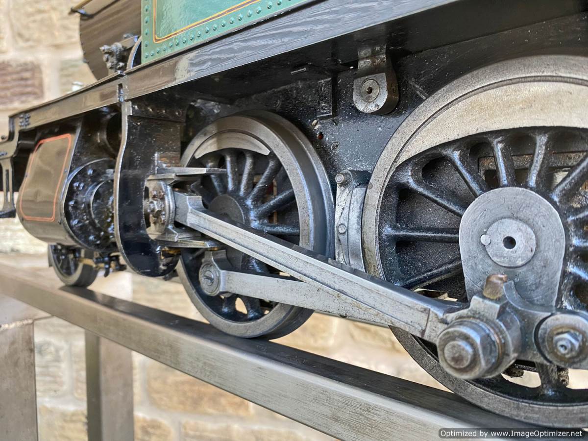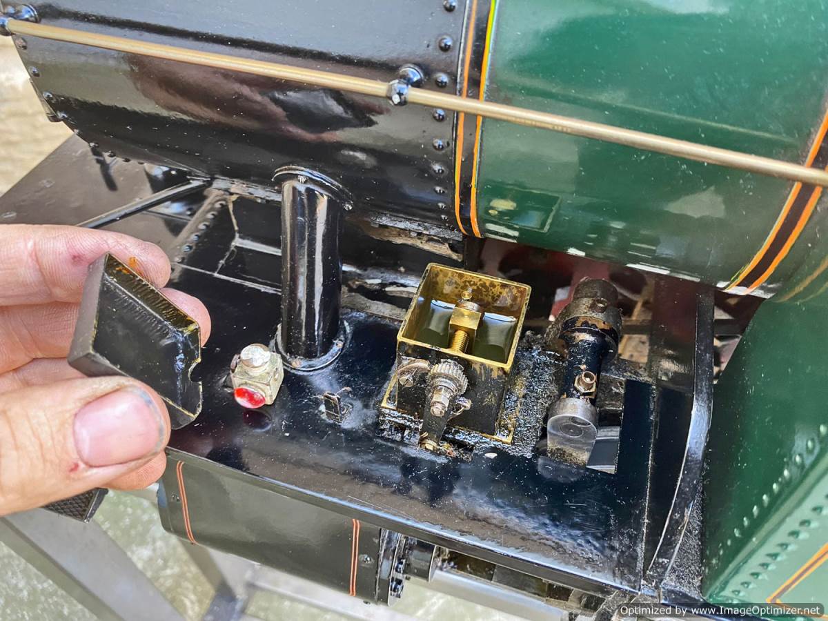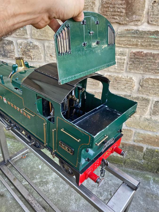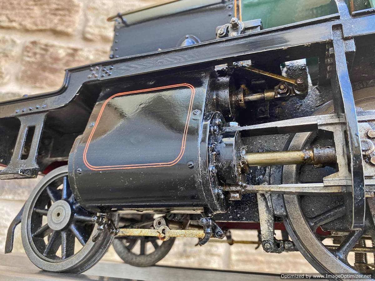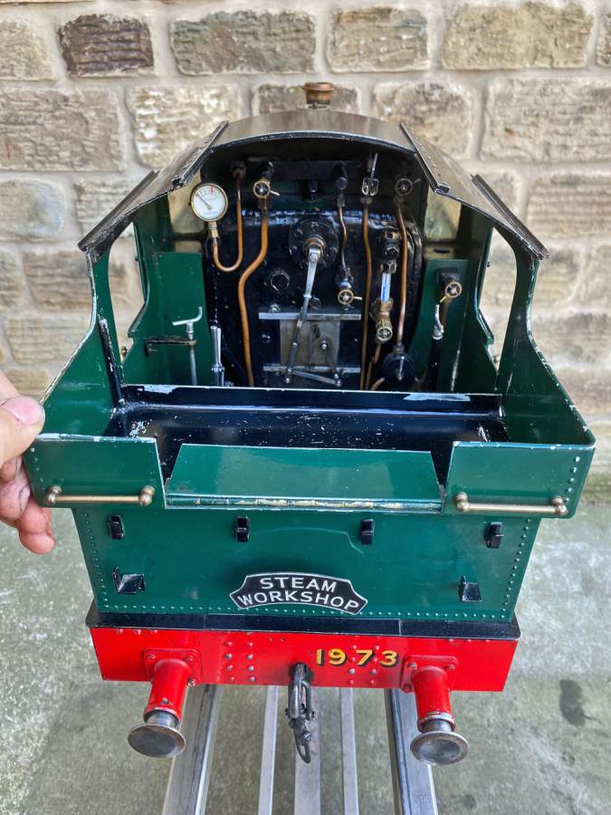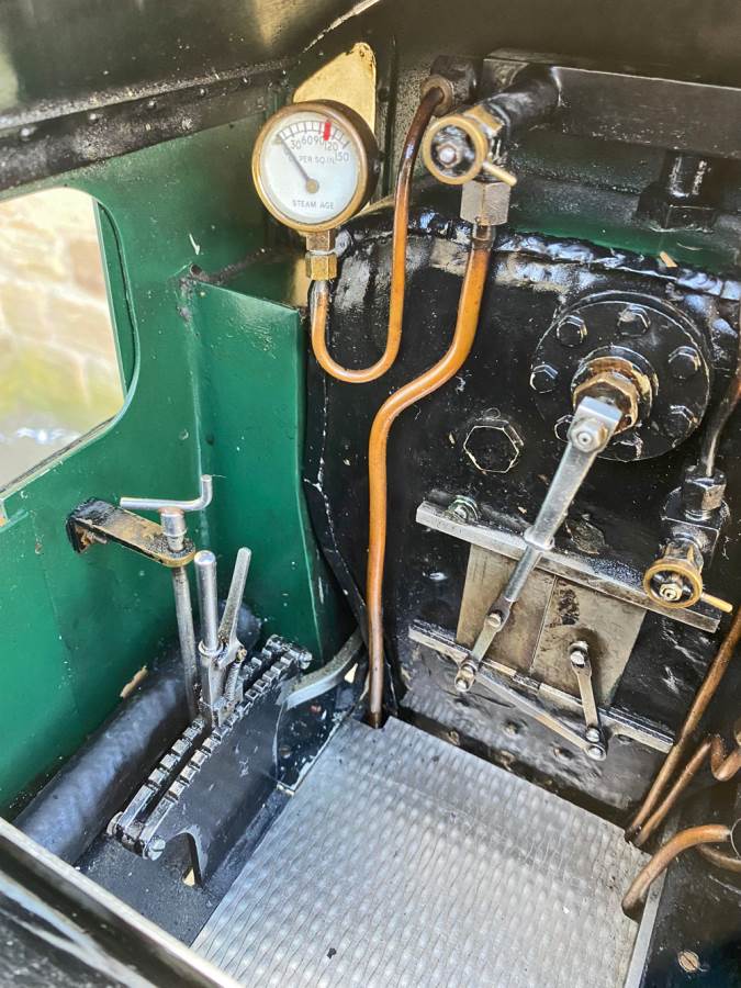 The silver soldered copper boiler can of course come with a full fresh hydraulic boiler test as well as a fresh steam test so she's ready to run. Lubrication is mechanical with the reservoir easy to get to on the running boards. Water is fed through an injector, as well as a crosshead pump as per the prototype with a bypass valve on the back of the tank on the footplate, and of course there's also a hand pump in the tank as per the photos. Although the paint is definitely showing a degree of 'patina', it's still all nicely tight and has the feel of a model that will run beautifully.