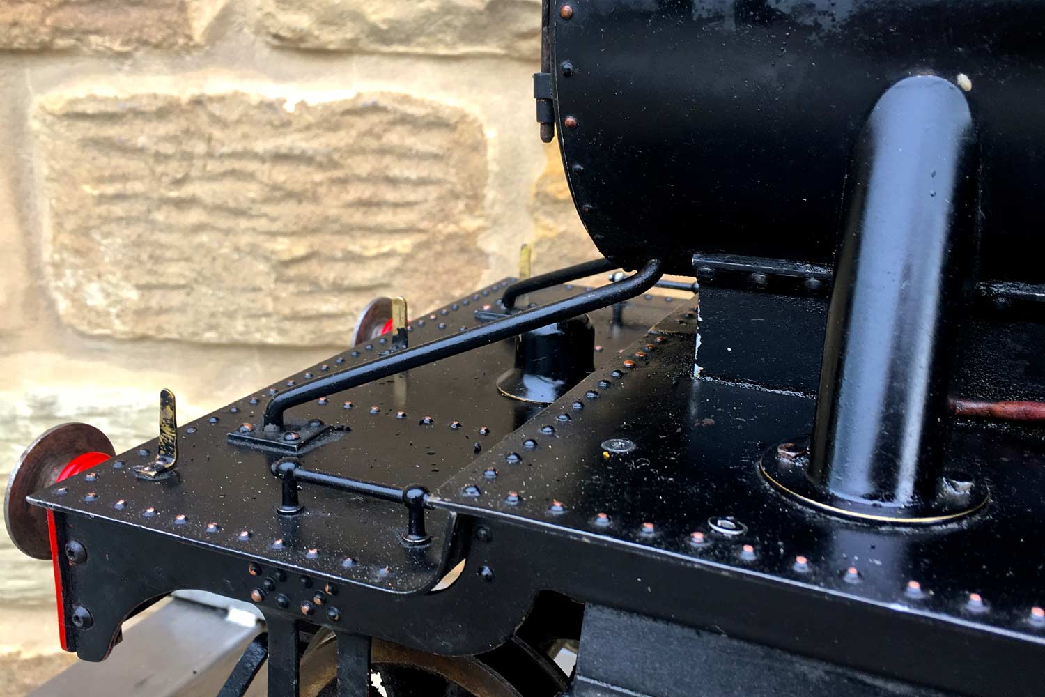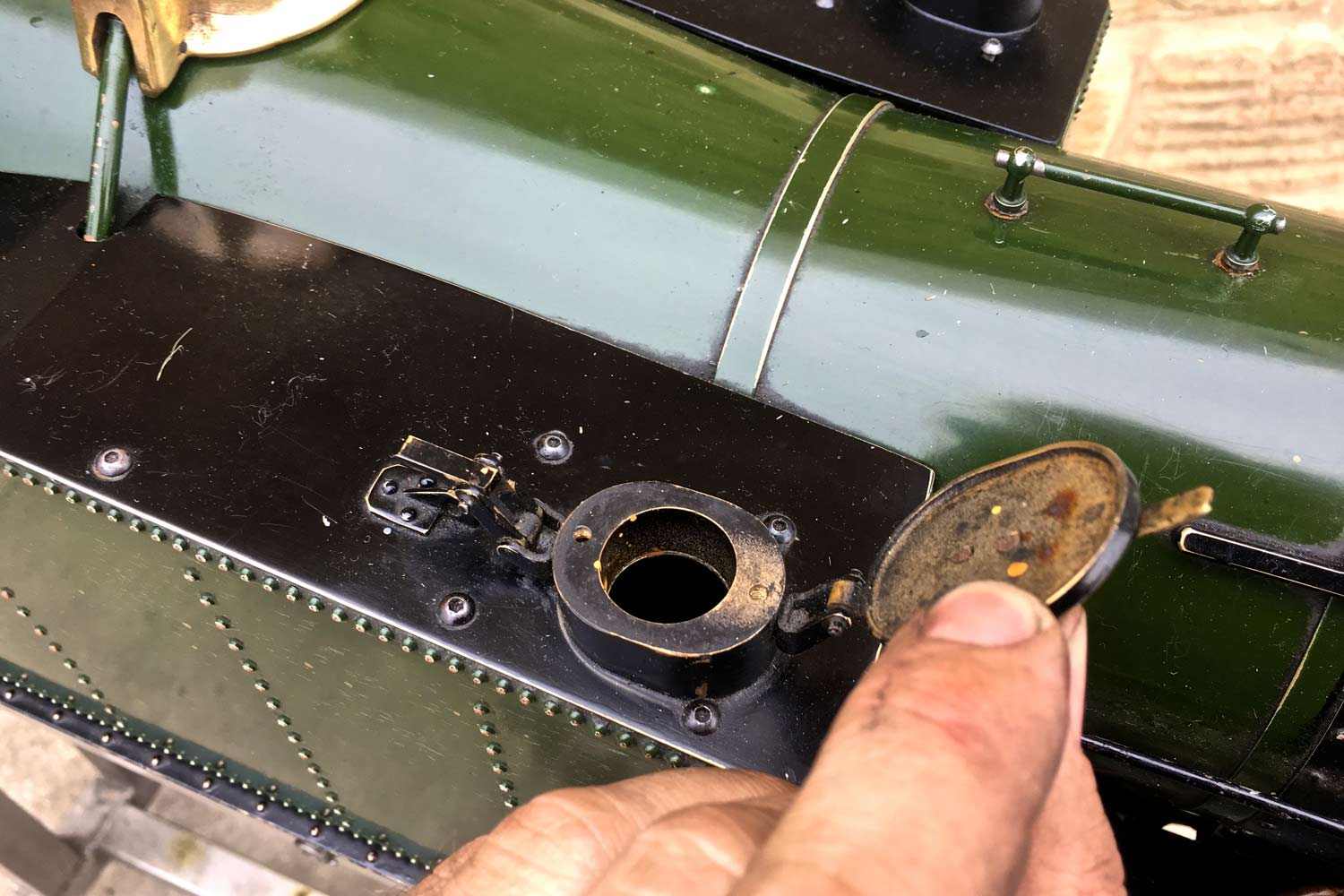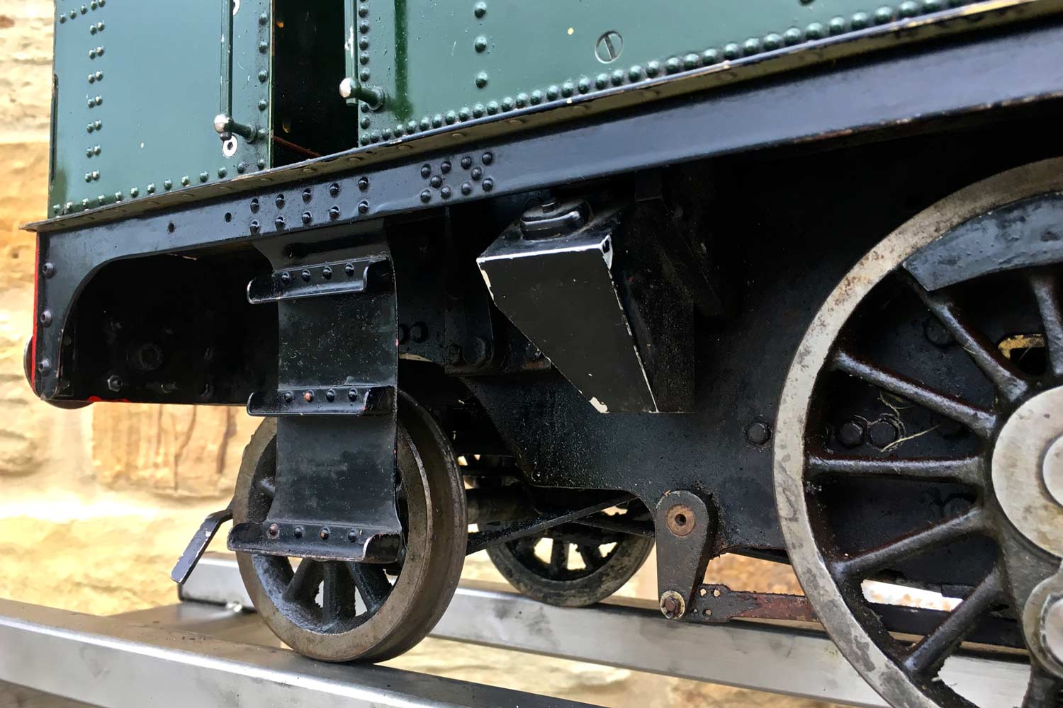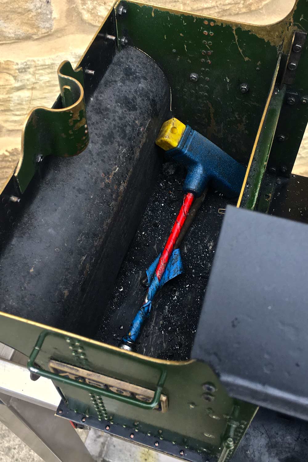 Whilst the paintwork definitely has the patina of a working loco,…. it has it’s fair share of shovel scratches and scuffs, the general appearance is purposeful and workmanlike rather than scruffy. It certainly doesn’t need a re-paint just yet! There is an injector, a hand pump in the tank and a crosshead water pump in the usual prototypical GWR location, with footplate mounted bypass valve. Draincocks are footplate operated, and lubrication on this one is via a large displacement reservoir under the footplate floor and regulateable sight feed glass in the cab.