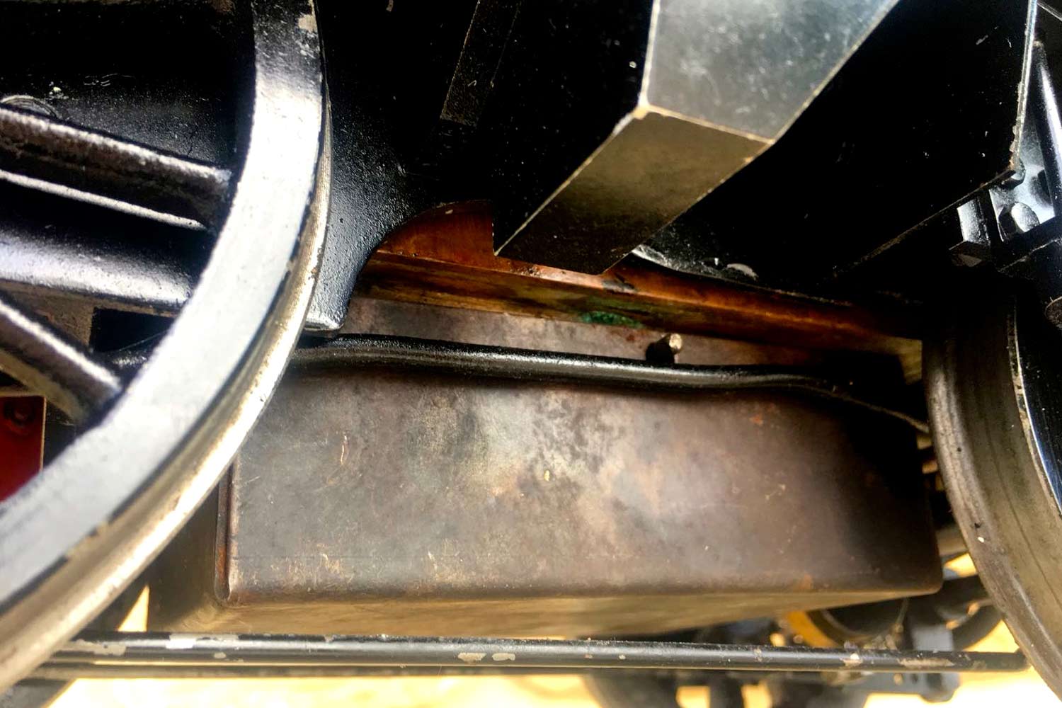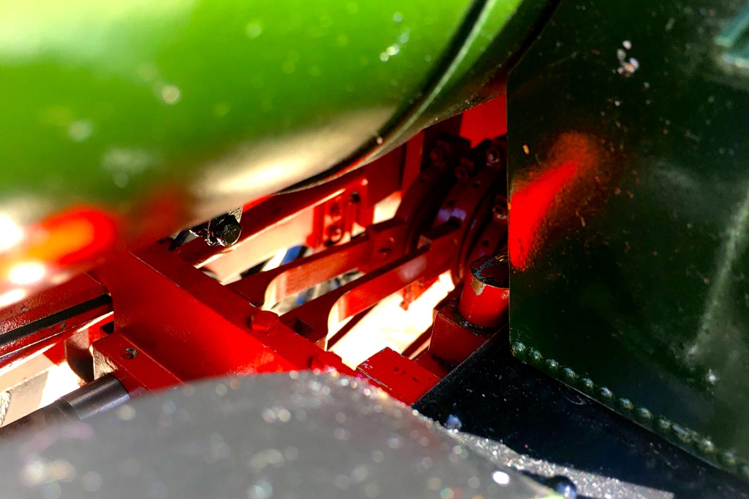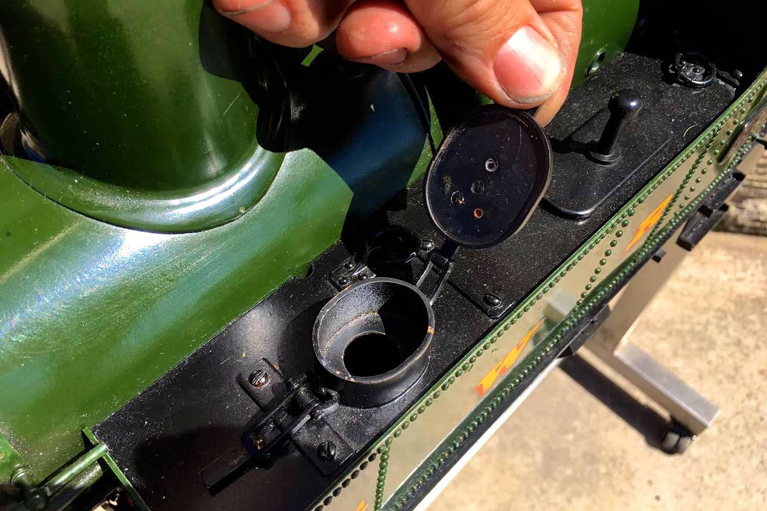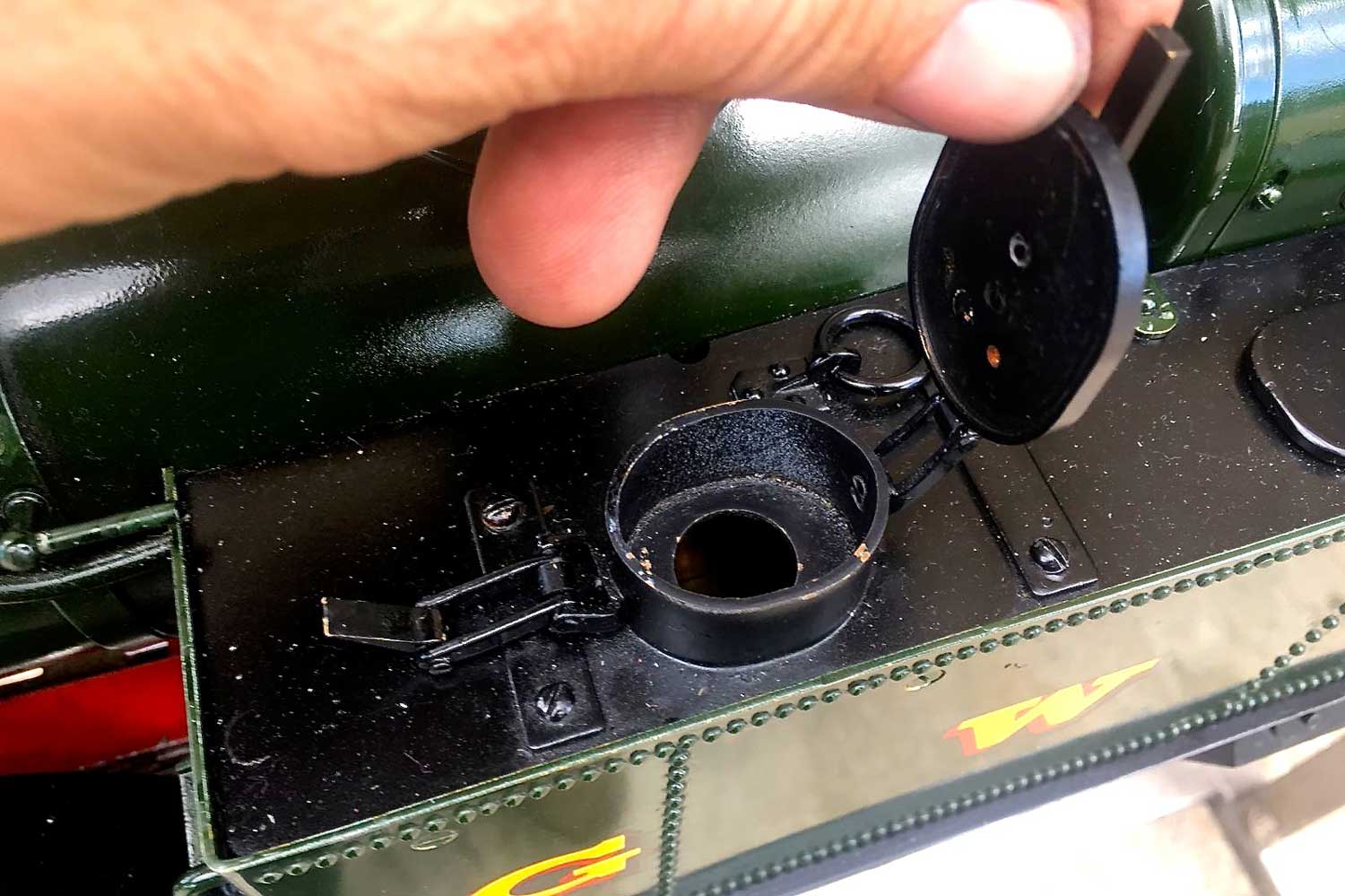 The boiler is of course professionally made, silver soldered copper and has very few steamings under it's belt. Lubrication is mechanical and hidden in the bunker as per the kit design. There is an injector, a mechanical pump with bypass valve on the footplate, and a hand pump in the tank. There are a few nice extra detailing bits, the addition of washout plugs on the boiler and firebox is a nice touch, as is the modification of the screw reverser to be actually in essence a lever one in disguise. This is a nice little GWR 14xx that ought to give you lots of pleasure trundling round your track.