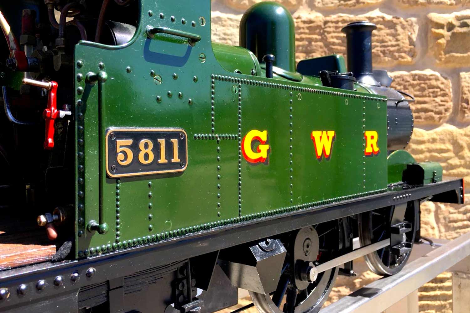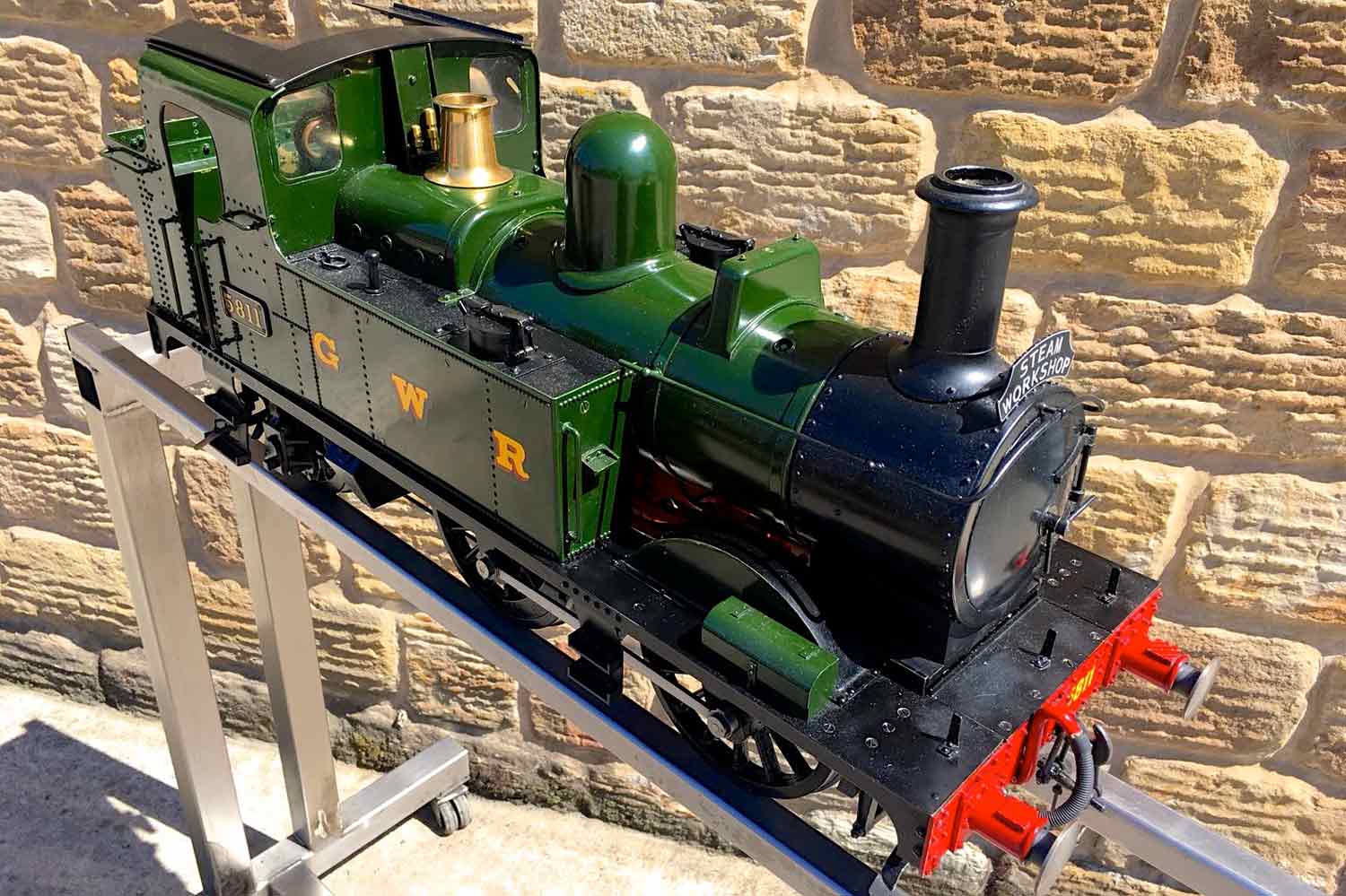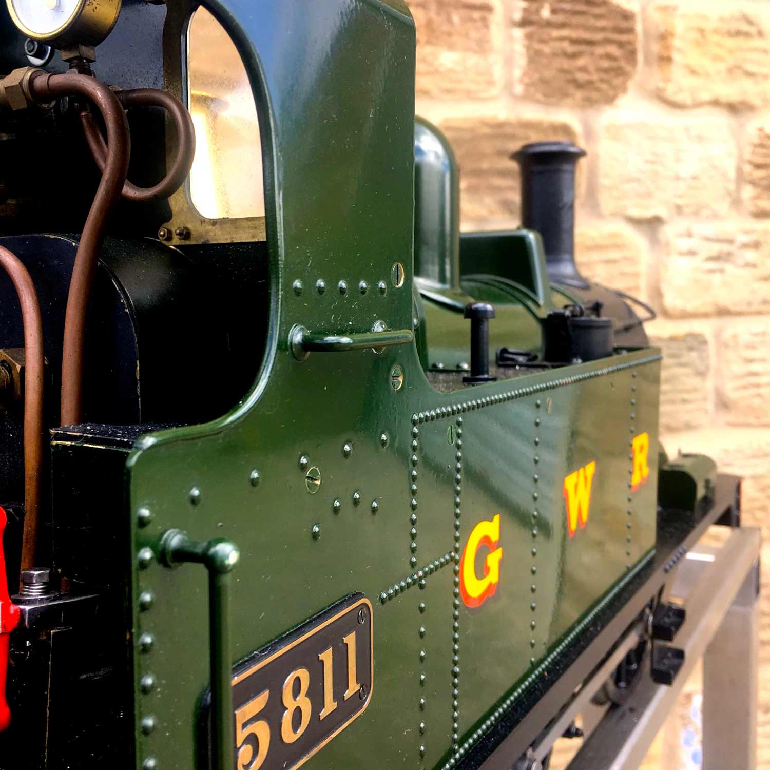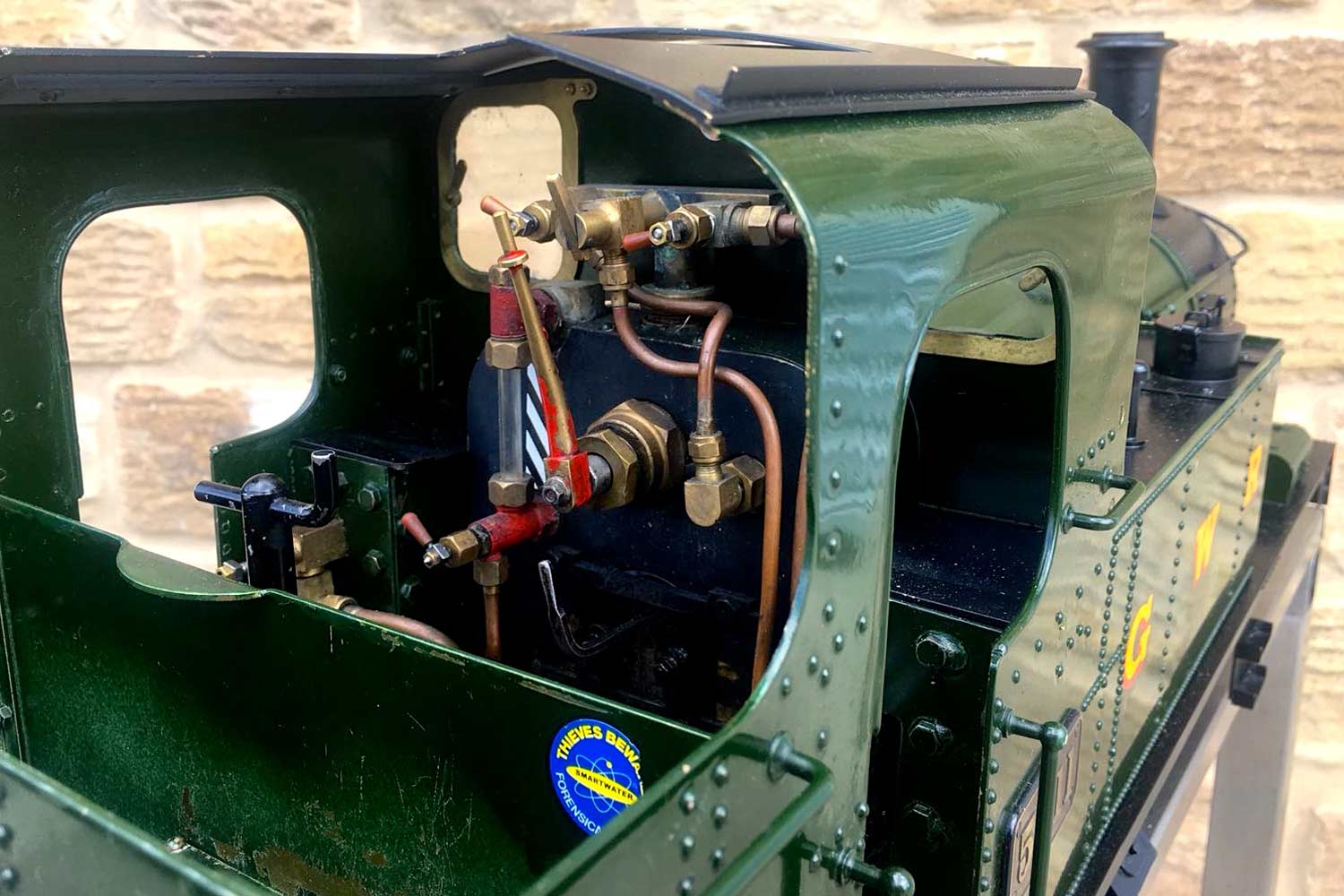 Here we have another rather nicely presented 5" gauge GWR 14xx. Built from a Winson kit in 2000, finished in 2002. We sold this a year or so ago as a brand new and untested model, so although the boiler and kit dates from 2002, the model was still brand new and unsteamed last year. Since then she's been treated by her new owner to a visit to JD Miniature Engineering for some mechanical tweaks and refinements, as well as the addition of a bit of lead to the areas that matter, so that now she is fully sorted and ready to play. She's been run a few times, and successfully since, but a bigger engine came up that tickled the owner's fancy, so she's come back to us to be offered for sale again, but this time, ready to play.