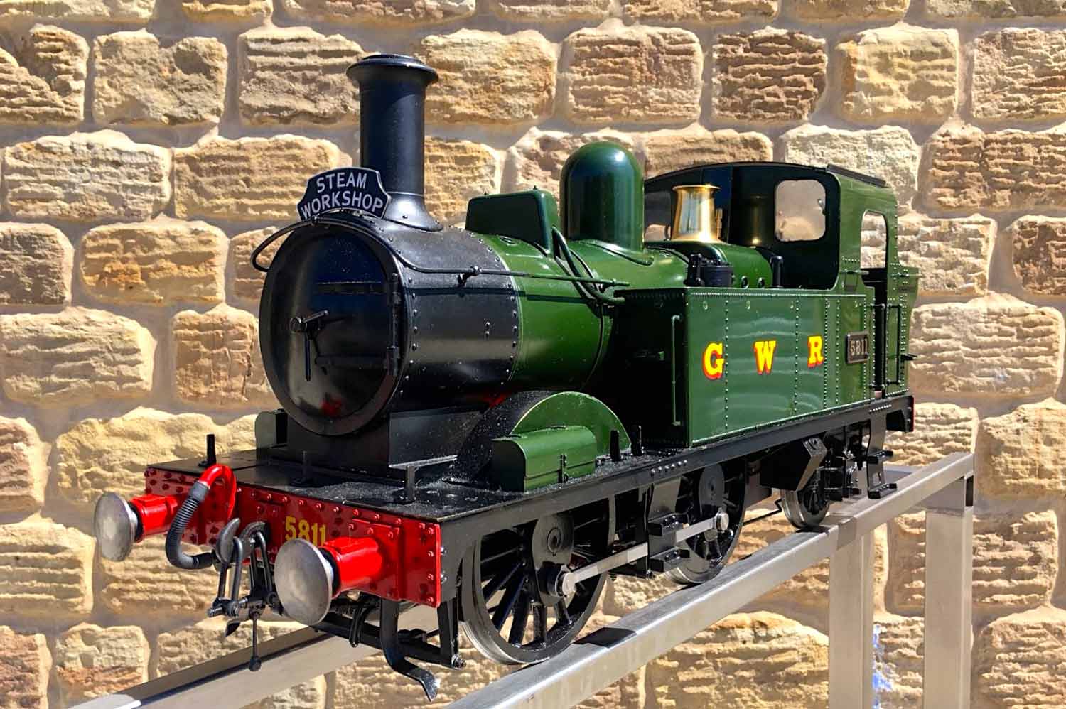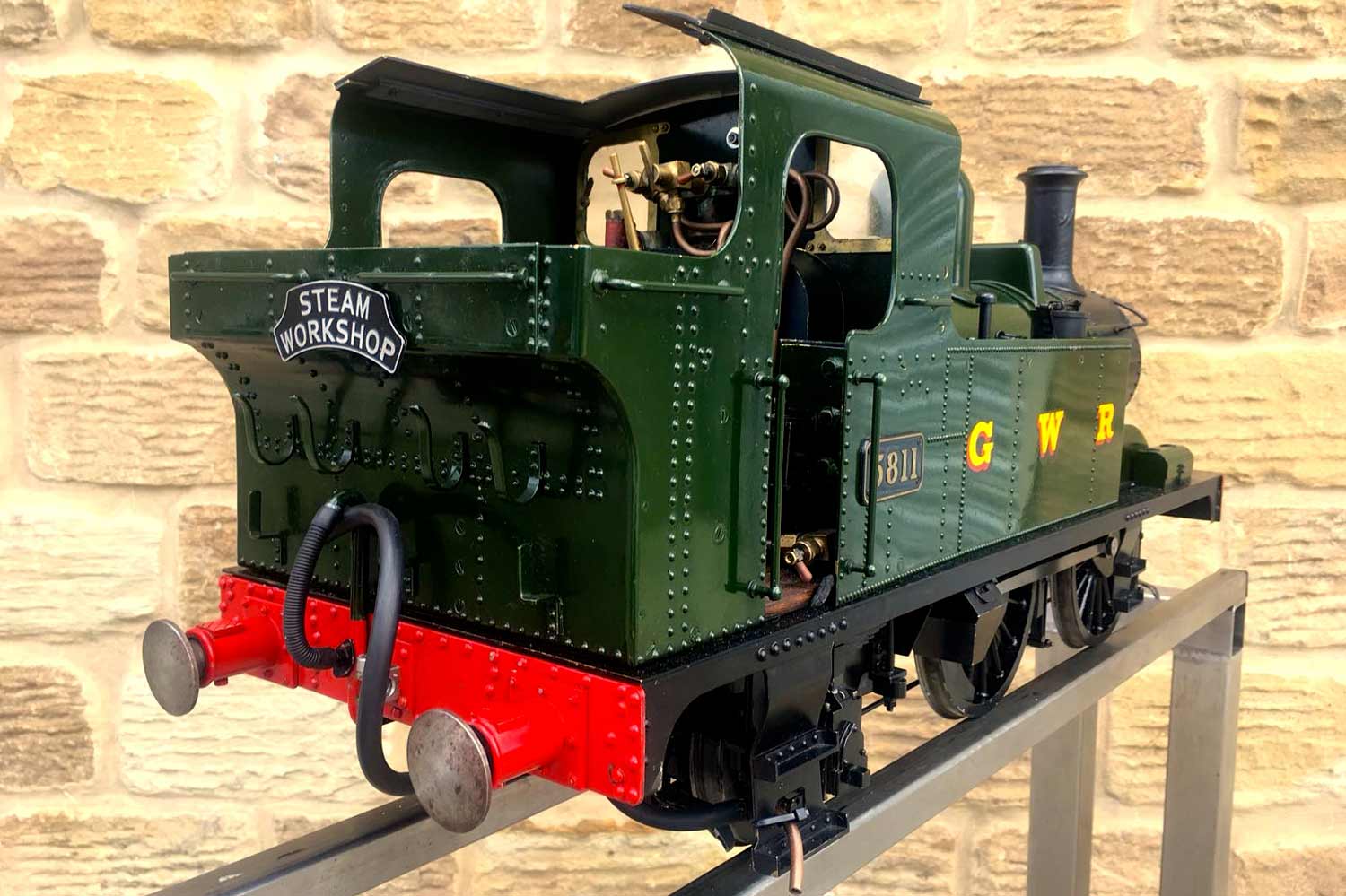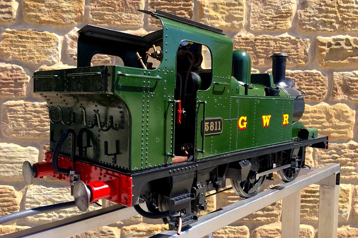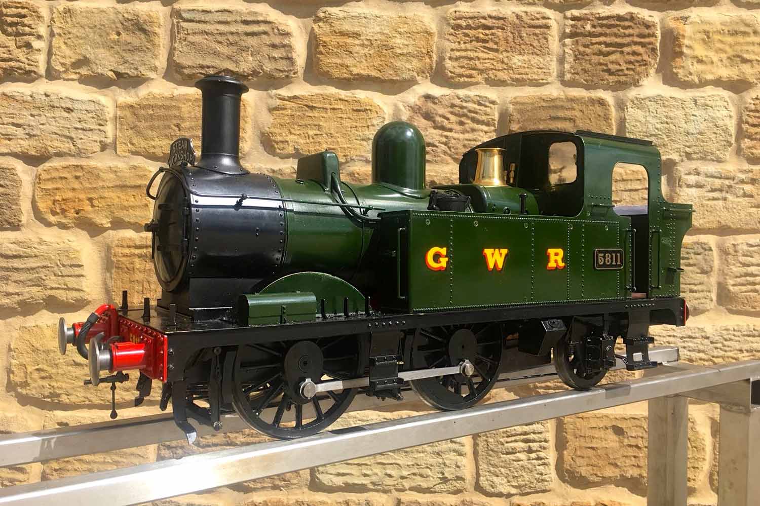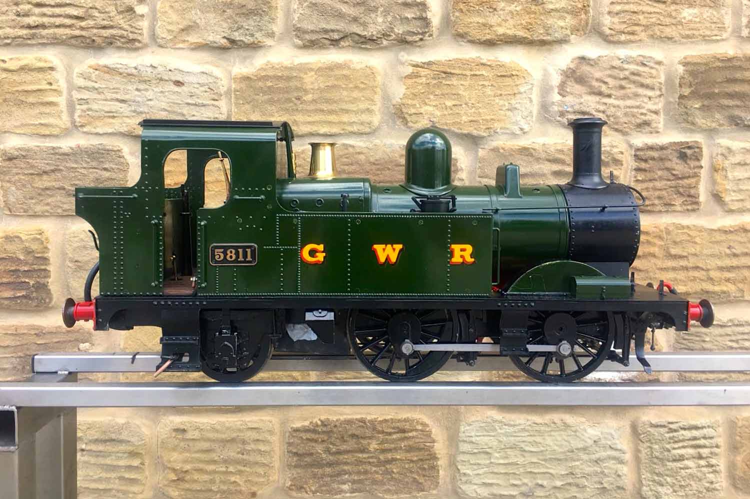 Here we have another rather nicely presented 5" gauge GWR 14xx. Built from a Winson kit in 2000, finished in 2002. We sold this a year or so ago as a brand new and untested model, so although the boiler and kit dates from 2002, the model was still brand new and unsteamed last year. Since then she's been treated by her new owner to a visit to JD Miniature Engineering for some mechanical tweaks and refinements, as well as the addition of a bit of lead to the areas that matter, so that now she is fully sorted and ready to play. She's been run a few times, and successfully since, but a bigger engine came up that tickled the owner's fancy, so she's come back to us to be offered for sale again, but this time, ready to play.