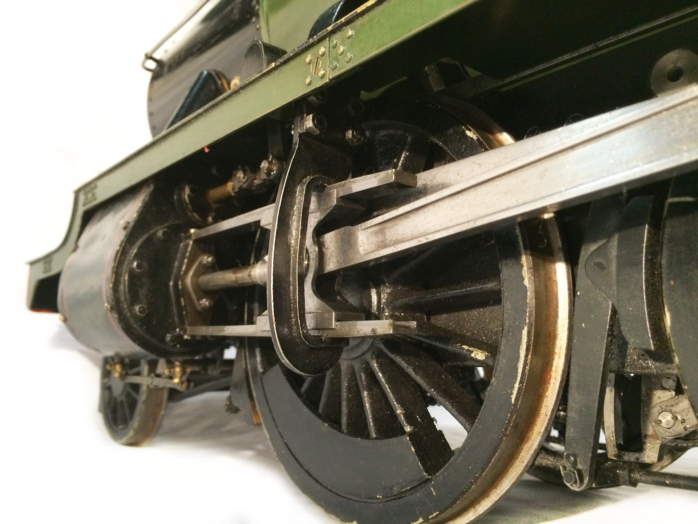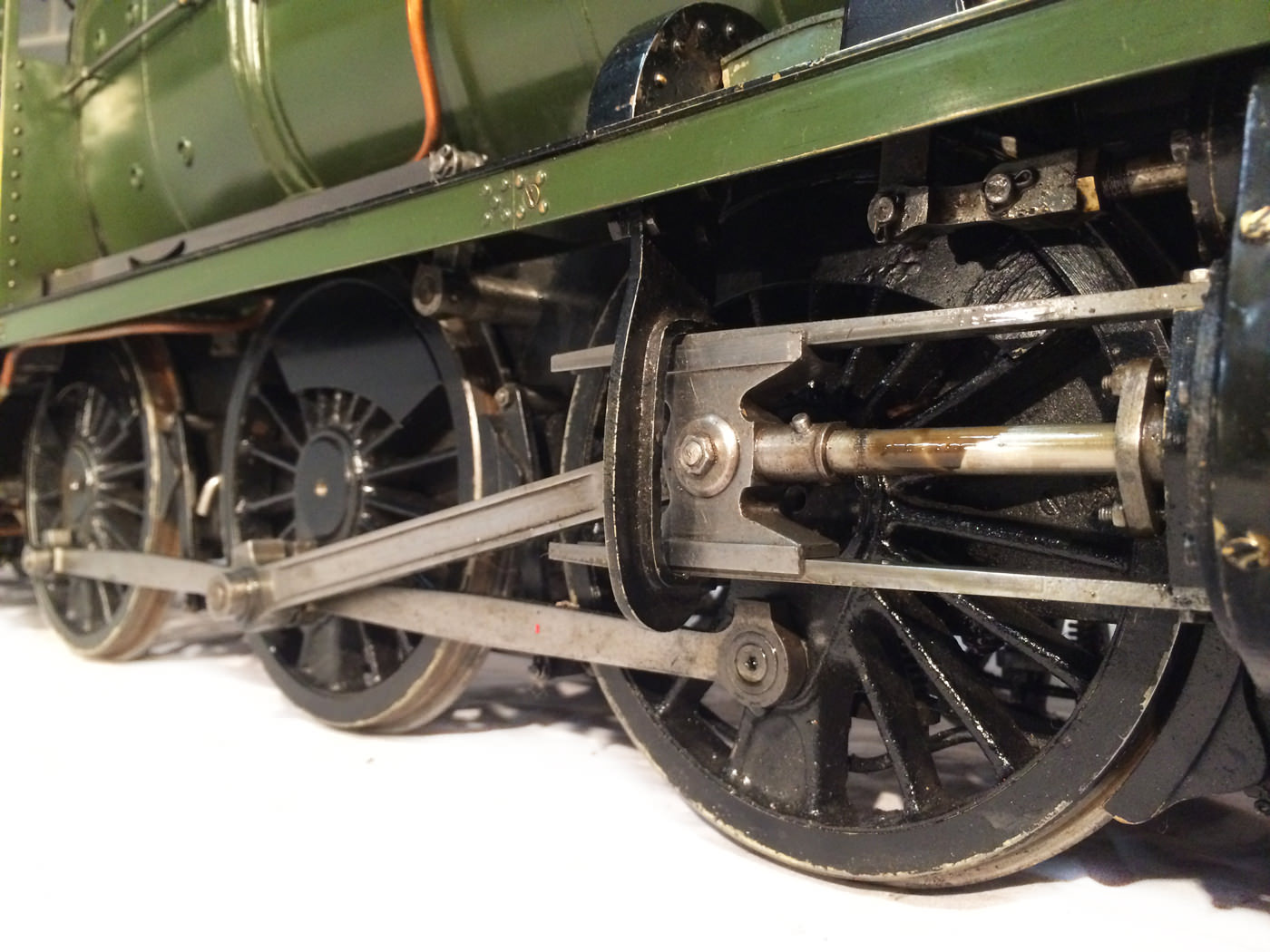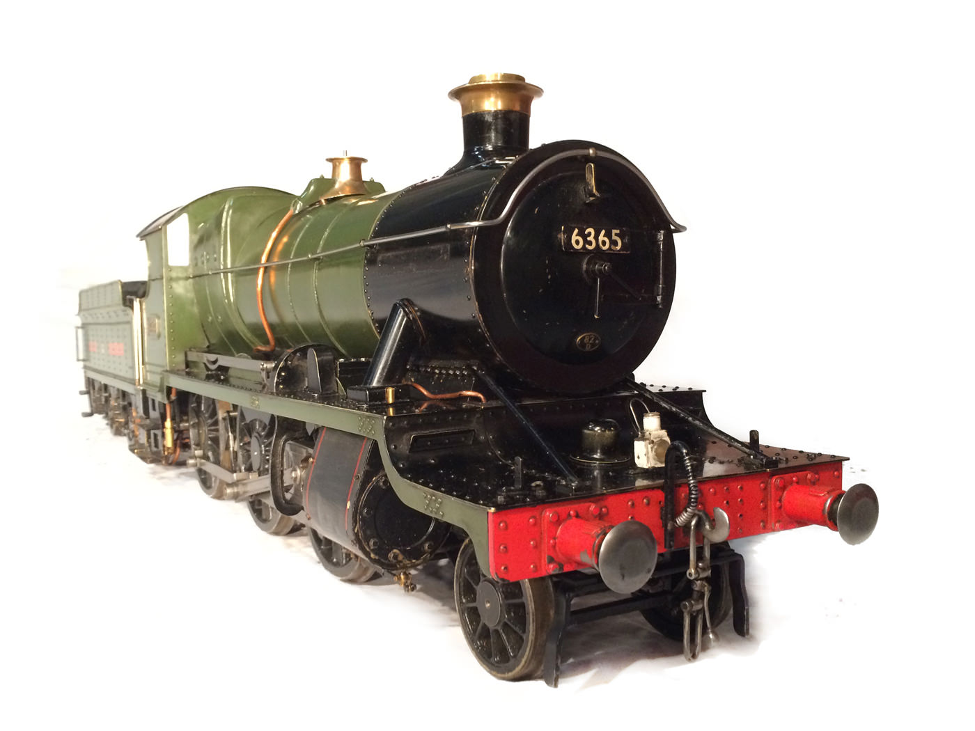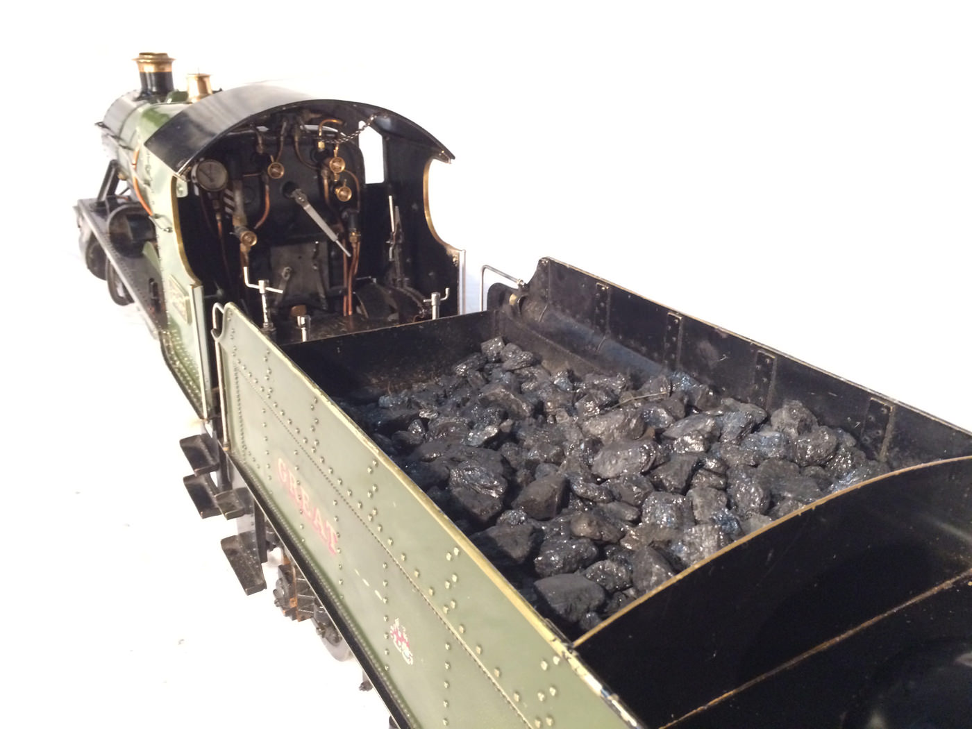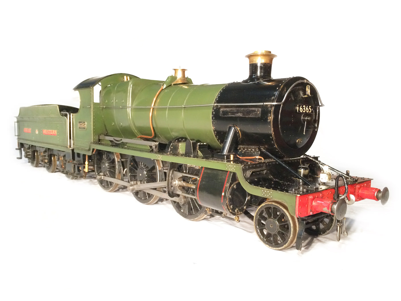The model it's self then has all the usual things you'd expect for a well resolved running loco. Lubrication is from a nice big mechanical lubricator hidden under the front running board. The draincocks are footplate operated, as are the twin injectors,.... and the twin GW style whistles! Unusually for a tender engine of this size, the 63's were pole reverser engines, which makes this model particularly versatile. If you fancy getting involved with the GL5 scale train crowd on their 'Main Line' running days, this would be a superb engine to both shunt the yards, and then look great on the front of 30 scale wagons round the main circuits!
