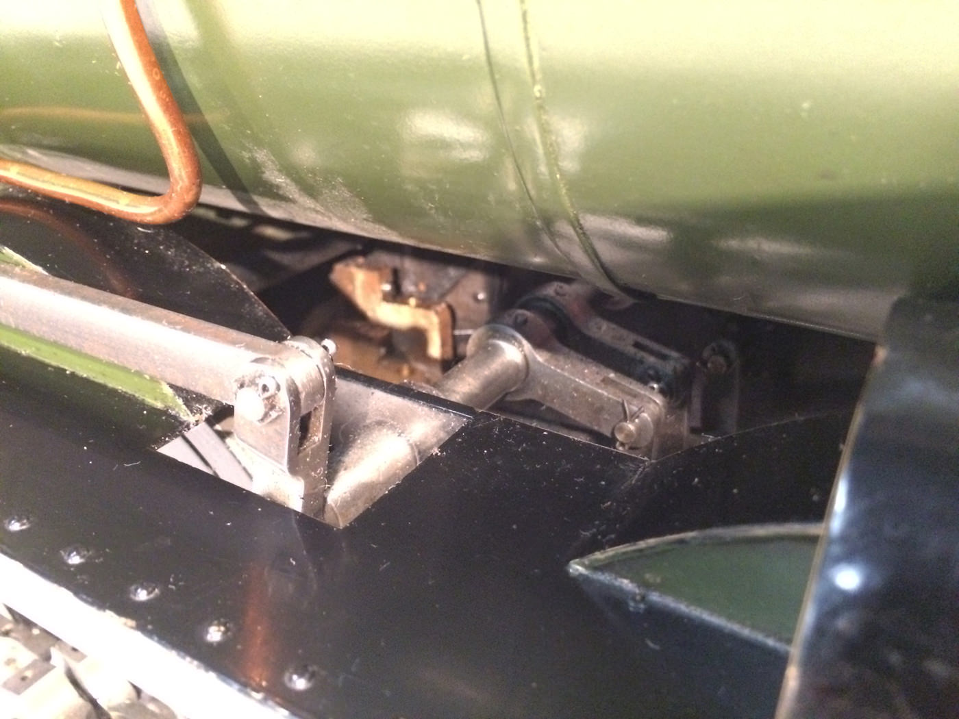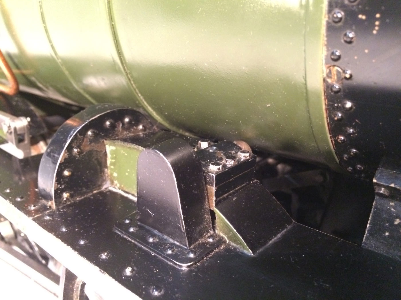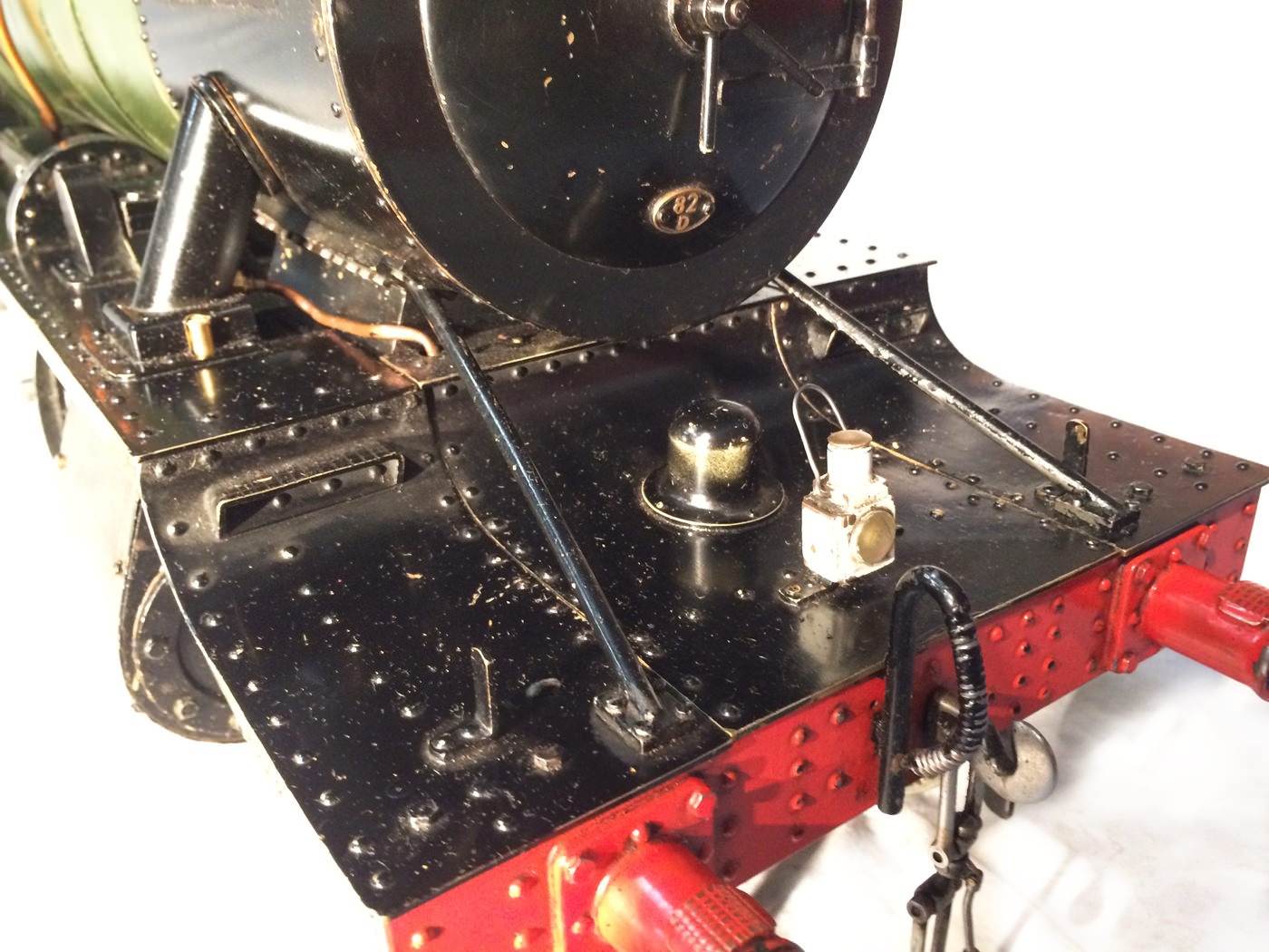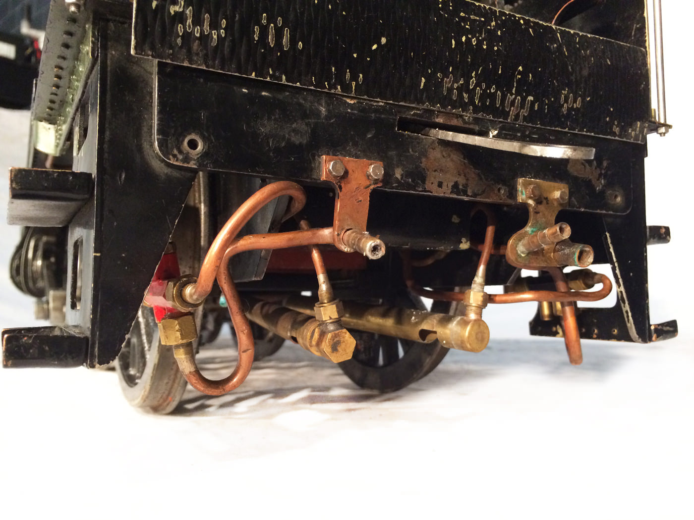 The paintwork was well done, and now (20 odd years on), is still in presentable condition, although it has a fair amount of scrapes and scratches consistent with a used model. It's got what an estate agent would call 'a nice patina', but for the rest of us, we will say that it's perfectly presentable, but would look great with a decent re-paint. (During which the copper top feed pipes could be hidden behind some nice cladding, or at the very least painted green to make the model look instantly much better)