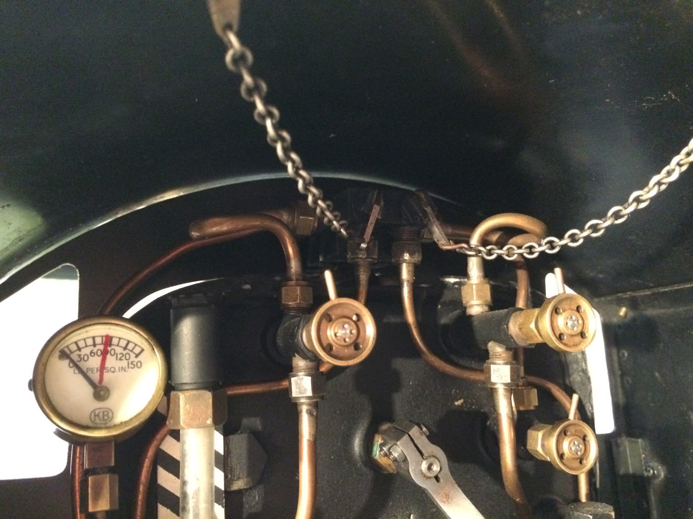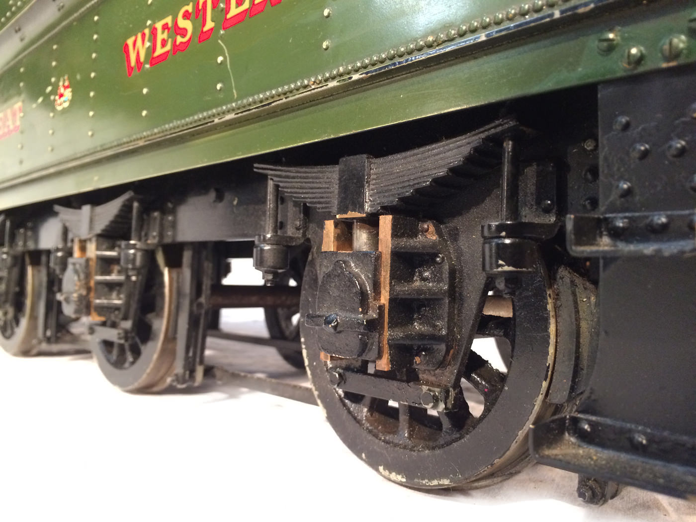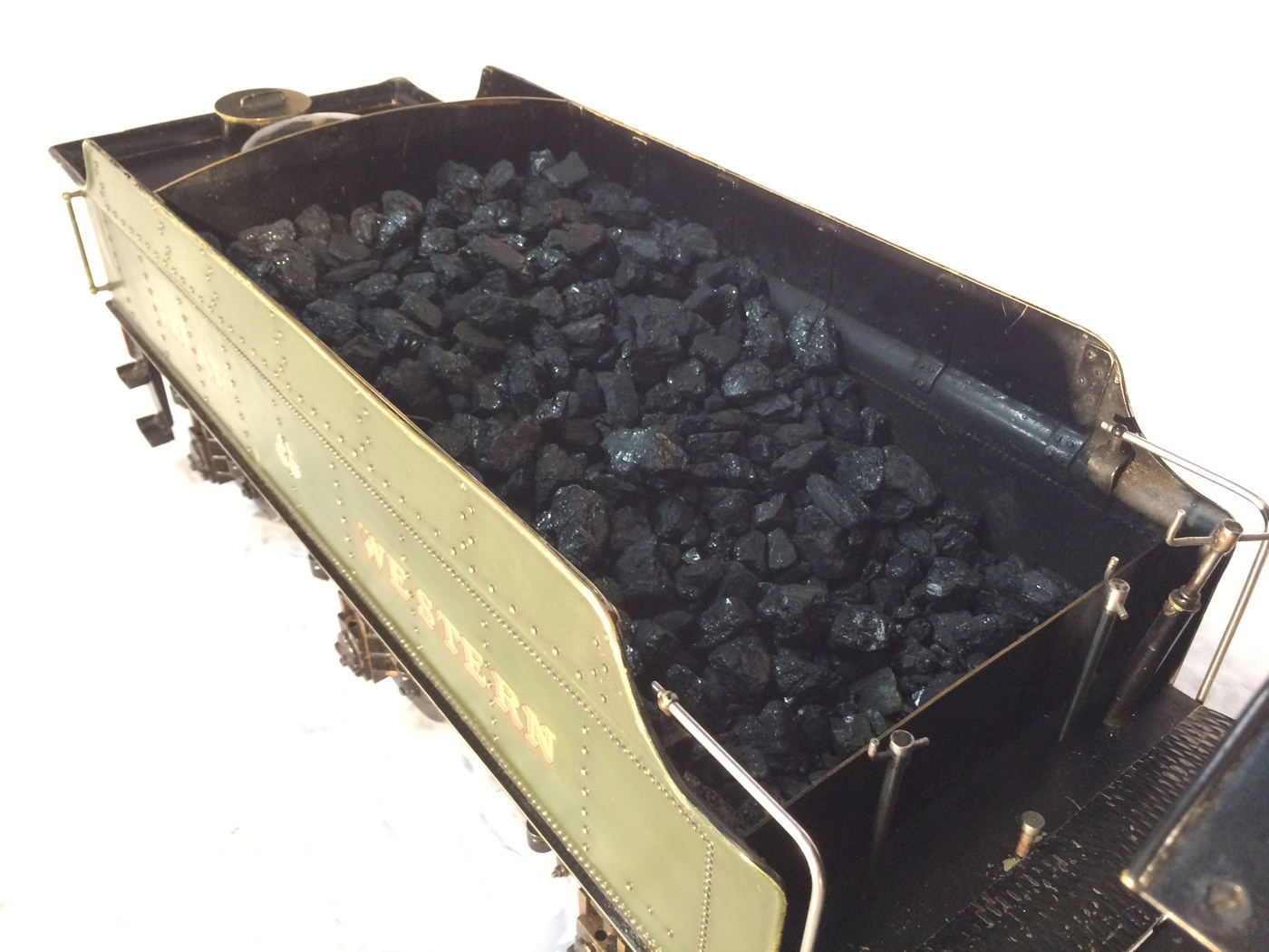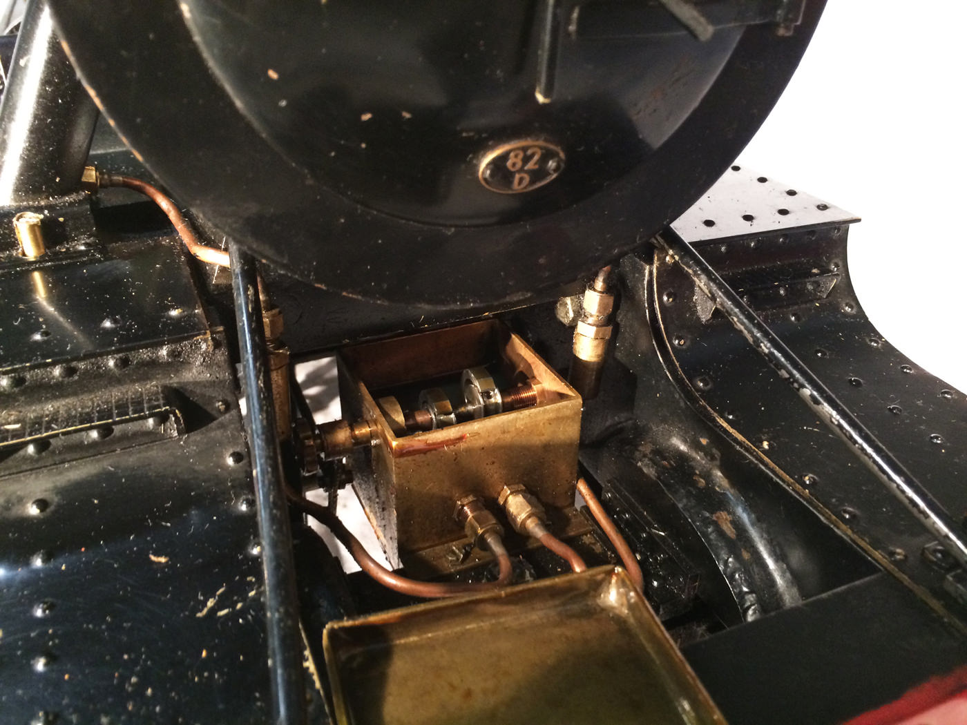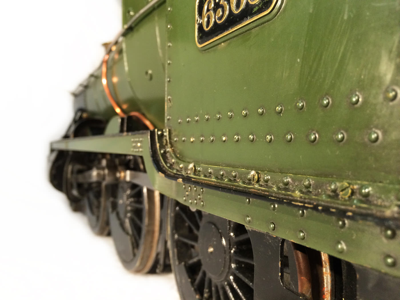 The paintwork was well done, and now (20 odd years on), is still in presentable condition, although it has a fair amount of scrapes and scratches consistent with a used model. It's got what an estate agent would call 'a nice patina', but for the rest of us, we will say that it's perfectly presentable, but would look great with a decent re-paint. (During which the copper top feed pipes could be hidden behind some nice cladding, or at the very least painted green to make the model look instantly much better)