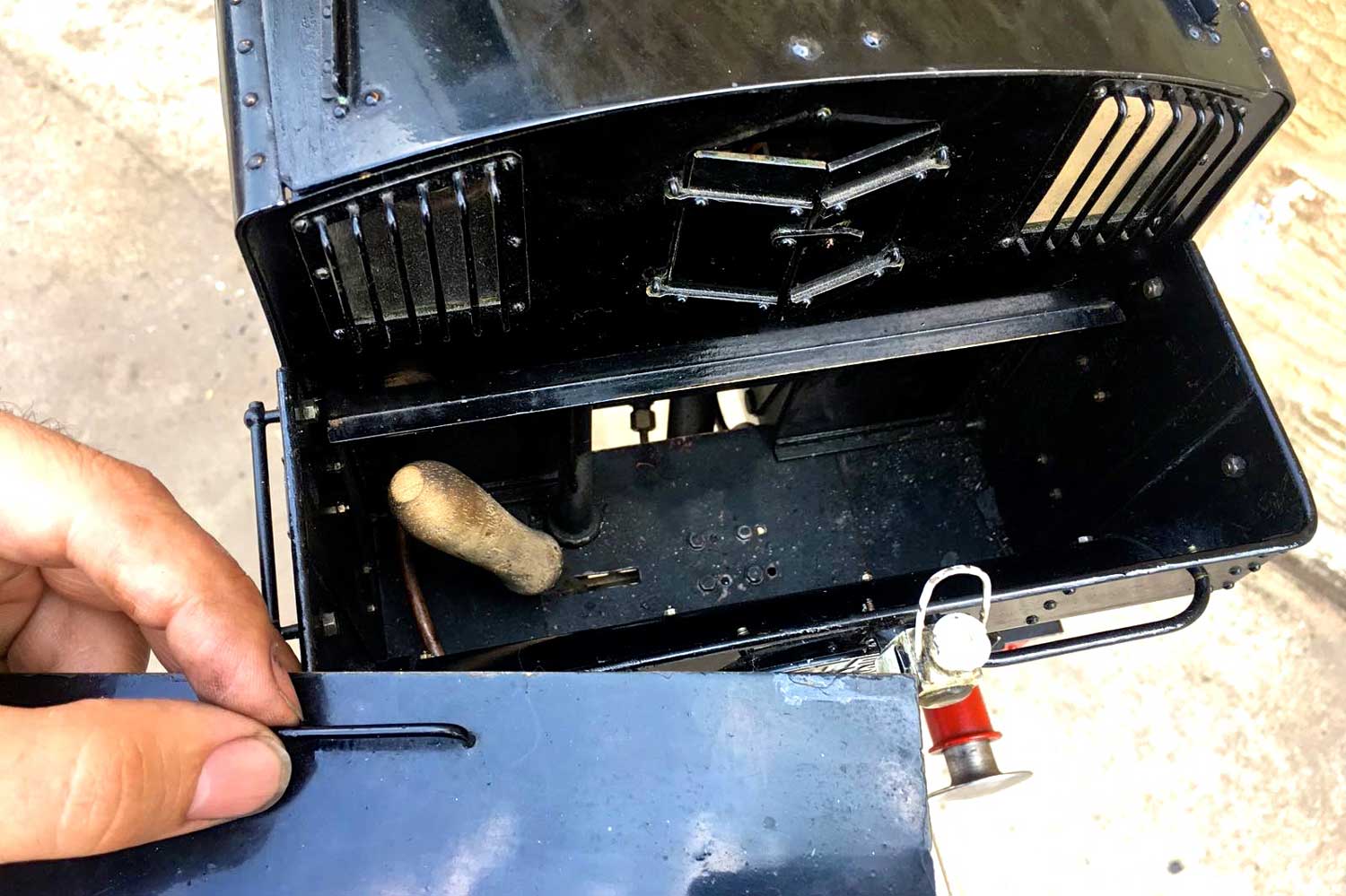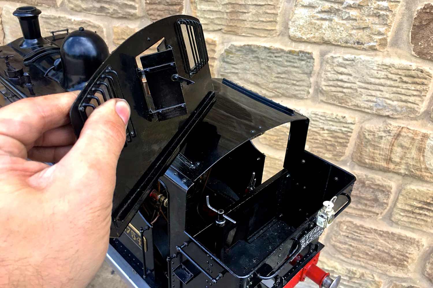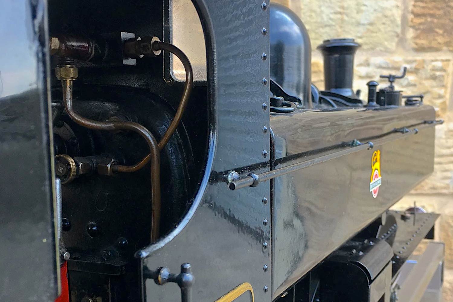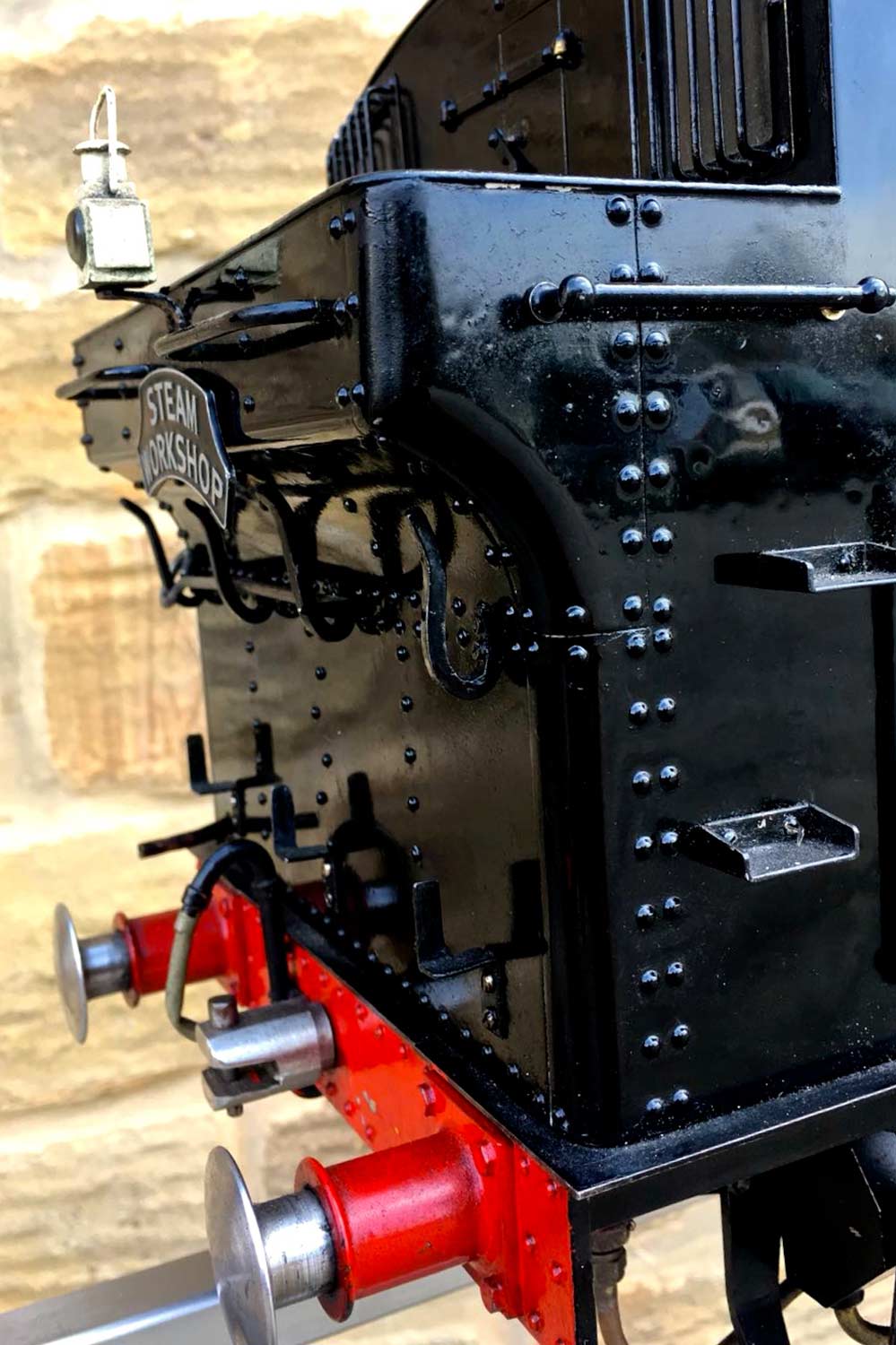 Water is supplied through an injector, as well as an axle pump between the frames with footplate mounted bypass valve and of course a hand pump as well,.... in this case tucked away neatly under the rear bunker floor, and with a wooden handle attached and hidden under a removable panel. Lubrication is mechanical and as per usual hidden under the front running boards. All in all, the paintwork is quite nice and tidy with the odd paint scuff and chip having been sympathetically touched in over the years. A well looked after and nicely presented Pansy, all sorted and ready to play.