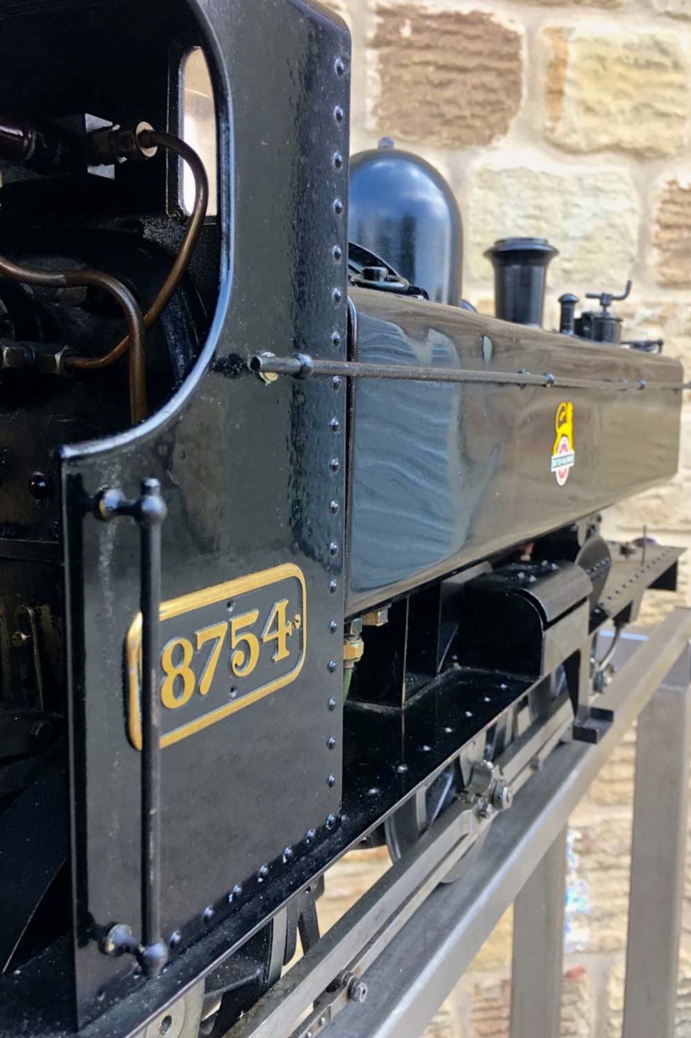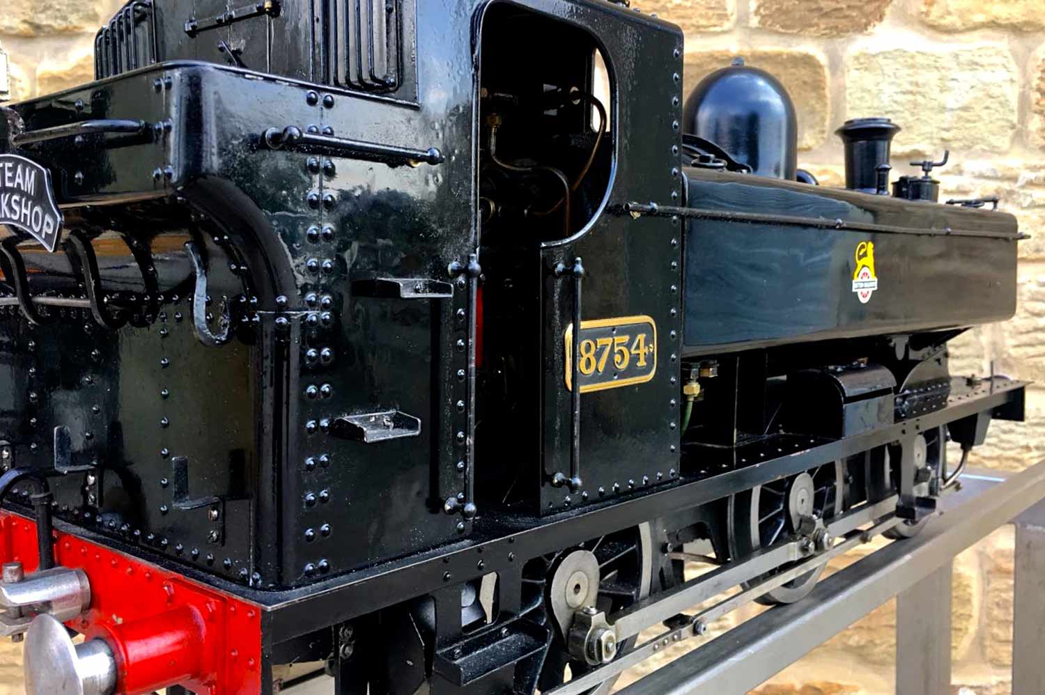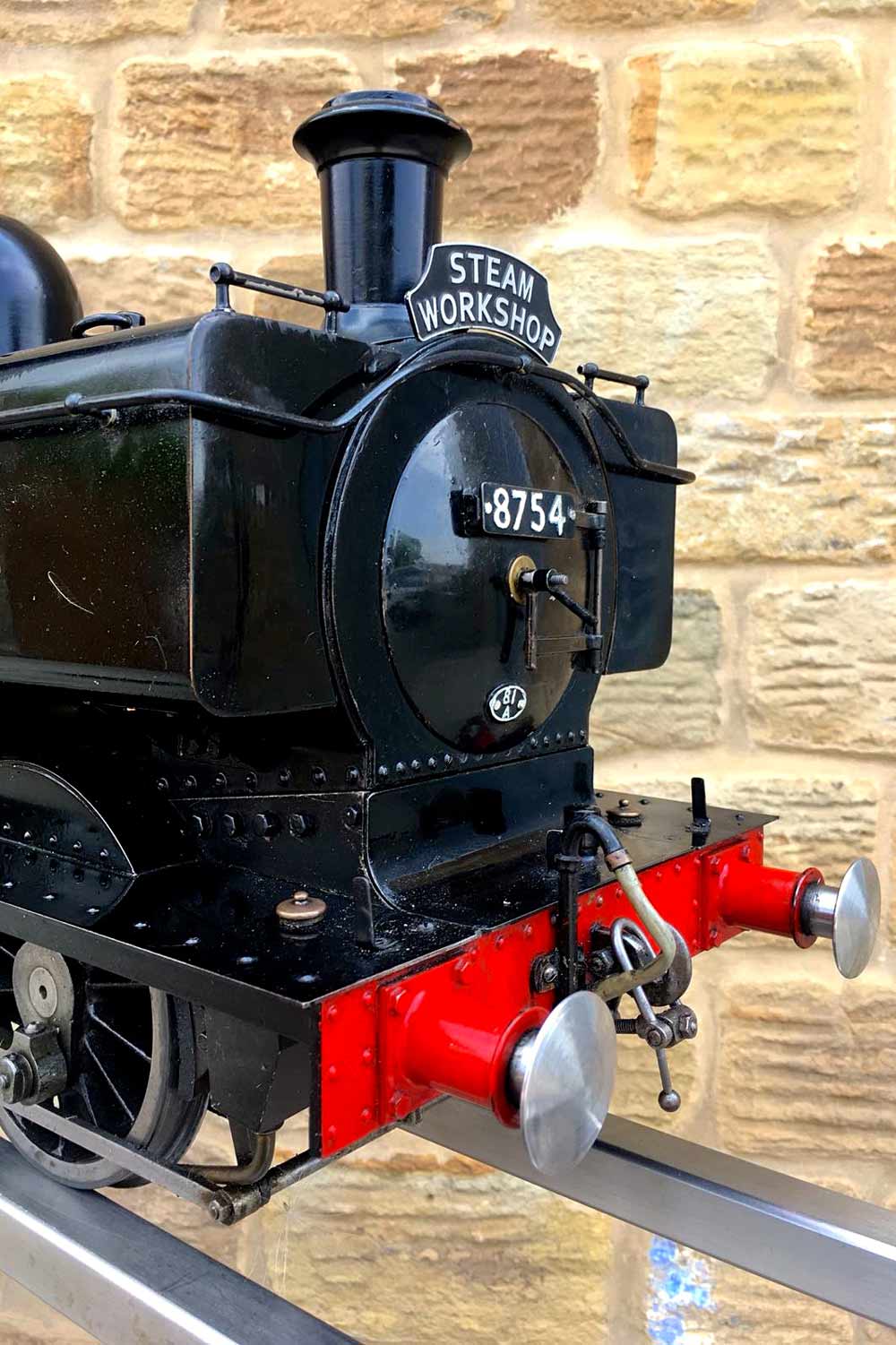 Here we have another nicely made 5" GWR Pannier tank, in this case 8754 in the slightly less common, but extremely handsome BR black livery. Well built to LBSC's ubiquitous 'Pansy' design, but with the added attention to detail that it's always lovely to see. The bunker is beautifully and correctly flanged round on the rear corners, the rear doors on the cab back open up on their latch, the rivet detail is all there and nicely done,..... indeed this is a good looking Pansy, and a convincing 87xx model.