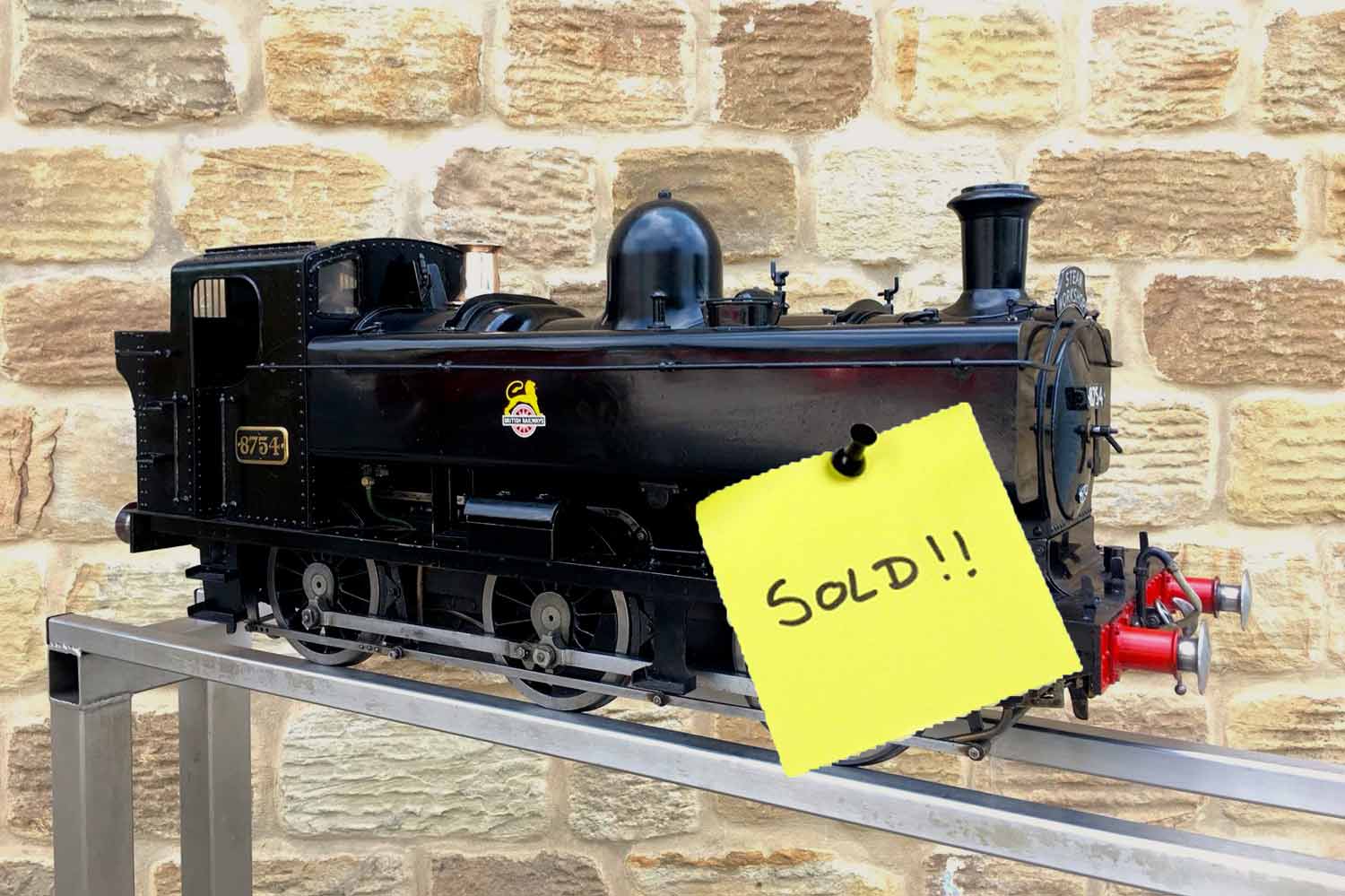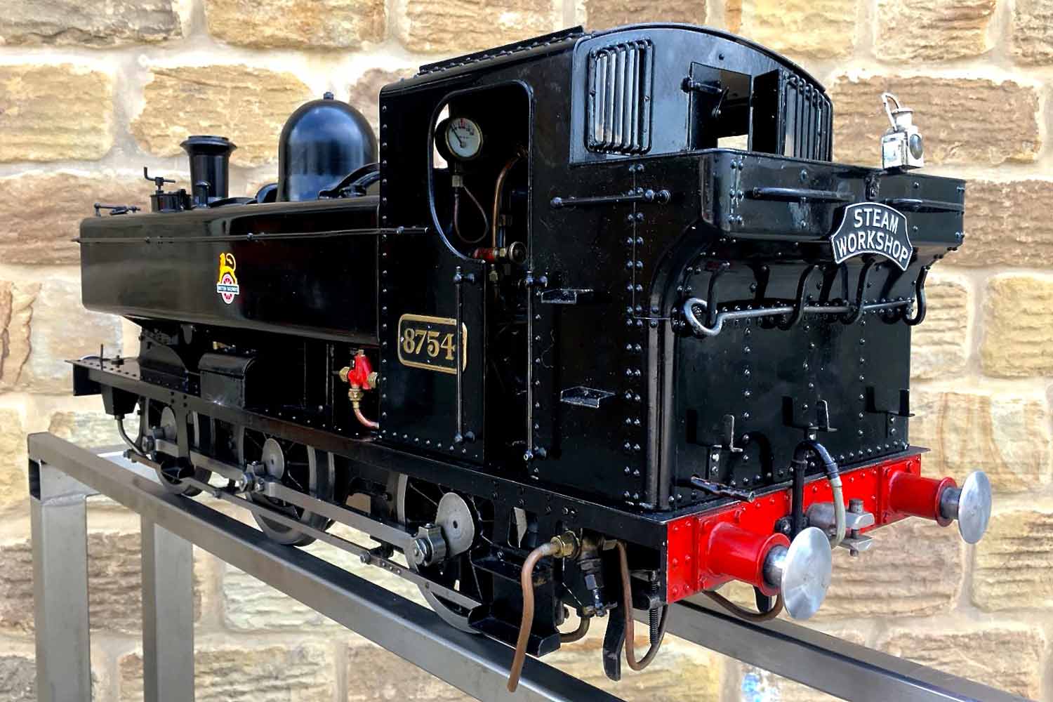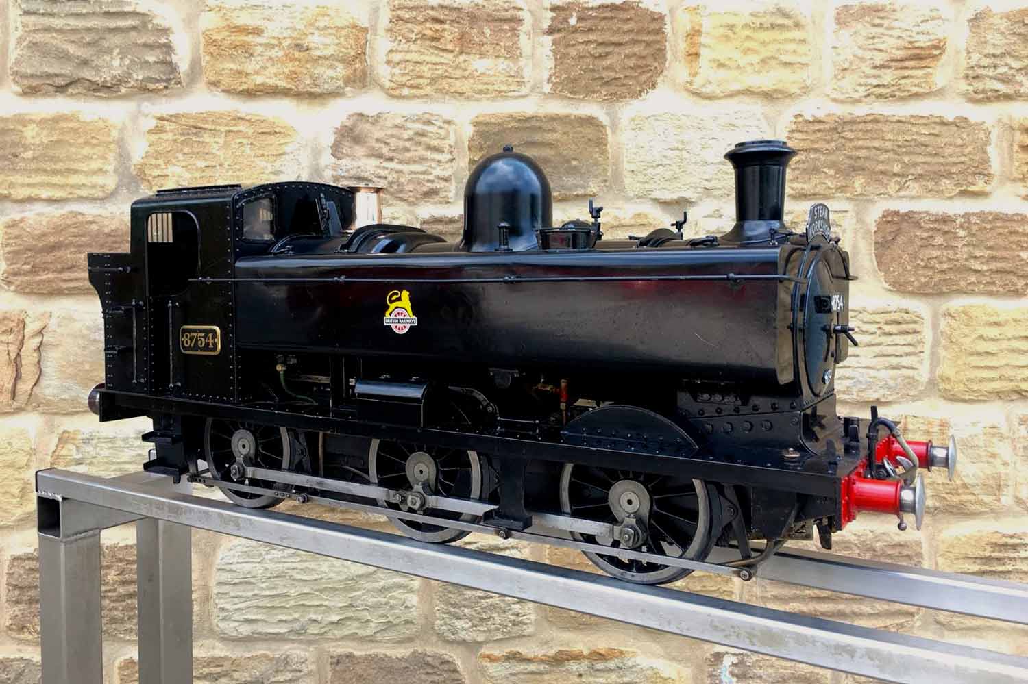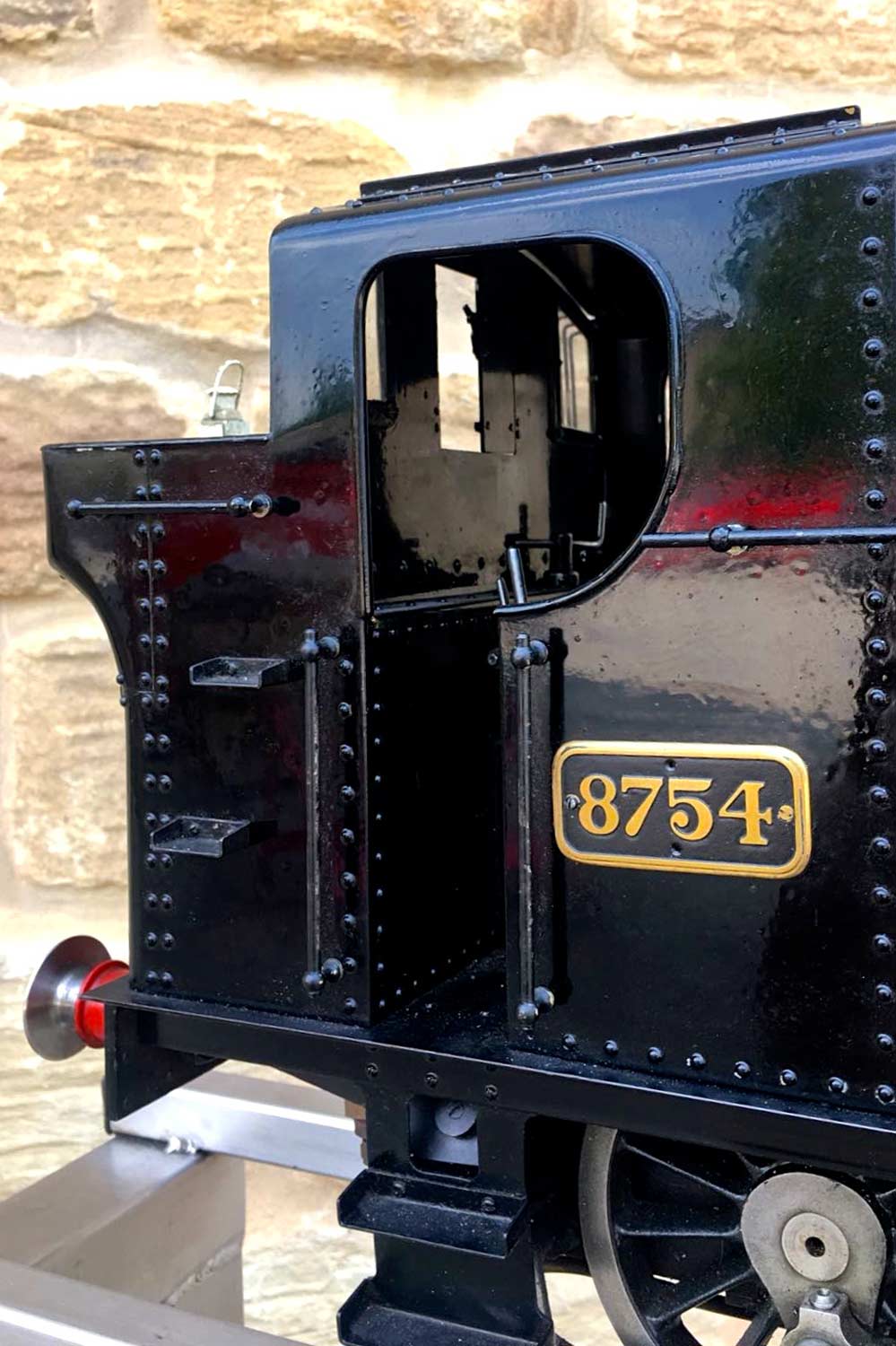 Here we have another nicely made 5" GWR Pannier tank, in this case 8754 in the slightly less common, but extremely handsome BR black livery. Well built to LBSC's ubiquitous 'Pansy' design, but with the added attention to detail that it's always lovely to see. The bunker is beautifully and correctly flanged round on the rear corners, the rear doors on the cab back open up on their latch, the rivet detail is all there and nicely done,..... indeed this is a good looking Pansy, and a convincing 87xx model.