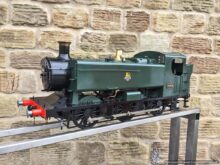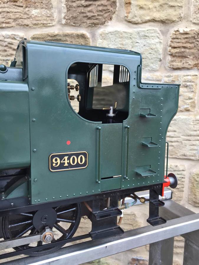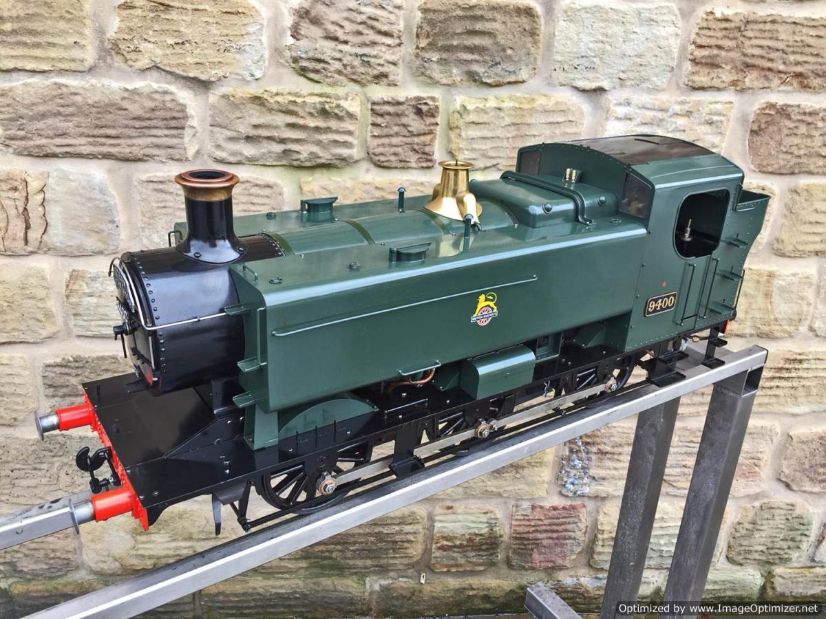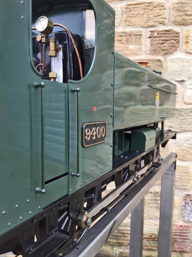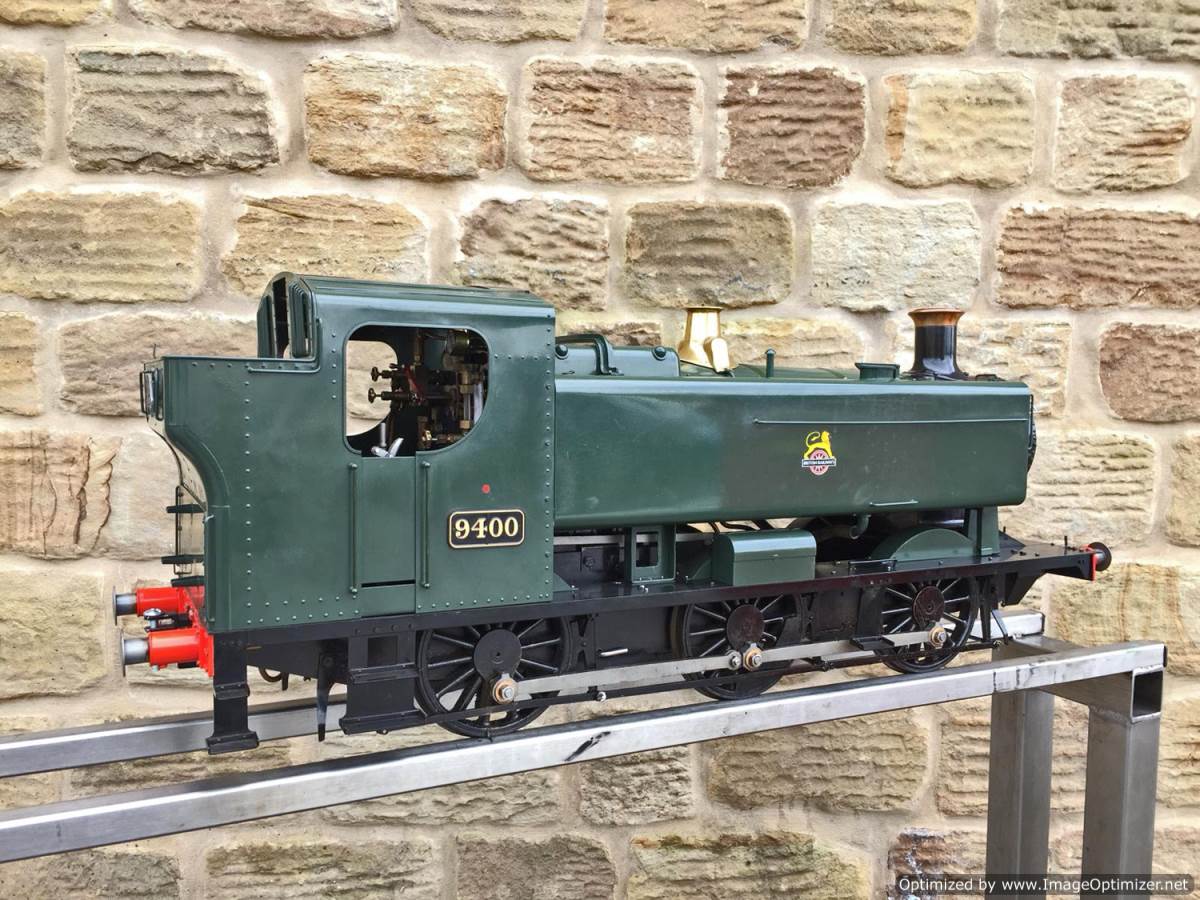 Here we have a 5" gauge GWR 94xx pannier tank made by Maxitrak.  This is a virtually as new model, having not been steamed on a great many occasions and still being nice and clean.  These models are quite simply constructed things, but they are nicely finished and certainly look the part.  The 94xx is quite a rare one, and we don't think too many of them have been made, so it's certainly something a bit different from the normal Pansies that you are likely to see about.