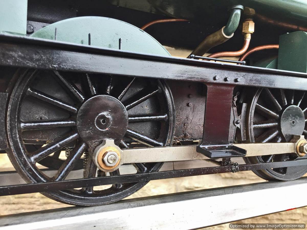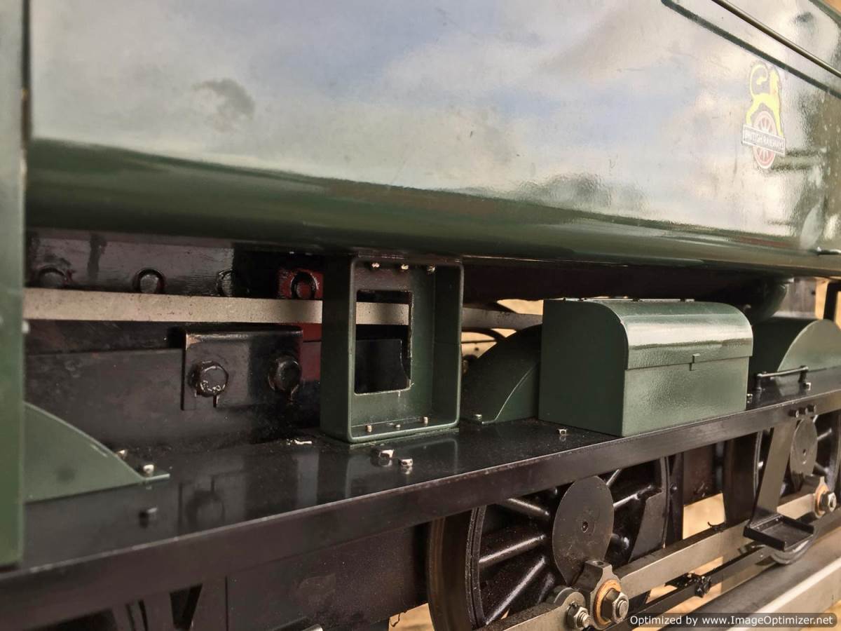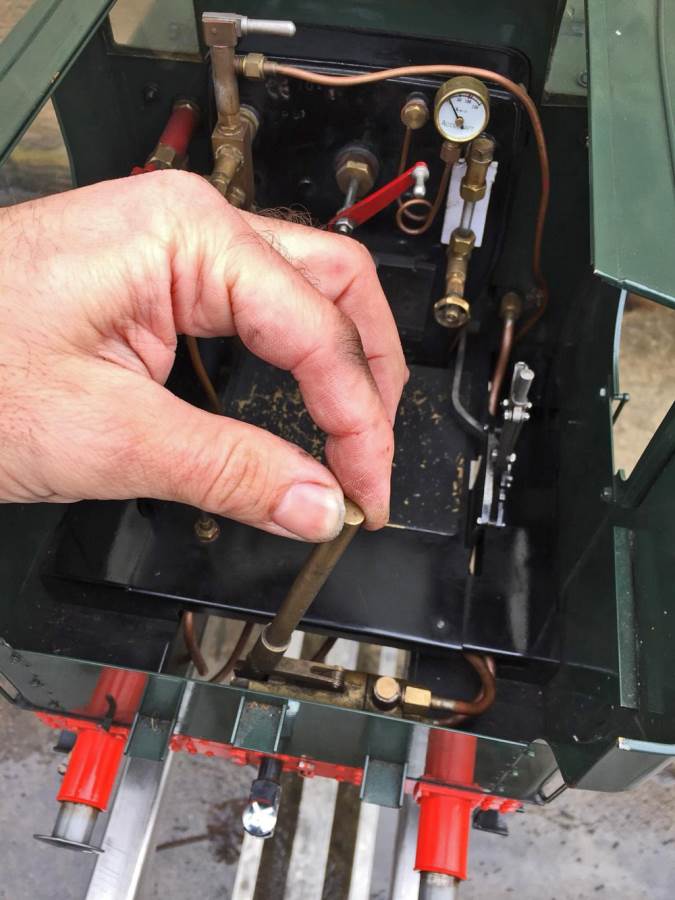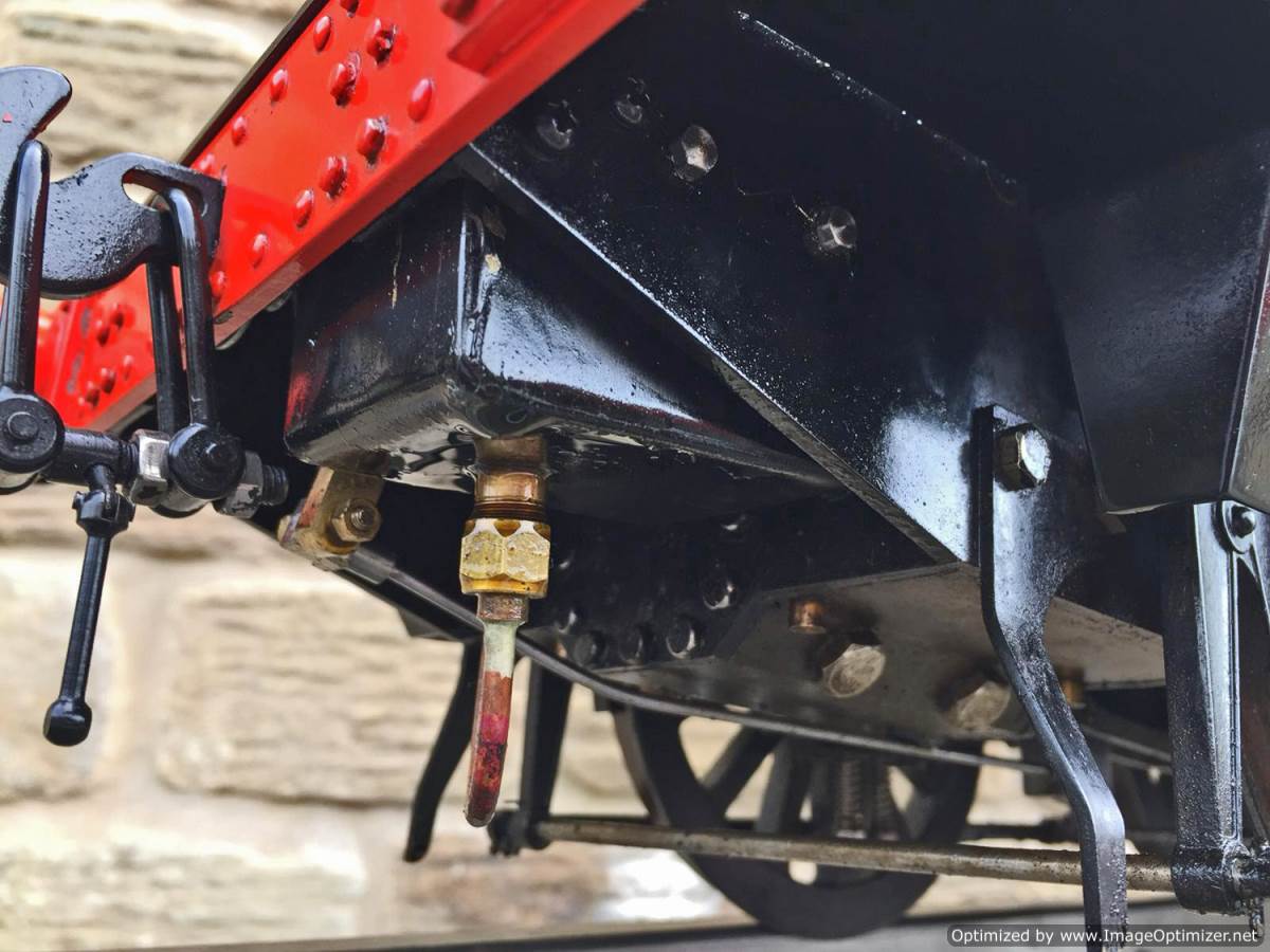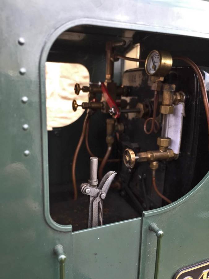 Fitted with a mechanical lubricator hidden under the front running board, this is an improvement over the simple displacement that these models come with as standard.  Water is from an injector as well as an axle pump with footplate mounted bypass valve.  There is also a hand pump on the footplate inside the bunker.  The backhead is a bit of a basic affair, and not particularly solid looking, but it's designed to be functional rather than prototypical and to that end it does the job.