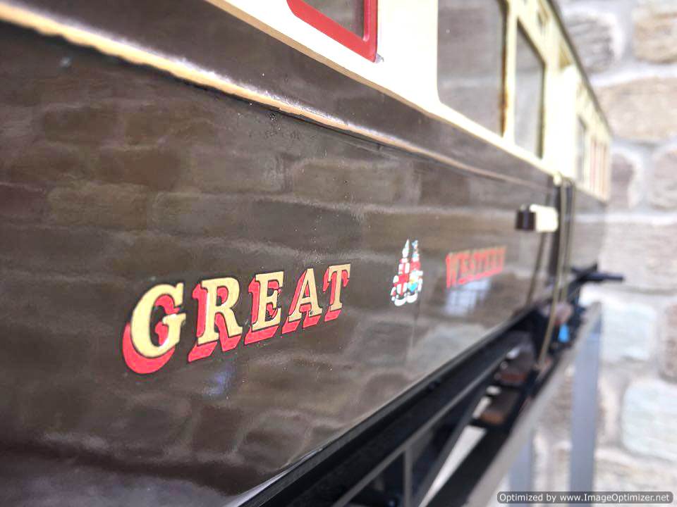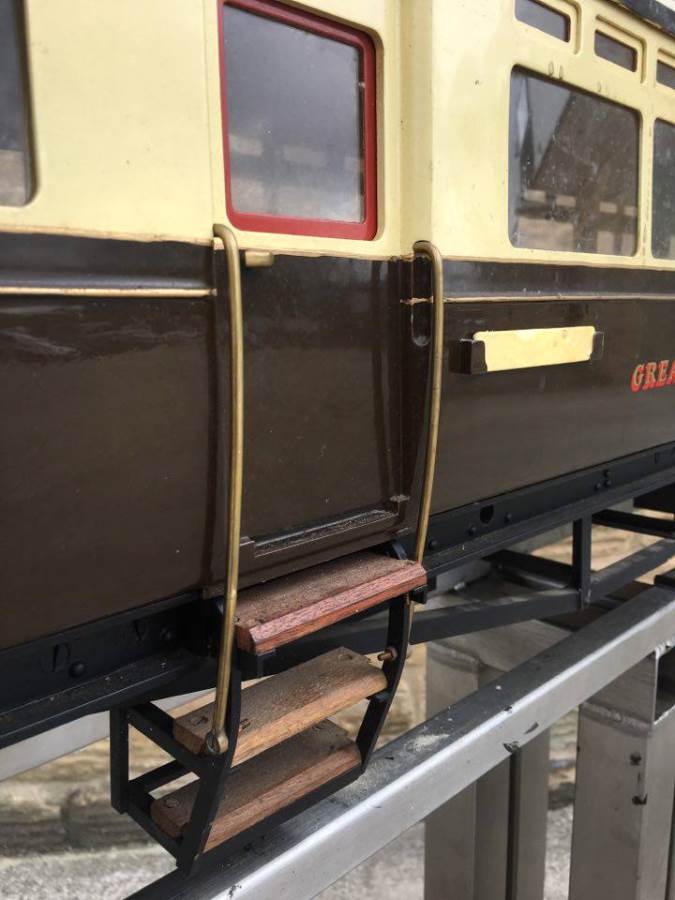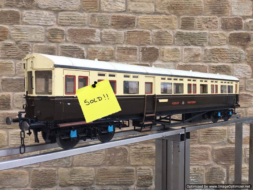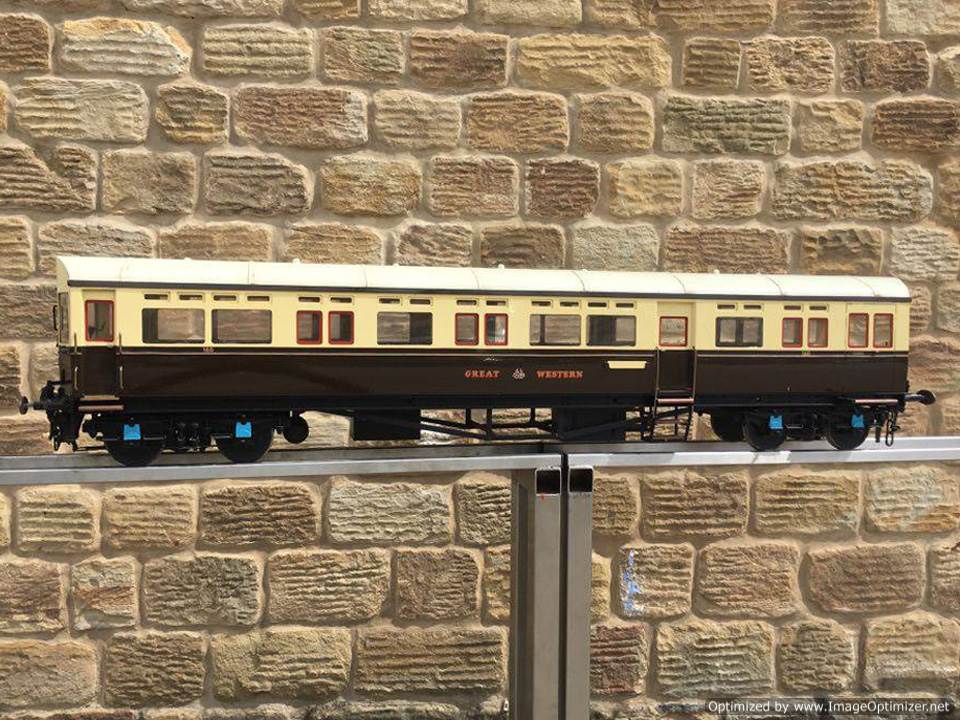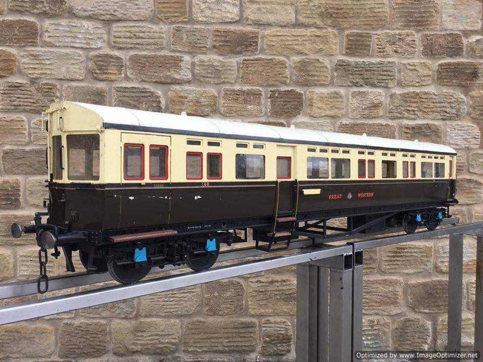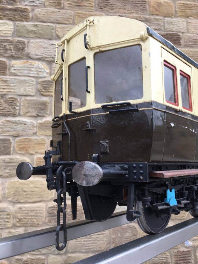 Here we have a particularly nicely detailed 5" gauge GWR Autocoach. Based upon the kit produced by Modelworks, this one has had the wheelsets 'tweaked' (as the kit required) so that the back to backs were correct for ground level running and points.