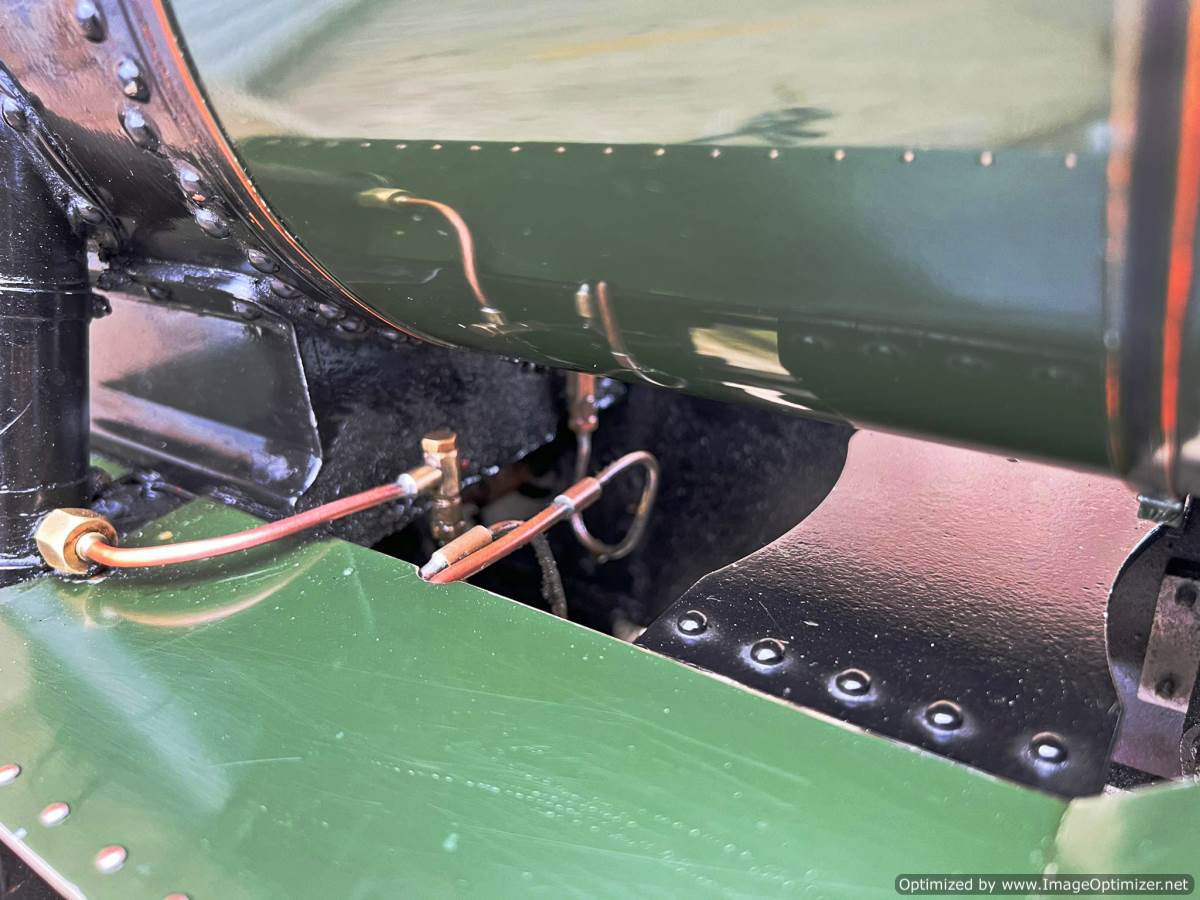 Lubrication is mechanical with the reservoir on the footplate. There's an injector fitted as well as the working crosshead water pump with footplate mounted bypass valve and of course there's the hand pump in the tender.